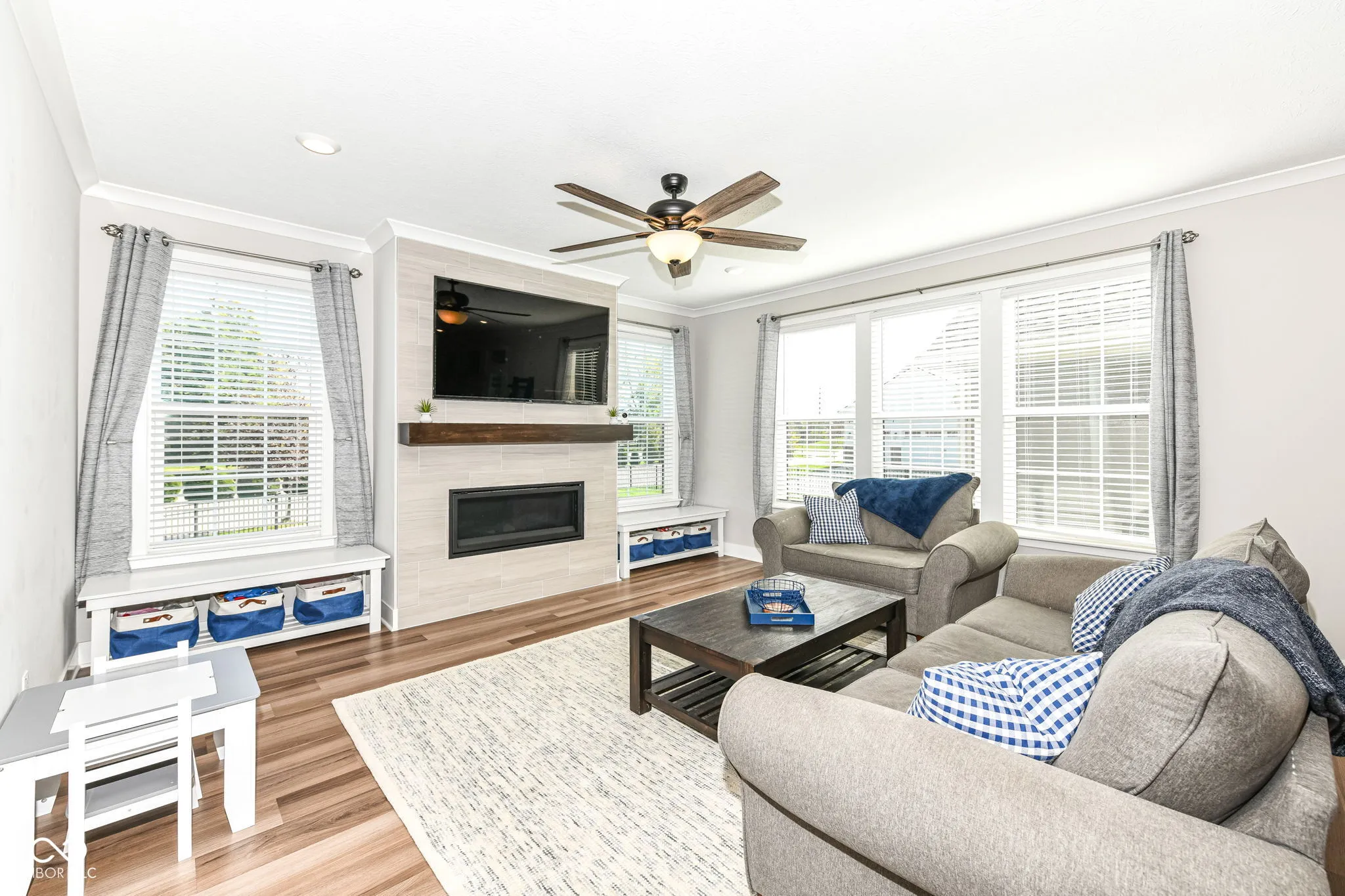 Don’t miss this prime location! Move-in ready 4-bedroom, 3.5-bath home with an office, loft, and fully finished basement in the highly sought-after Clay Corner neighborhood in Carmel. The grand entry opens to a spacious, open-concept first floor that seamlessly connects the kitchen and great room. The stunning kitchen features an oversized island with ample seating, premium appliances, quartz countertops, abundant cabinet space, a gas range, double ovens, built-in microwave, and vent hood. The main level also includes a home office, formal dining room, and a large mudroom with built-in locker storage and a workstation. Upstairs, the owner’s suite boasts a tray ceiling, two large walk-in closets, dual vanities, and a walk-in shower. Two additional bedrooms with walk-in closets and a versatile loft area provide added flexibility. There’s also a convenient upstairs laundry room. The fully finished basement offers multiple options, including space for a media area, playroom, or workout space. It also includes the fourth bedroom, a full bath, and plenty of extra storage. Situated on a corner lot, the home features a large yard with a covered porch, an extended patio, and a fully fenced yard. The neighborhood offers a walking/jogging trail just steps away, leading to the heart of Carmel and a large playground/park. This home is situated in the highly sought-after Carmel school district.