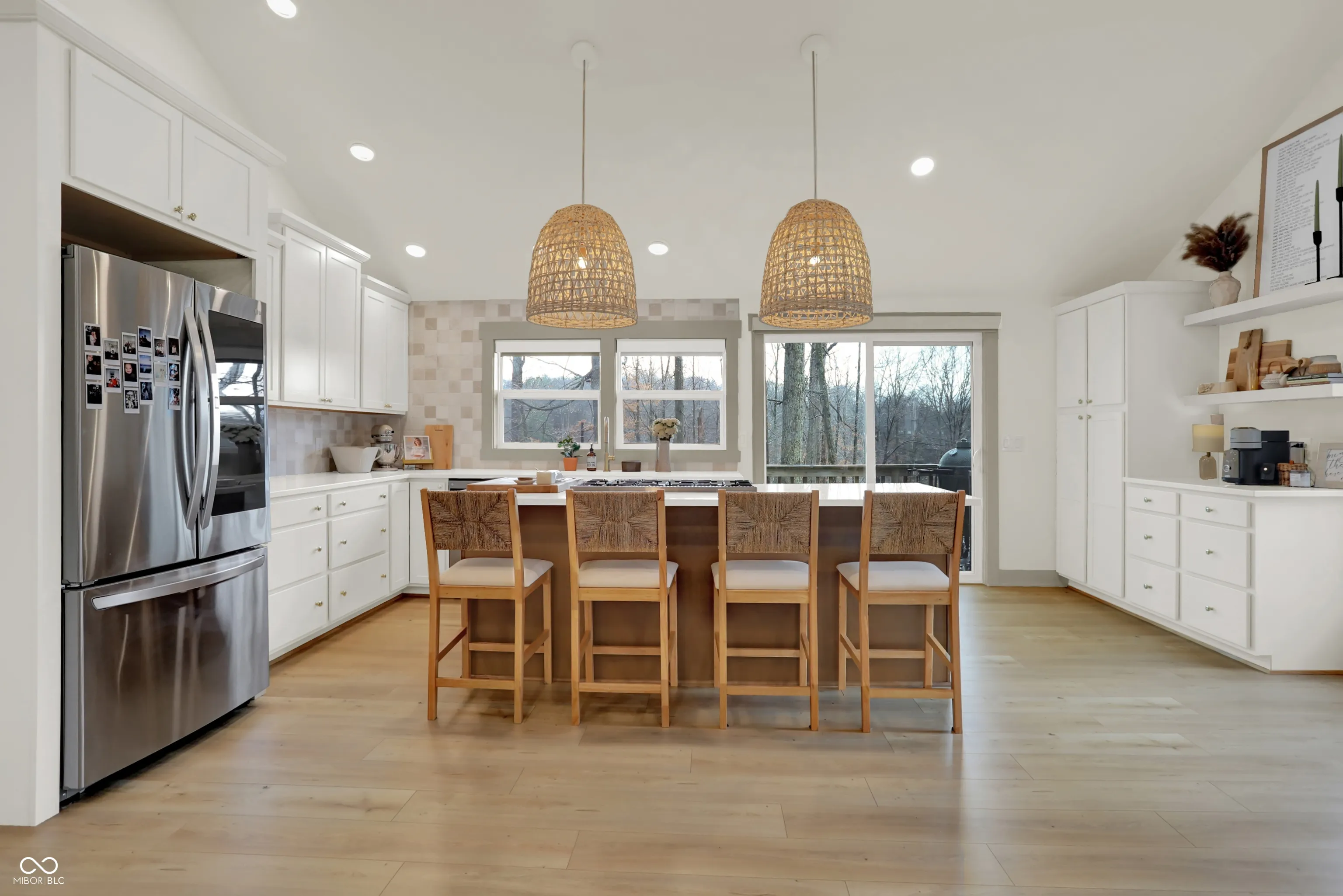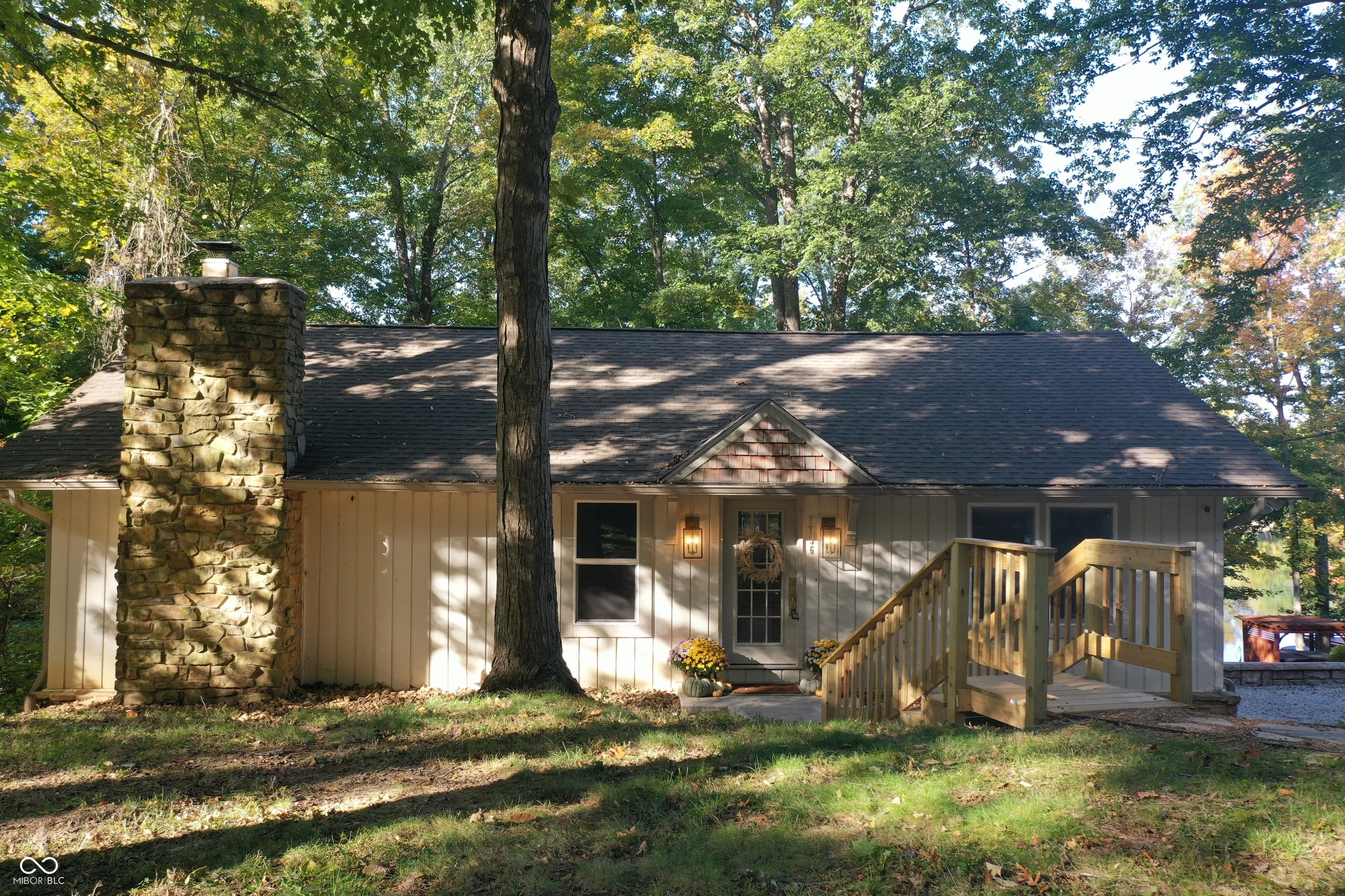 Completely Remodeled in 2022/2023 this Quaint Lake Home feels like NEW! Located on Lamb Lake will be a great spot to spend those long weekends on the Water and just in time for Lake Season! Coveted Indian Ridge Drive is a Peninsula Style Drive to the Main Body, w/ Water Views on Both sides! As you Walk in you are welcomed by an Open Concept main level w/ Vaulted Ceilings, Natural light, Great Room, Kitchen Featuring Large Island w/ breakfast bar, Coffee Nook, all New Kitchen Cabinetry, Quartz Countertops, SS Appliances, Gas Oven/Cooktop all with Direct access to full length Deck along the back with amazing views perfect for firing up the Grill this summer! Spacious Master Bedroom with private access to deck, Full Stall Tile Shower, Double Vanity. Basement offers a place to use all year around featuring large open family room, stone surround wood burning fireplace, half bath, wet bar, 2 car garage and a walk out to lower level deck which is just a few steps down to your private dock. Complete Remodel in 2022/2023 Included all new: Spray Foam Insulation, Windows, Doors, Plumbing, Electrical, Floors Throughout, Roof, HVAC, Tankless Wtr. Htr., Exterior Concrete, Cabinetry, Appliances, Countertops, Drywall, Framing & Vaulted Ceiling, Light Fixtures, Plumbing Fixtures, Landscaping, Exterior & Interior Paint & Gutters! Rare Find on Lamb Lake at this price point with modern updating!