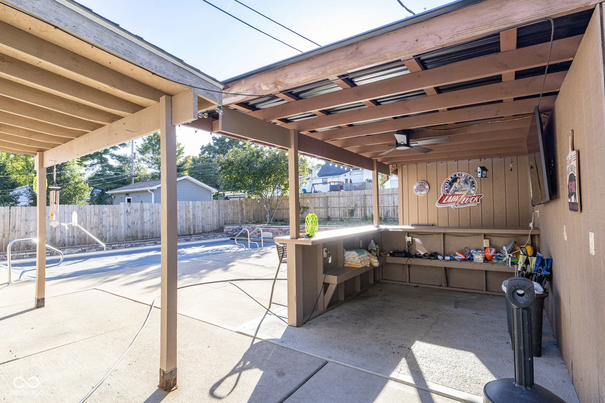 This 3BR, 1.5BA home offers 2,776 sq. ft. of beautifully updated living space, plus incredible amenities. Freshly painted inside and outside with new carpets, kitchen cabinets and countertops, new water heater, new vanities, toilets and shower heads and a modern sink, in addition to a new liner in swimming pool, this home is move-in ready with tons of recent updates. The open floor plan features a huge great room with beautiful laminate and hardwood flooring, along with an updated bathroom that includes a large tile shower and tub surround. The kitchen is a centerpiece, boasting a large center island, breakfast bar, tile backsplash, and plenty of cabinet space, including a pantry and laundry area with barn-style doors. The family room, with its cozy wood stove and built-ins, overlooks the rear patio and the heated 14×28 in-ground pool, complete with an automatic cover and outdoor bar (sink & fridge included). Upstairs, you’ll find two additional bedrooms, a loft, and an exercise room for added versatility. The fully fenced backyard and pool house are perfect for entertaining. This home has been thoughtfully updated and is ready for you to enjoy!