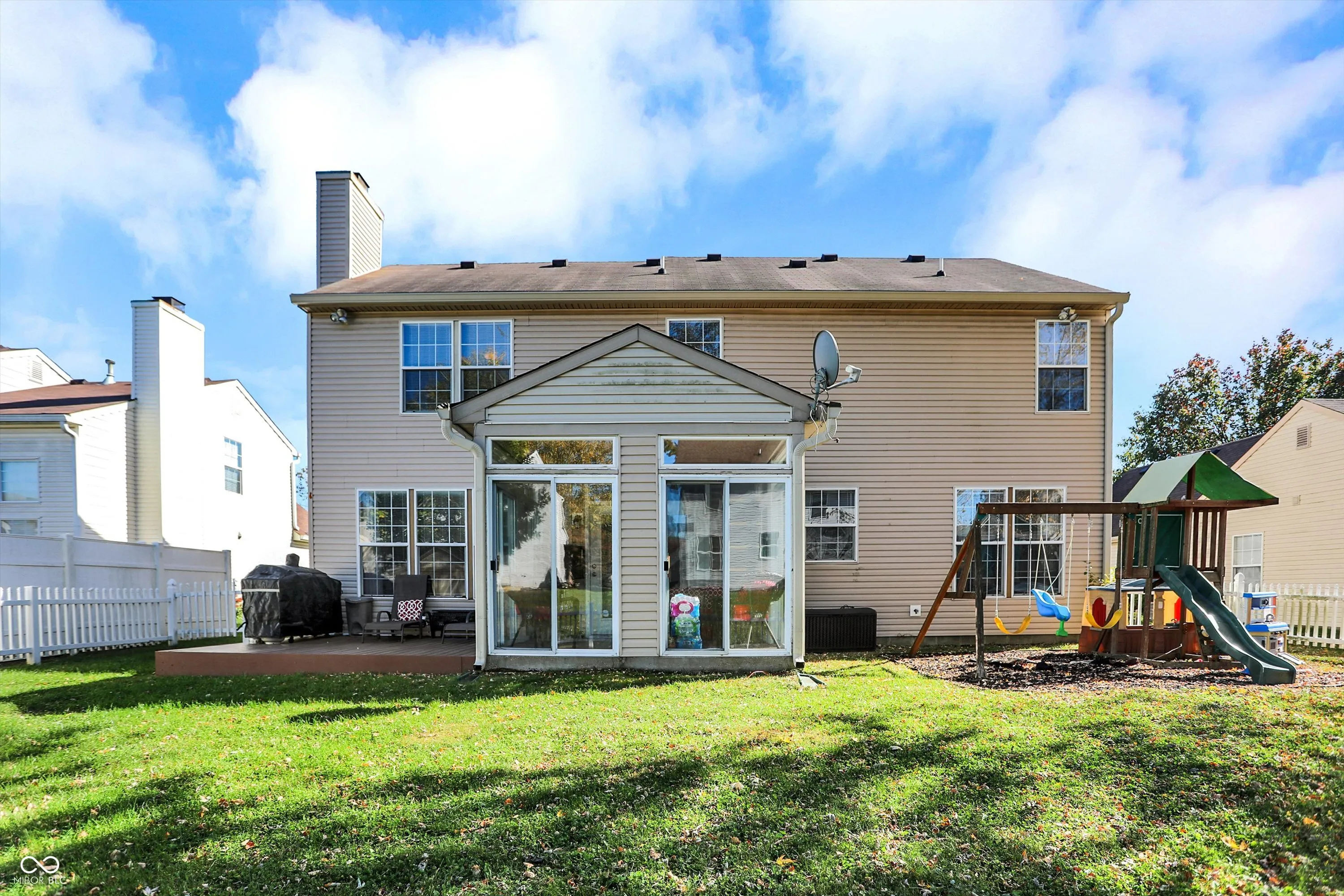 Welcome Home! This beautiful 4 bedroom, 2.5 bath home in Northwest Indianapolis won’t last long. Step into the two-story foyer and explore the recently painted downstairs. To the left of the entry is a formal living room that opens into a formal dining room with beautiful wainscoting, chair rail and updated lighting…a rare find in homes these days! Proceed into the eat-in kitchen with ample cabinet space and beautiful quartz countertops installed in 2022. The window above the extra deep sink provides a view to the expansive fenced-in backyard with included playset and well-maintained shed. The options are endless with this backyard…whether entertaining on the low-maintenance deck or sipping coffee in the sunroom with multiple sliding doors for true indoor /outdoor living. During cooler months, cozy up by the fireplace in the large family room. Rear-of-home dedicated office space creates a quiet environment conducive to work or study, but could also be used as a main floor bedroom for multi-generational living or guests. Upstairs, the massive owner’s suite boasts dual walk in closets with custom cabinetry and a freshly remodeled master bath with subway tile and a new soaker tub. Upper level also contains a second master and two additional bedrooms with ample closet space. Other updates include leaf guard gutters installed in 2024 with a lifetime warranty, 55 gallon water heater installed in 2022 and modern light fixtures. The two car garage provides extra built in storage. This Pike Township home is definitely a must see!