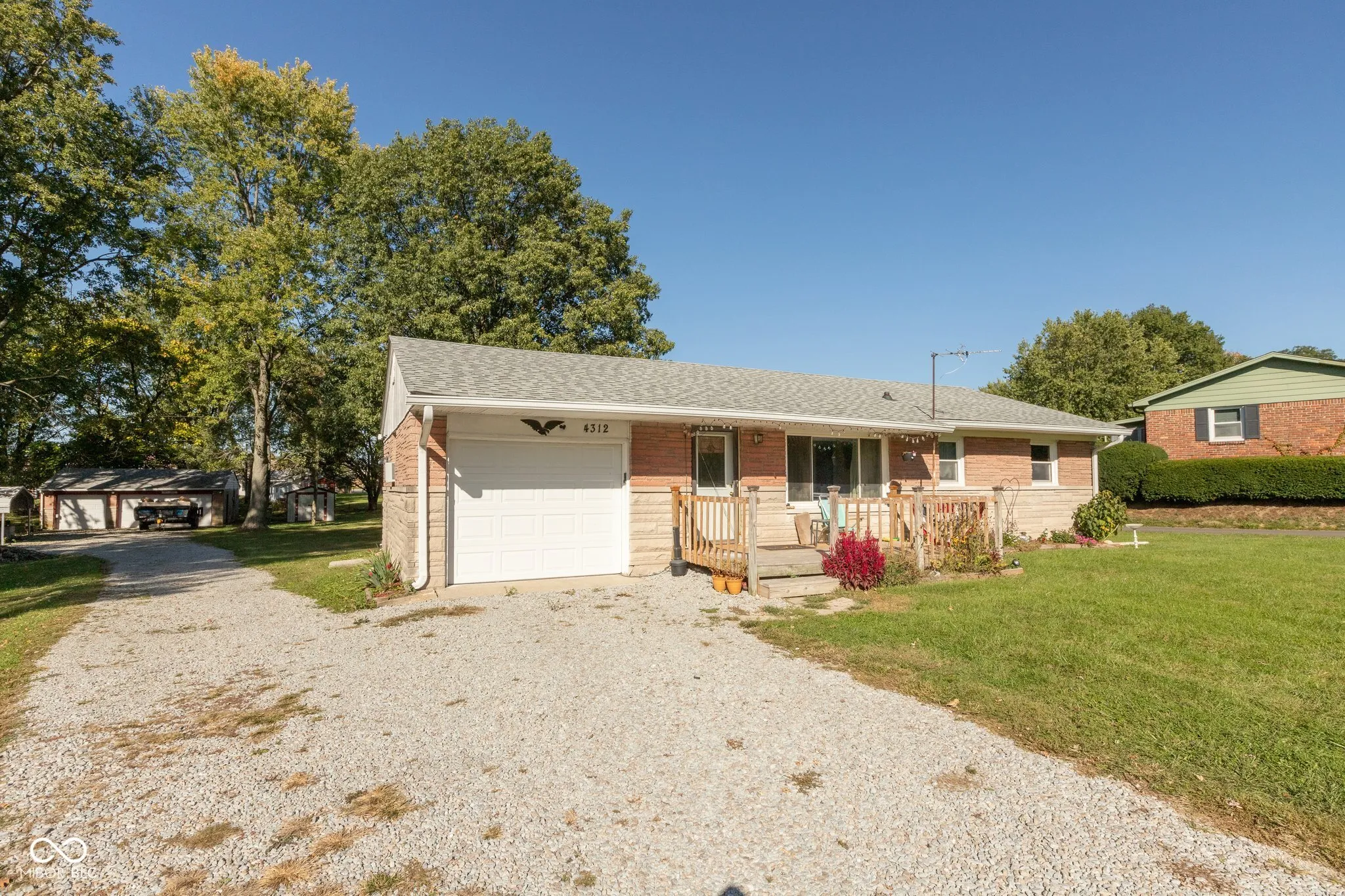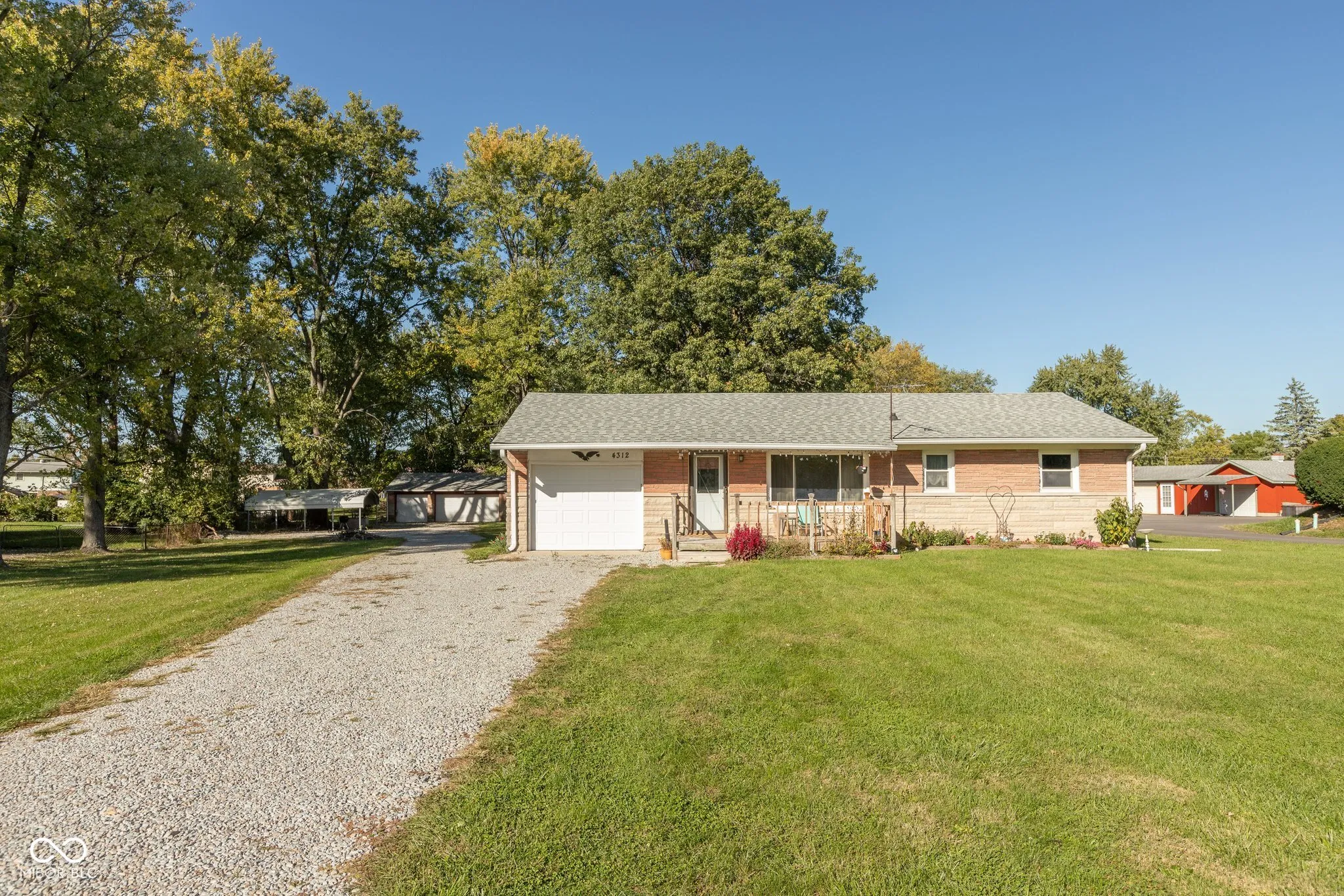 Nice three bedroom all stone ranch on large lot with mature trees. Home features hardwood floors in living room and all bedrooms. Oversized three car detached garage, one car attached garage, large carport, and 10×16 shed for all the toys. Updated bathroom and newer windows. New roof, garage doors, front door, and deck in 2022. Large park like setting back yard and lots of parking space for entertaining.