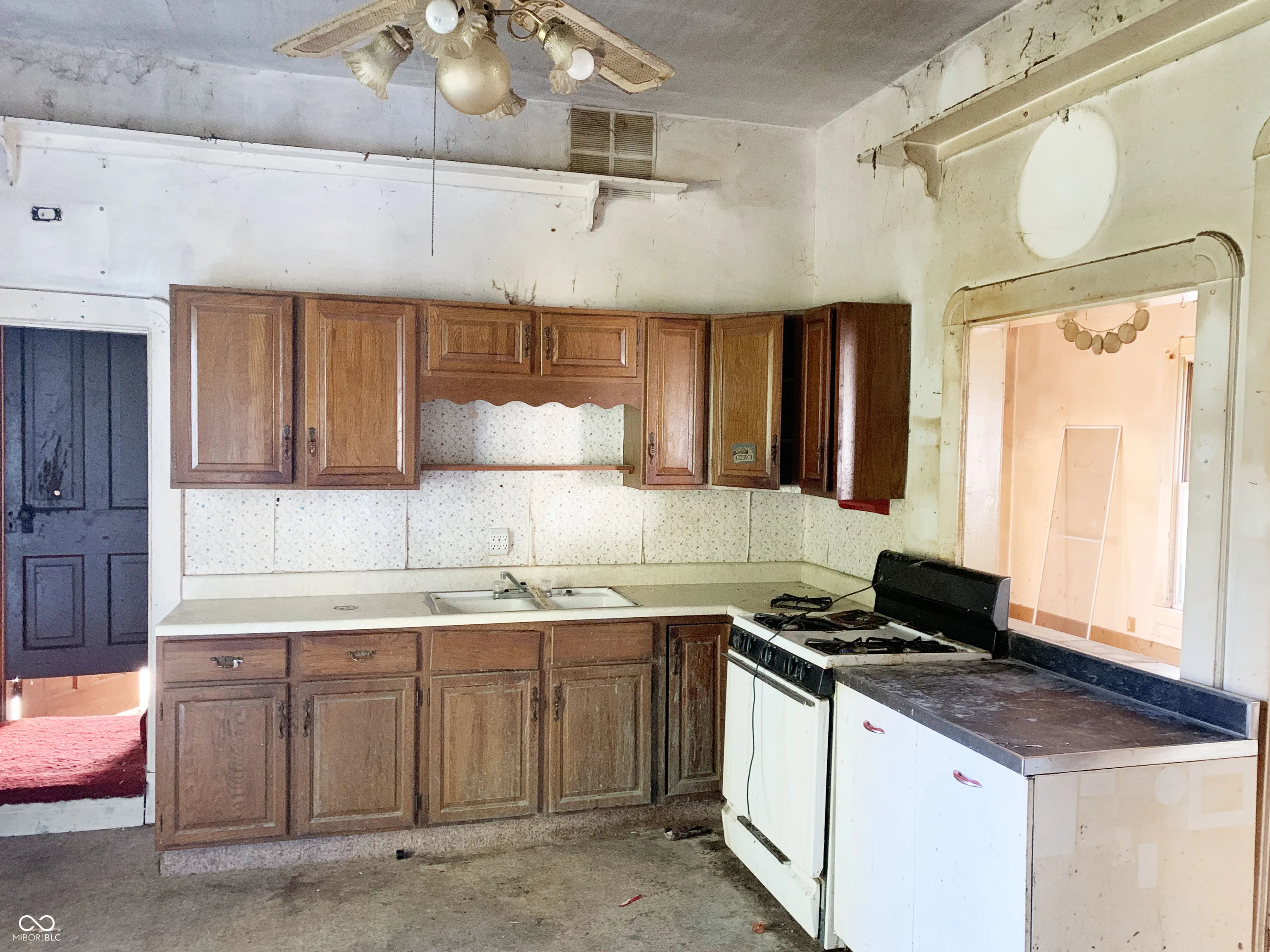 Looking for a fixer upper, this 2 bedroom 1 bath has plenty of potential. Taking up carpet revealed hardwood floors.