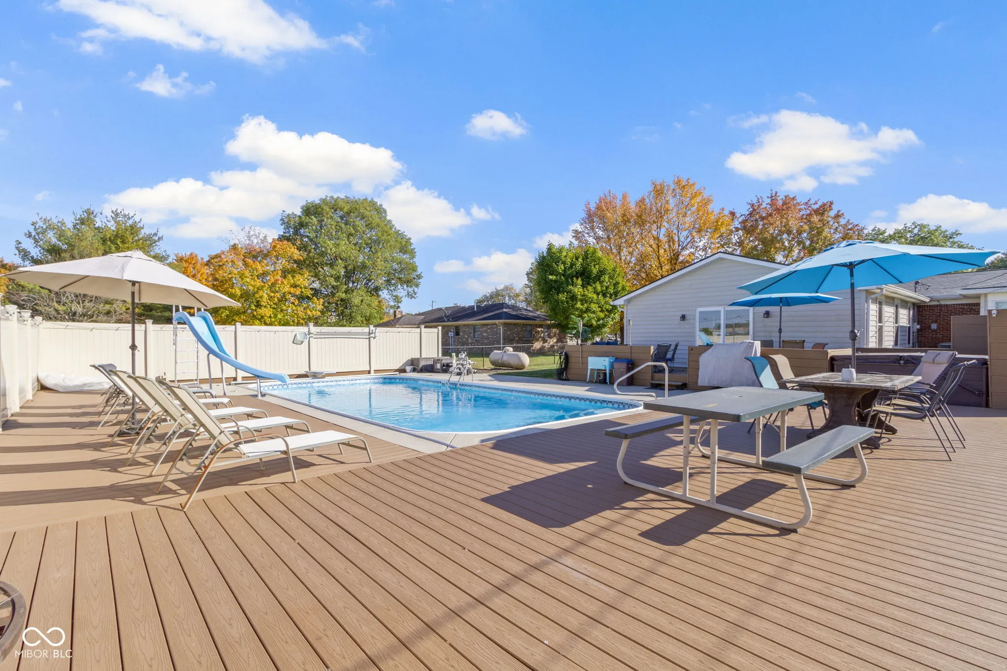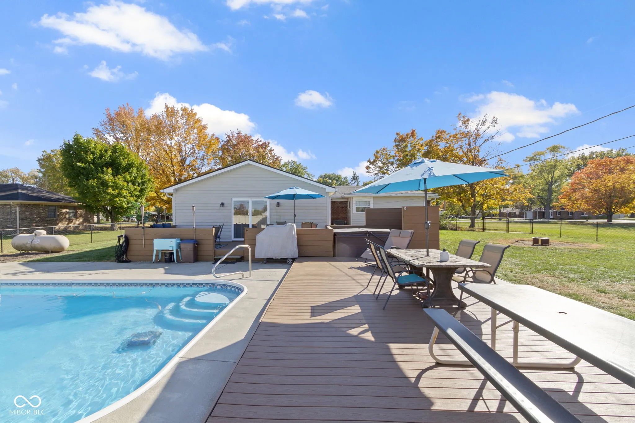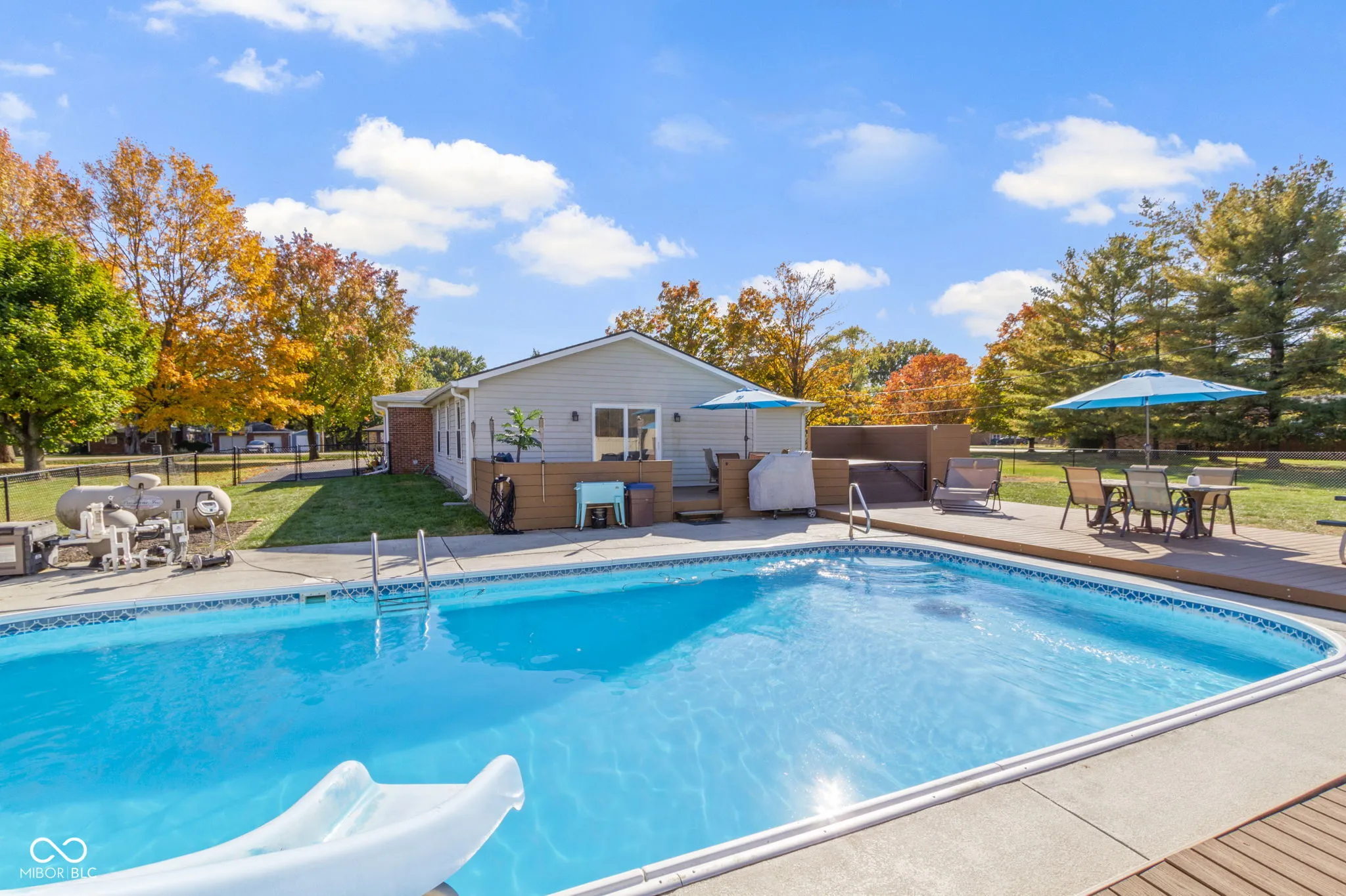 Welcome to this wonderful 3 bedroom, 2 full bath home! Walk into the awesome hearth room with a refinished wood burning fireplace. Kitchen was updated 2022 and is open with a breakfast bar, complete package of SS appliances, refurbished cabinets, granite counters, walk in pantry/laundry room. New lighting and flooring throughout home in 2024, fresh interior paint 2022. The great room is very large with several windows overlooking an awesome composite deck, patio and inground pool. Plenty of room for a dining area and entertaining! The primary bedroom is sizable with new carpet and a walk -in closet. Primary ensuite bath offers a walk-in shower, jacuzzi tub, and dual vanities. Heated, in ground pool has New electric cover, solar cover, 2023 pool pump and sand filter. 7-person Hot tub is included with brand new circulation pump, pressure switch, heating element, and lighting module. New roof 2022 and also has newer windows. Fenced in rear yard with Storage Shed. Camper/RV Storage area! Oversized 2 car garage with work bench and circular driveway. 5 star Brownsburg Schools. Do not miss out on this wonderful opportunity!!!!
