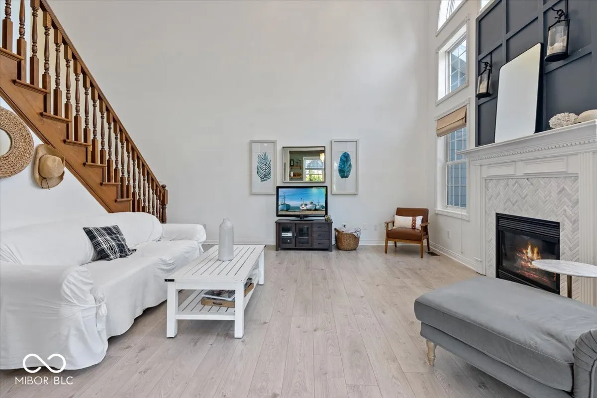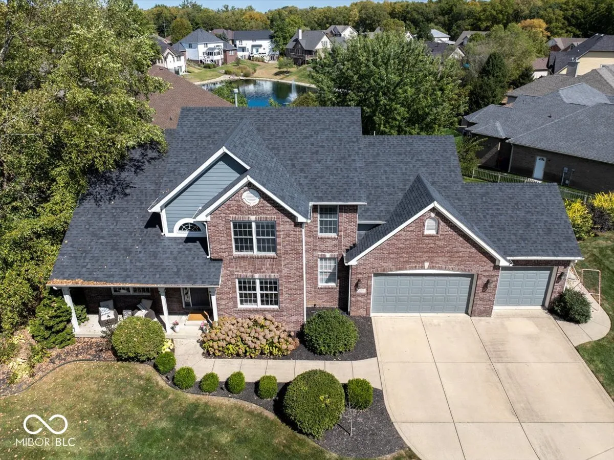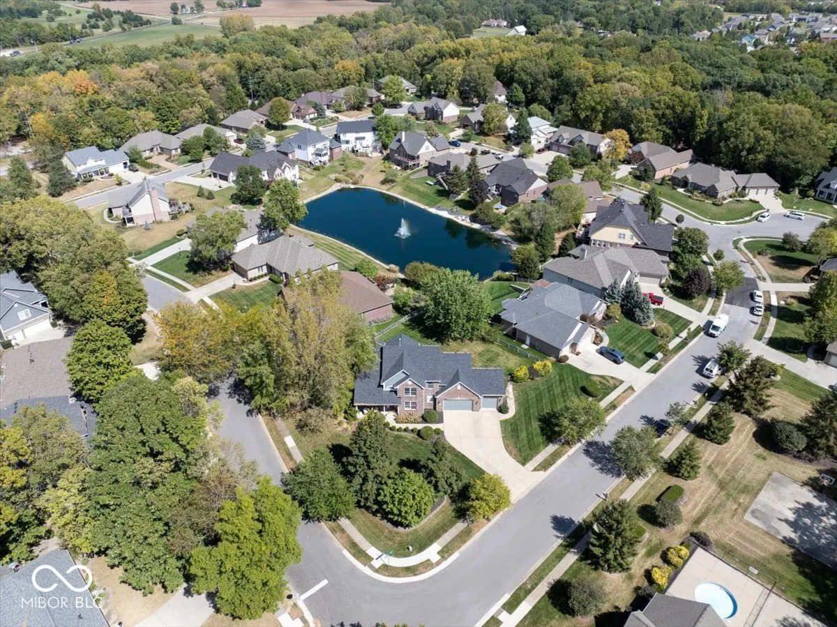 Beautiful Traditional Brick Curb Appeal + Finished Basement + 3 car Garage + Corner & Pond Lot + Across from beautiful Potters Bridge Park + Established, Well Loved Neighborhood + Neighborhood Amenities + Move In Ready = Perfection! Beam with pride as you pull up to this home situated on a corner lot with a covered front sitting porch. Front door opens to aesthetic, inviting entry with natural light pouring in through a 2-story wall of windows, gas fireplace, enclosed office w/ French doors, dedicated dining room & open floor plan with continuous flooring throughout main level. Kitchen has spacious layout with both breakfast bar & eat in breakfast area. Primary BR on main with large bath ensuite – 2 spacious, separate sink areas, bathtub + shower, large walk-in closet. 3 bedrooms + 2 full bathrooms upstairs (one with Jack and Jill set up). Rooms have large closets. Full finished basement with large rec room, half bath, second room for theatre/flex/gym/office + separate storage area. Enjoy the Backyard: situated on pond with a fully fenced yard & mature trees, with irrigation system. 3 car garage has tall ceiling height and ample space. Neighborhood swimming pool. And the pride of this beautiful, quaint neighborhood: it is steps away from peaceful woods in Noblesville’s Potters Bridge Park – walking paths, playground and serene nature in all 4 seasons. Water Heater (2023), Roof (2020), Water Softener (2020), AC (2020). Close access to highway 37 & the schools. What a beautiful home ready for its next proud owner. Welcome Home!