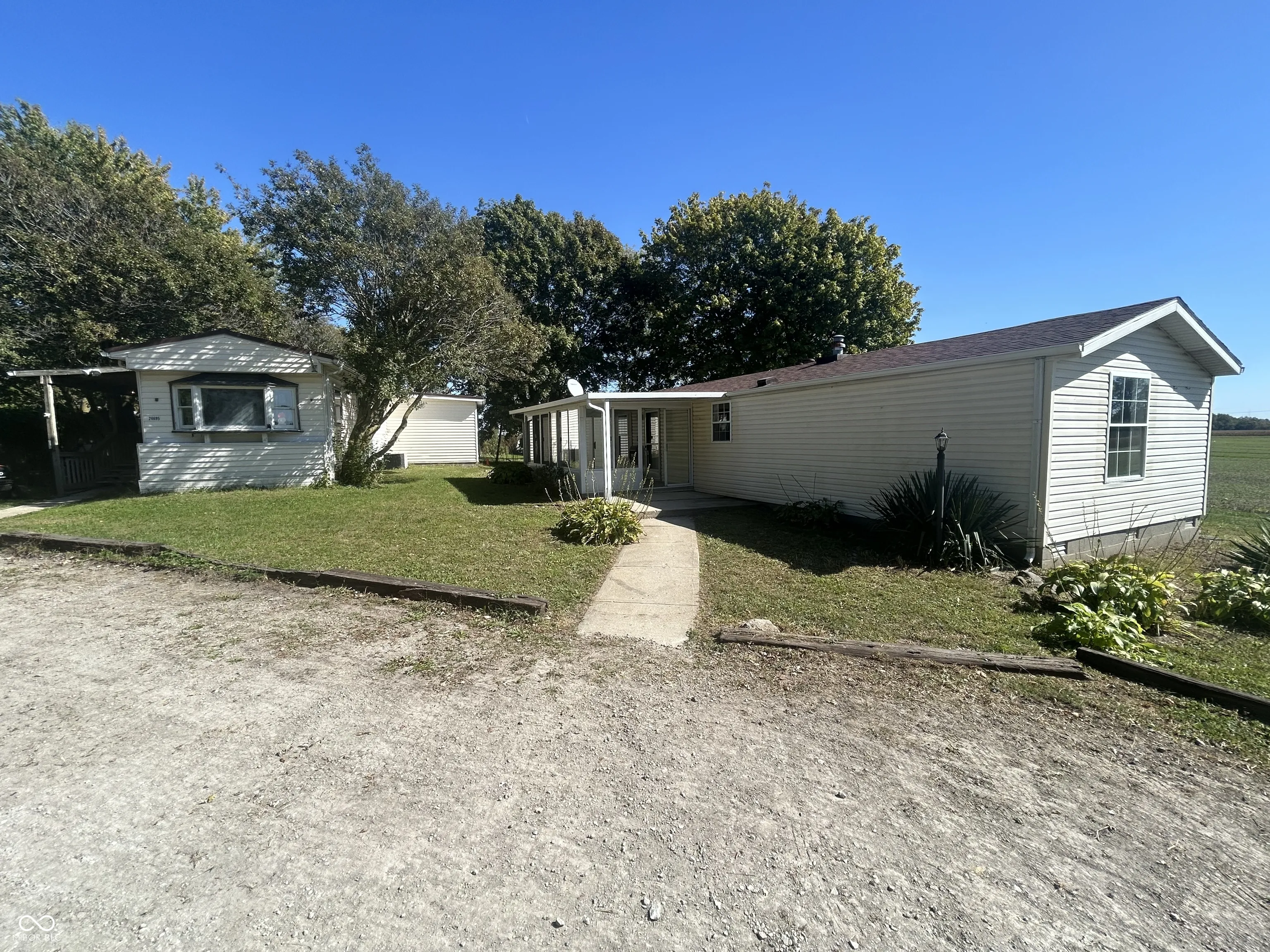 Discover country charm in this delightful 2-bedroom, 2-bath home located in the growing community of Sheridan. Step inside to a welcoming open layout, featuring a cozy family room with cathedral ceiling that seamlessly flows into the spacious eat-in kitchen, offering an inviting atmosphere. The primary bedroom offers a retreat, complete with a private bath for your convenience. Relax and enjoy the changing seasons from the comfort of your front covered porch or unwind on the back covered deck, both of which provide stunning views of the picturesque countryside. As an added benefit, this property includes a second 2-bedroom mobile home, perfect for hosting guests or generating additional rental income. With its charming appeal and flexible living options, this home offers an incredible opportunity for tranquil country living at an affordable price. Don’t miss out on making this peaceful slice of Sheridan your own!