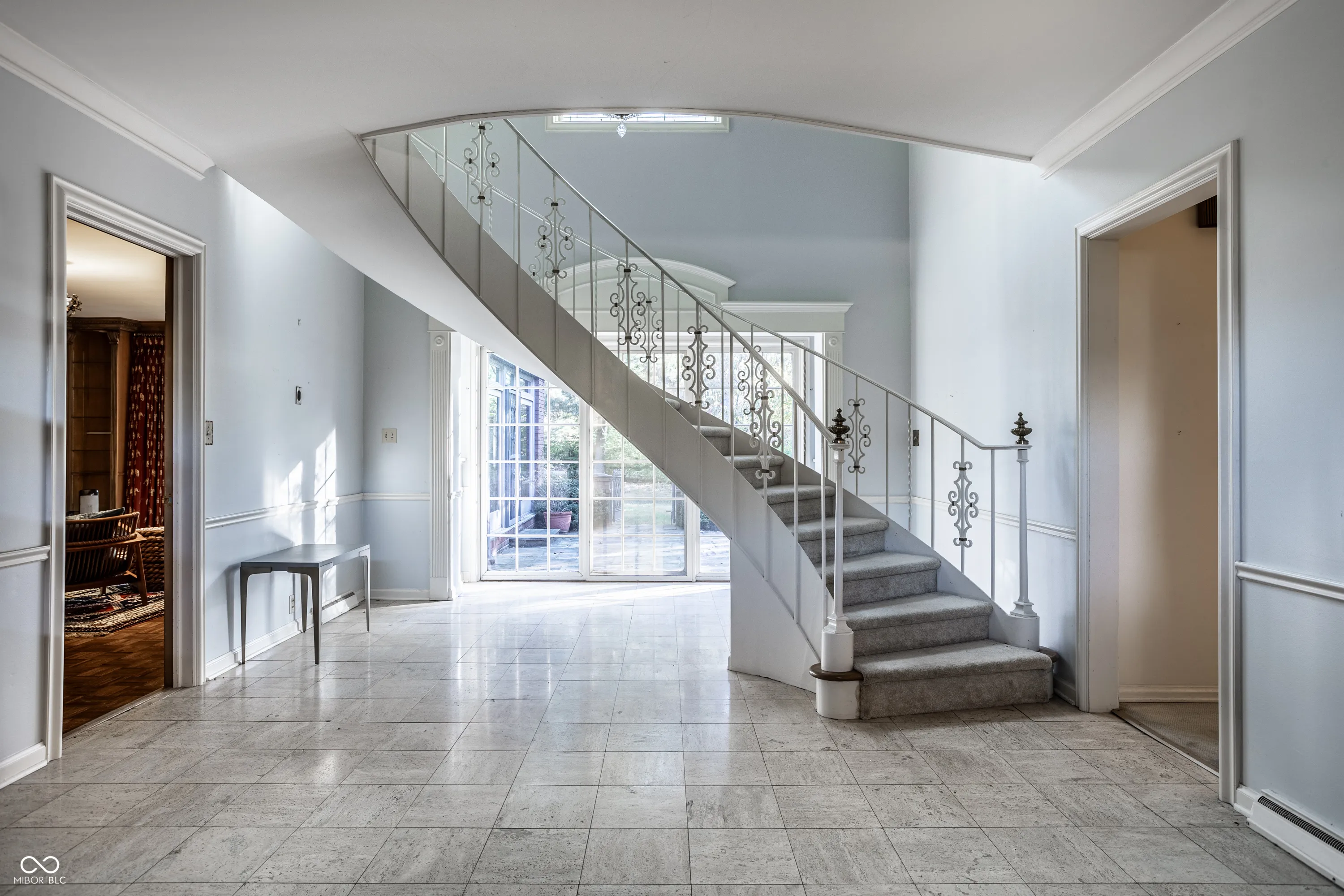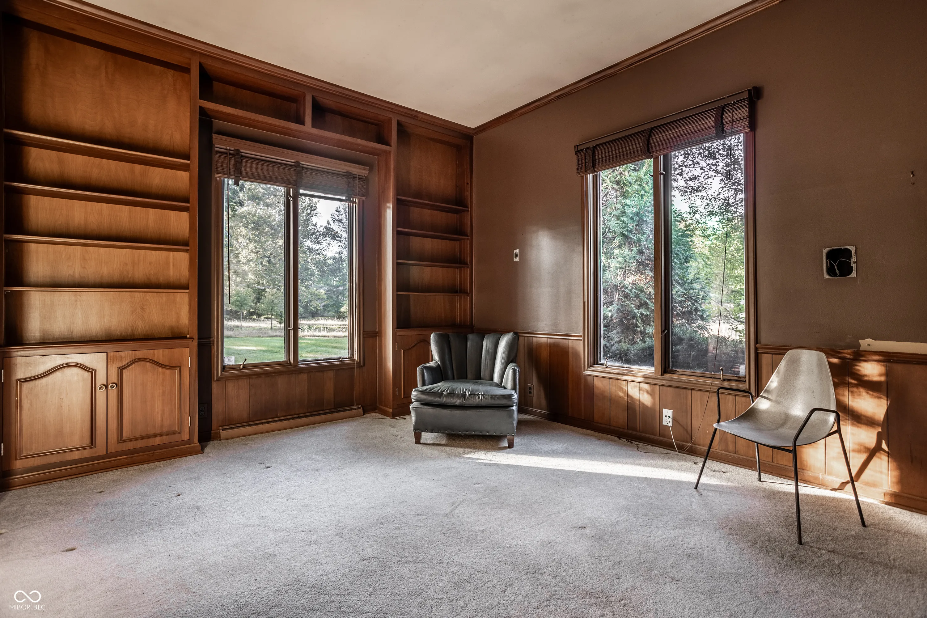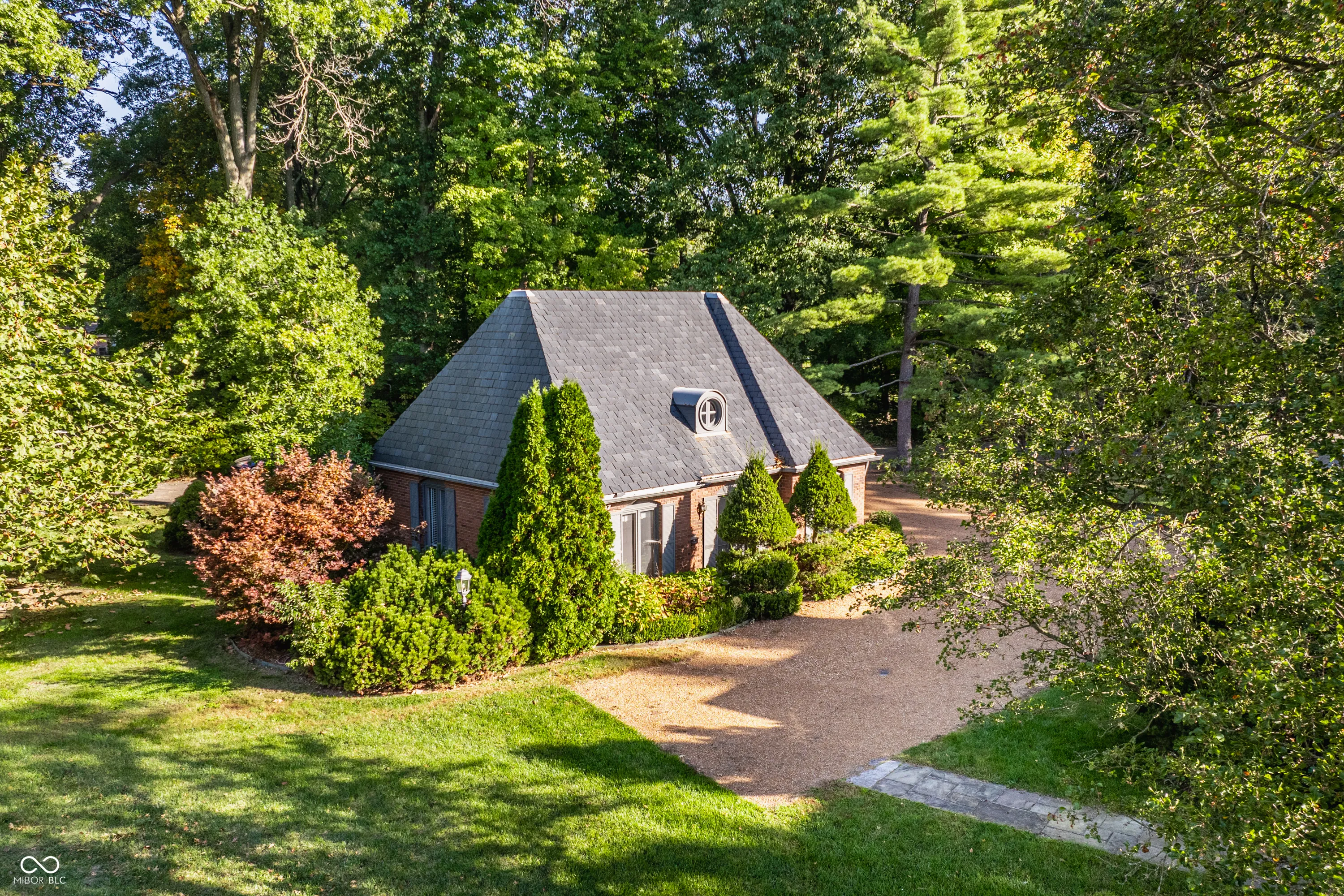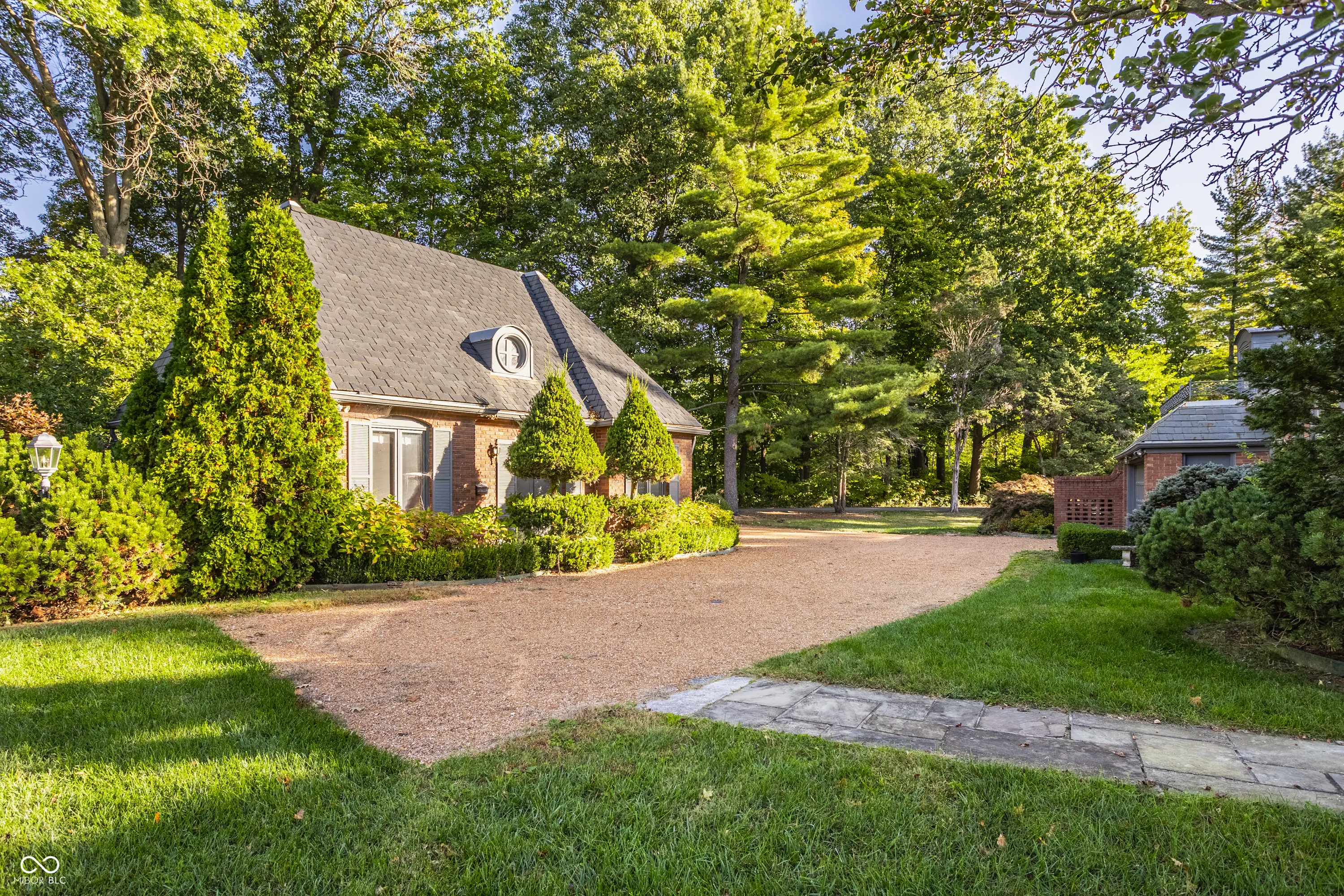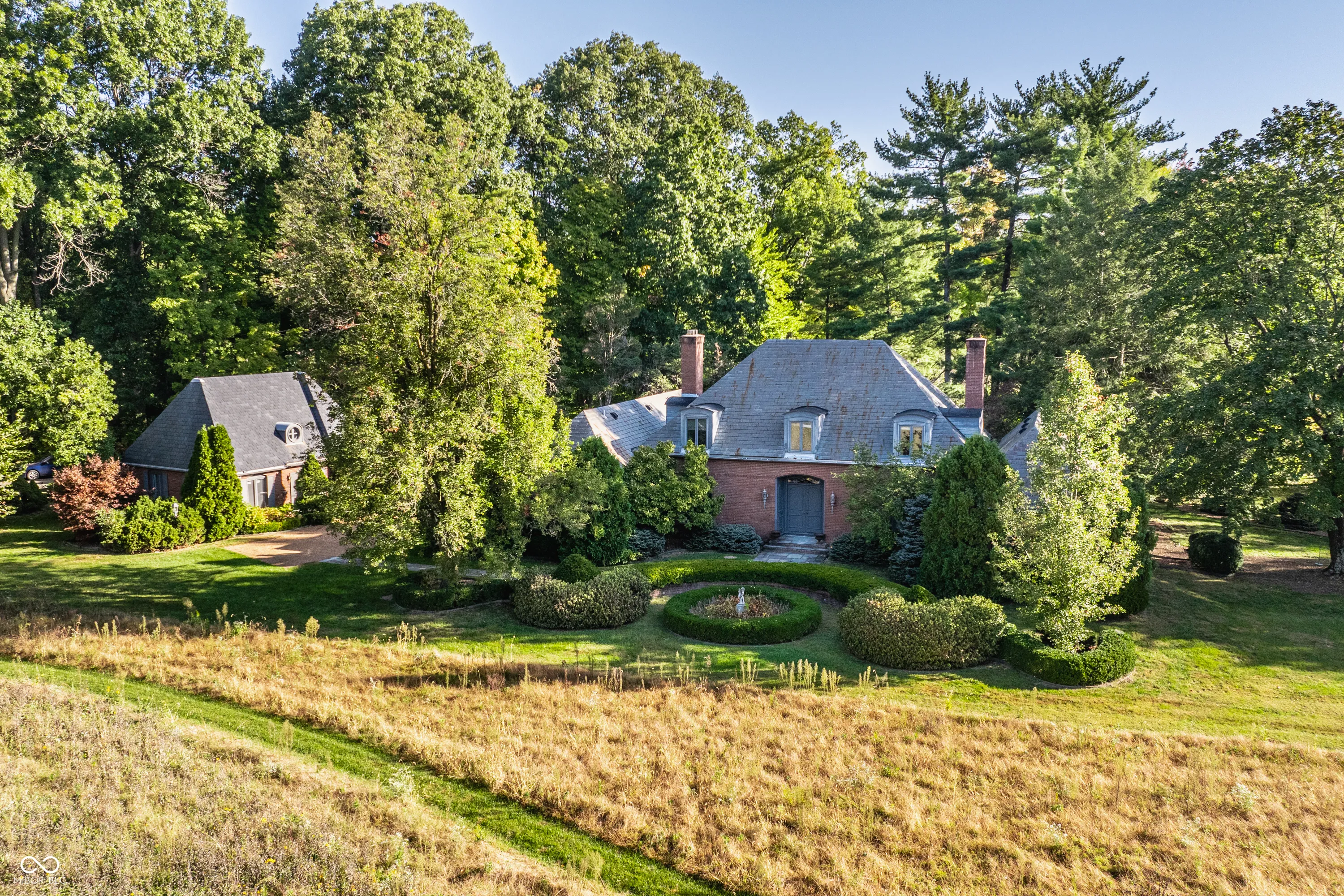 This 4,667 square foot (main home) 5 bedroom 5 bath home with a bonus room sits on 1.054 acres and is surrounded by a historic Jens Jenson designed garden owned and maintained by a neighboring property owner. The 1961 home was designed by prominent Indianapolis builder O.C. Winters. The surrounding circle garden plan was updated in 2023 by nationally recognized landscape architects Merritt Chase. This home provides an unparalleled opportunity to renovate and create a landmark home in a highly desirable location in the town of Crows Nest. Extensive renovations will be necessary to make this a liveable home. The meadow adjacent to the property is a part of a different parcel of land that is not a part of this sale. Buyer agent friendly.