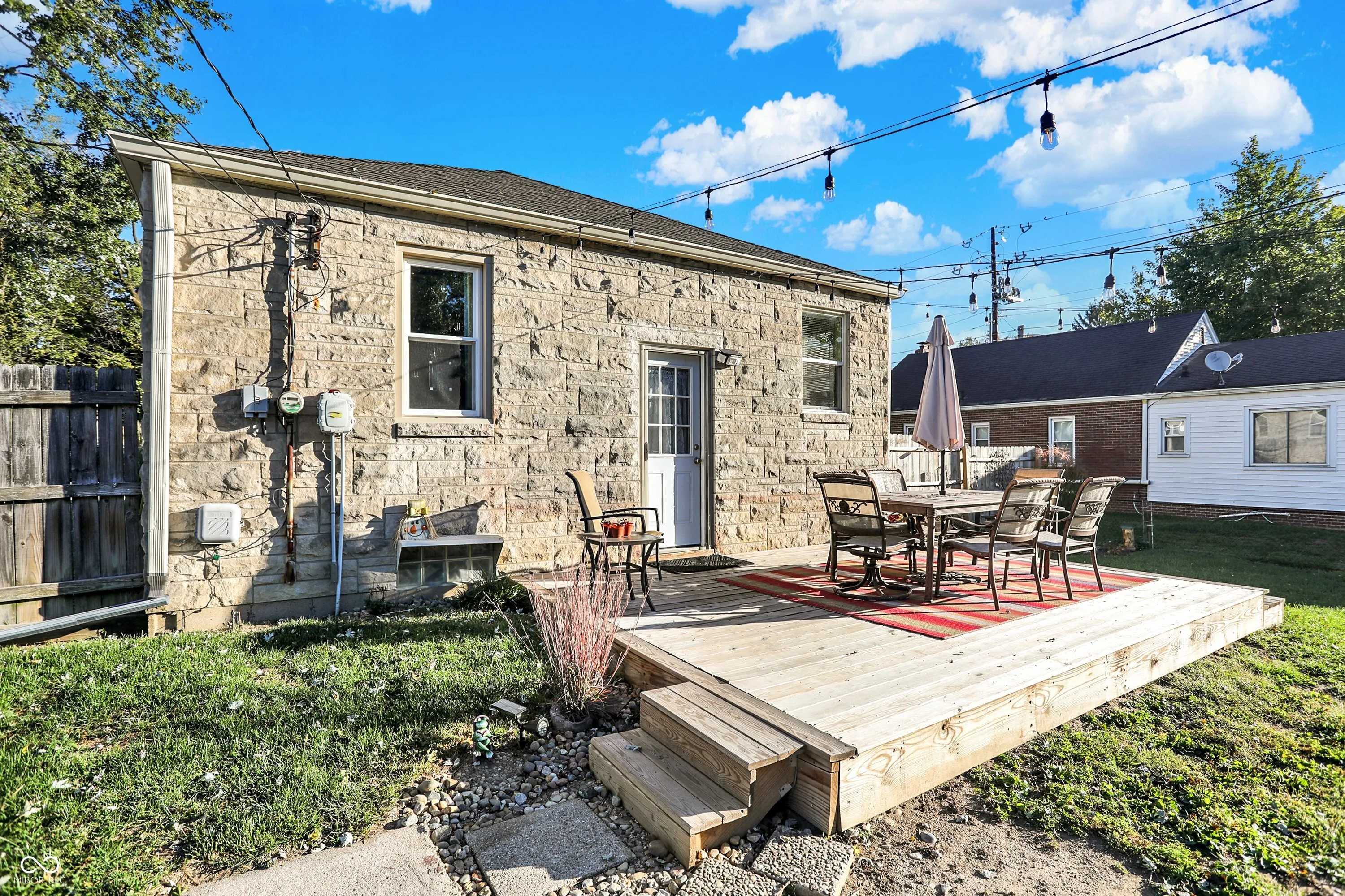 This beautifully maintained Bedford Stone house just exudes charm and comfort. The gleaming hardwood floors, arched doorways and wonderful natural light, just make you want to stay home! FULL BASEMENT provides plenty of room to spread out. “Bonus room” in basement can be used for ADDITIONAL bedroom with still plenty of room for a separate work out room, family room, laundry room and storage. Covered front porch and new wood deck in back, along with beautiful landscaping, provides an excellent outdoor living space. One car detached garage has additional space with workbenches and overhead storage. Huge yard behind garage is partially fenced with a storage shed. Close to 465 but on a peaceful tree lined street. No HOA! Well maintained neighborhood. Seller is very motivated! House has been appraised at $245K!