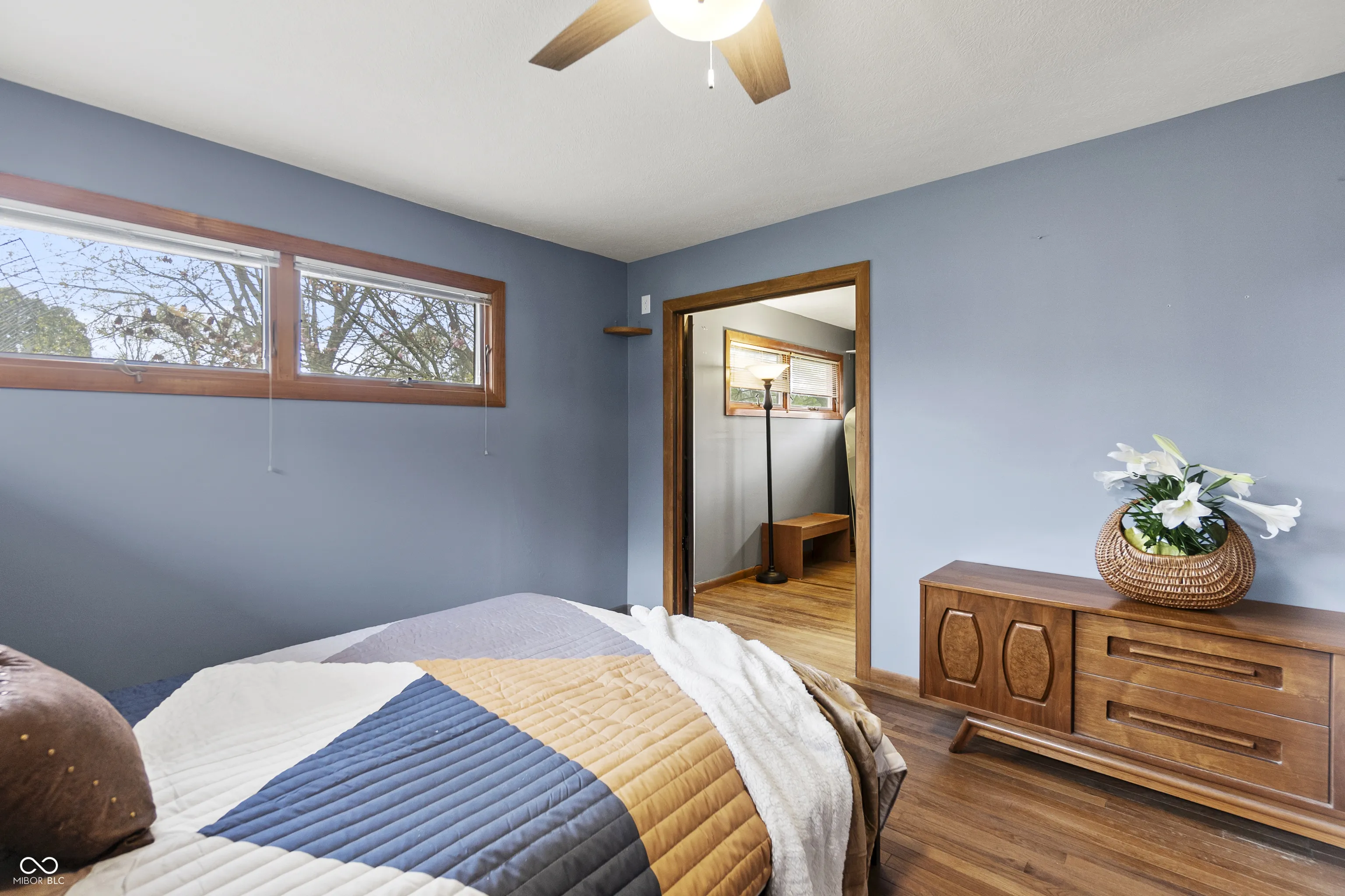 Get ready to fall in love with the charm and character of this midcentury ranch home on the near North Side of Bloomington! The fully fenced yard is filled with rare fruit and flowering trees, making it a dream space for nature lovers and pet owners alike. Inside, the home has been tastefully updated, blending modern comforts with a cool, mid-century modern style. With over $80,000 in recent upgrades, you’ll find big windows that show off beautiful views of the orchard and pergola, an indoor rock garden that lets in lots of natural light, and a cozy stone fireplace with a remote-controlled vent less gas log. There are also built-in bookcases and plenty of rooms that can be used as bedrooms, offices, or guest spaces. The primary bedroom is on the main level, featuring an extra room that can serve as an office, nursery, or dressing area. The bathroom has both a shower and a jetted tub, and the original hardwood floors add character to the space. Downstairs, the fully remodeled walk-out basement includes a sauna for relaxing. Outside, you’ll find a brand-new front porch, a spacious one-car garage with a new door, and a workshop with heating and cooling. There’s plenty of parking, two sheds, and another outbuilding with electricity and a concrete floor, giving you even more storage or workspace. If you enjoy gardening, this pesticide-free hobby orchard is perfect for you with no HOA. This property offers natural serenity just minutes from IU and downtown Bloomington!