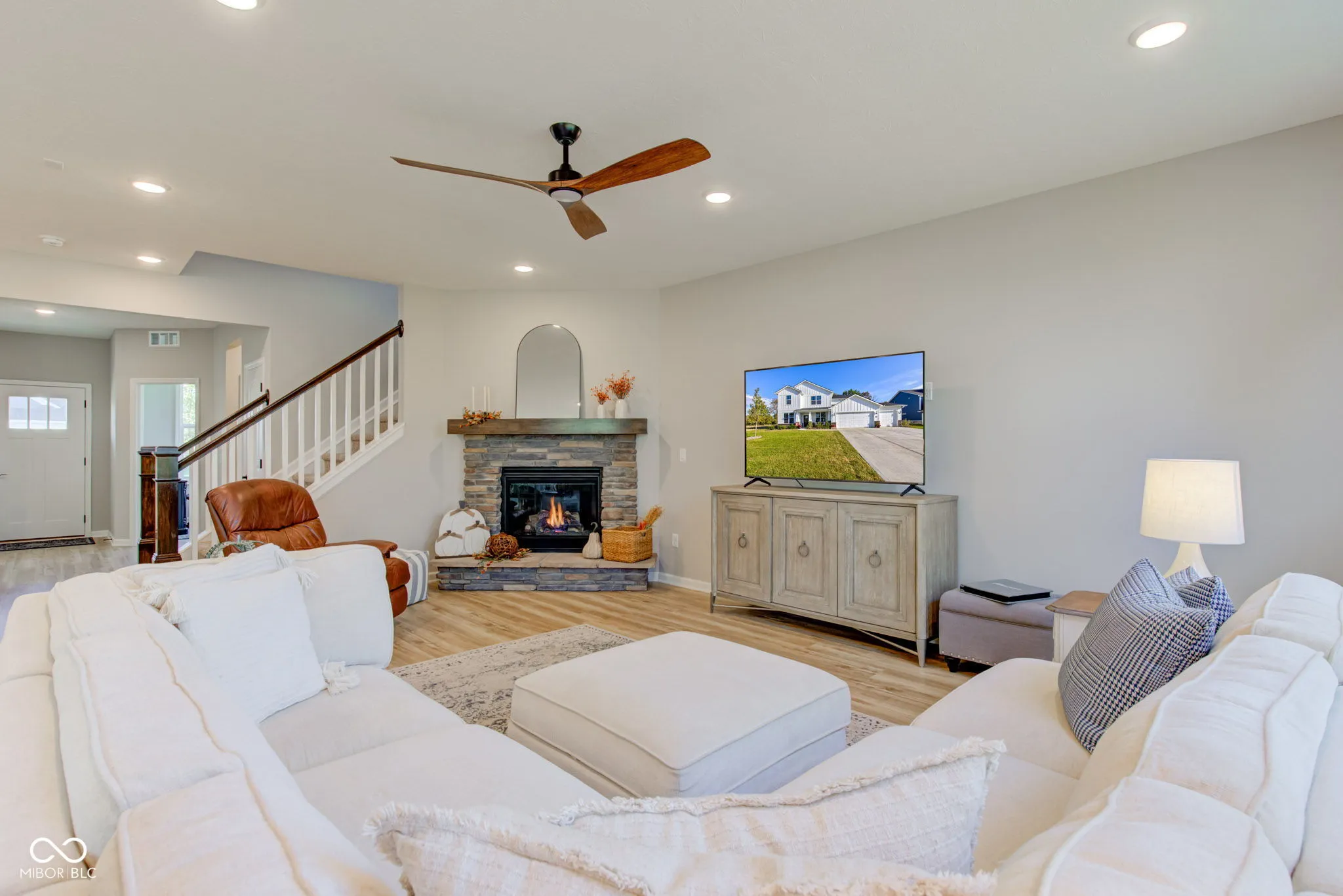 This stunning new construction home sits on a premium lot, offering a private backyard with a tree line, perfect for relaxation and outdoor activities. The main level features a bedroom and full bath, ideal for guests or multigenerational living. Enjoy the sunroom’s natural light year-round, and gather around the upgraded stone fireplace in the spacious living area. The home boasts a modern kitchen with plenty of cabinet space featuring pull out drawers and soft-close doors as well as under-cabinet lighting ensuring style and convenience. Located in the highly rated Plainfield school district, you’re just minutes from I-70, Indianapolis International Airport, and a short drive to downtown. The owners of this beautiful new home (completed in August ’24) are relocating out of state due to an unexpected job offer, creating a unique opportunity for you to own this brand new property without waiting on construction!