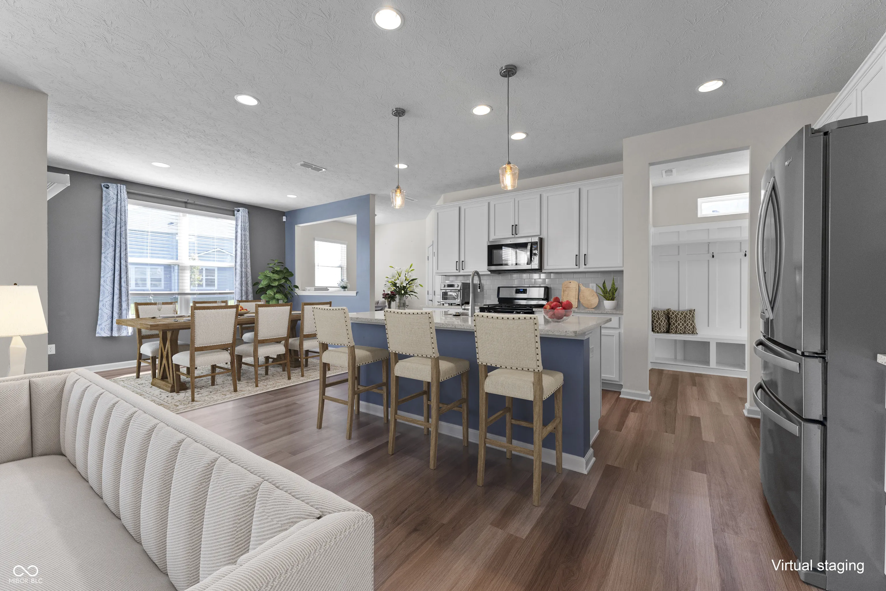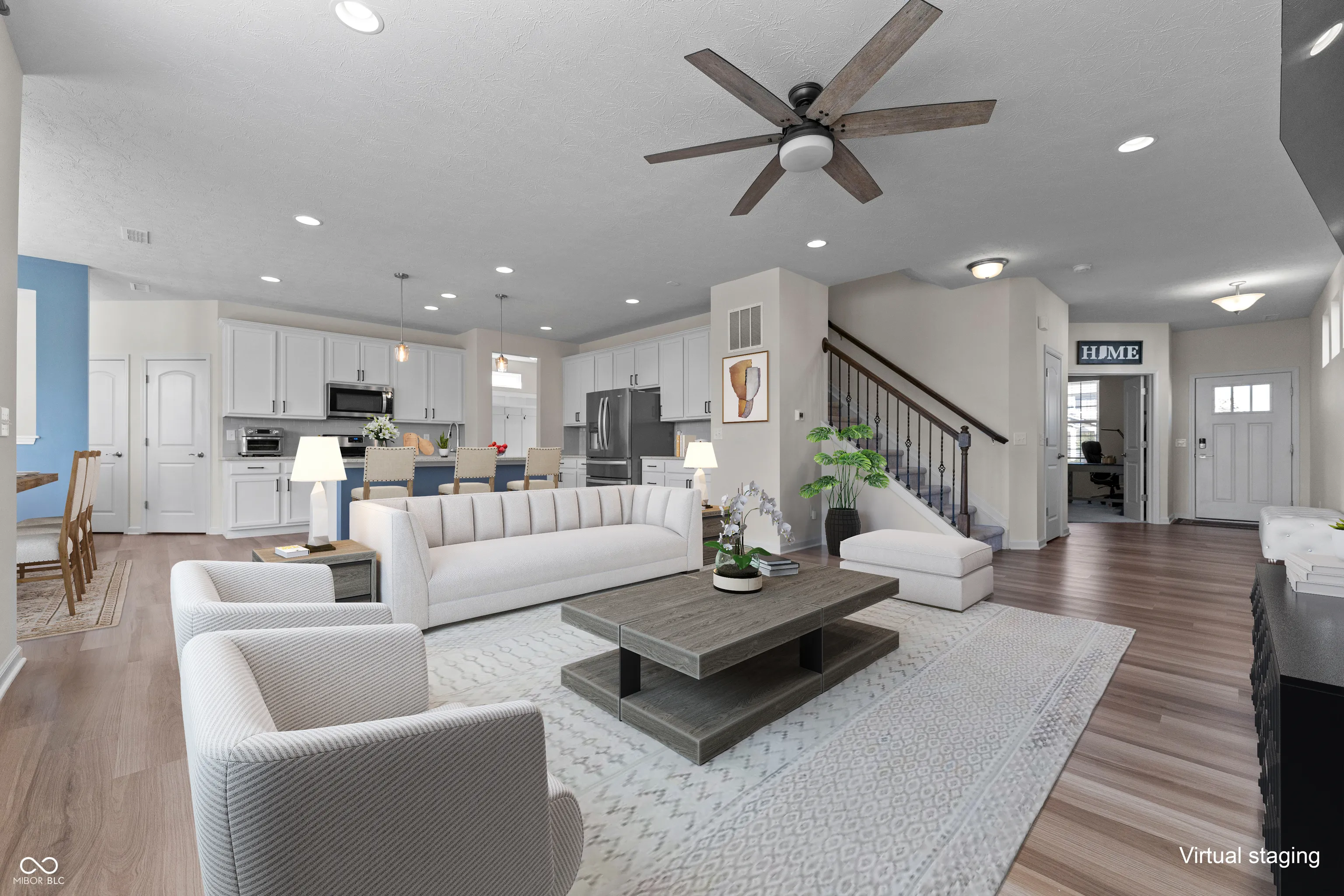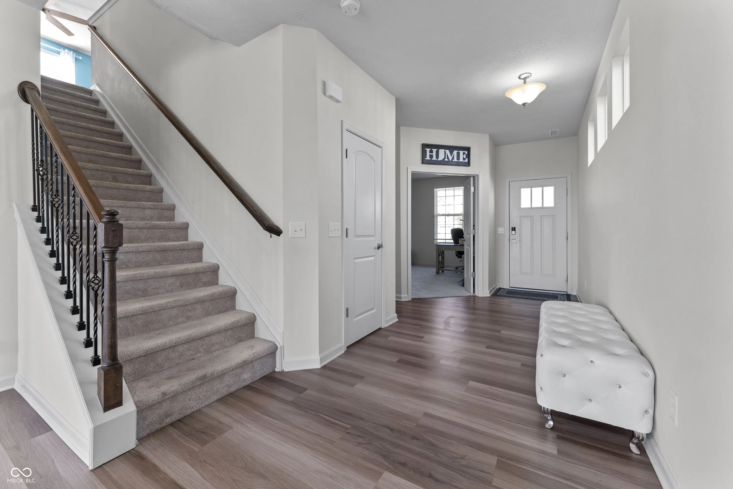 Discover this impressive 4-bedroom, 2.5-bath home in the highly sought-after Blue Ridge Creek neighborhood. The open floor plan flows effortlessly into the spacious dining area and cozy family room, leading to the upgraded kitchen featuring stainless steel appliances, quartz countertops, a beautiful backsplash, and ample storage. Perfect for remote work, the main level offers two separate offices. Additional highlights include a finished mudroom, an expansive upstairs loft, and an upstairs laundry room with a convenient sink. The primary suite boasts a large walk-in closet and an ensuite bath with a double vanity, tile flooring, and a luxurious walk-in shower. The Blue Ridge Creek community provides walking trails, a pool, and a playground-ideal for summer fun. Conveniently located near Ruoff Music Center, Finch Creek Fieldhouse & Park, and just minutes from Hamilton Town Center, this home blends comfort and convenience perfectly!