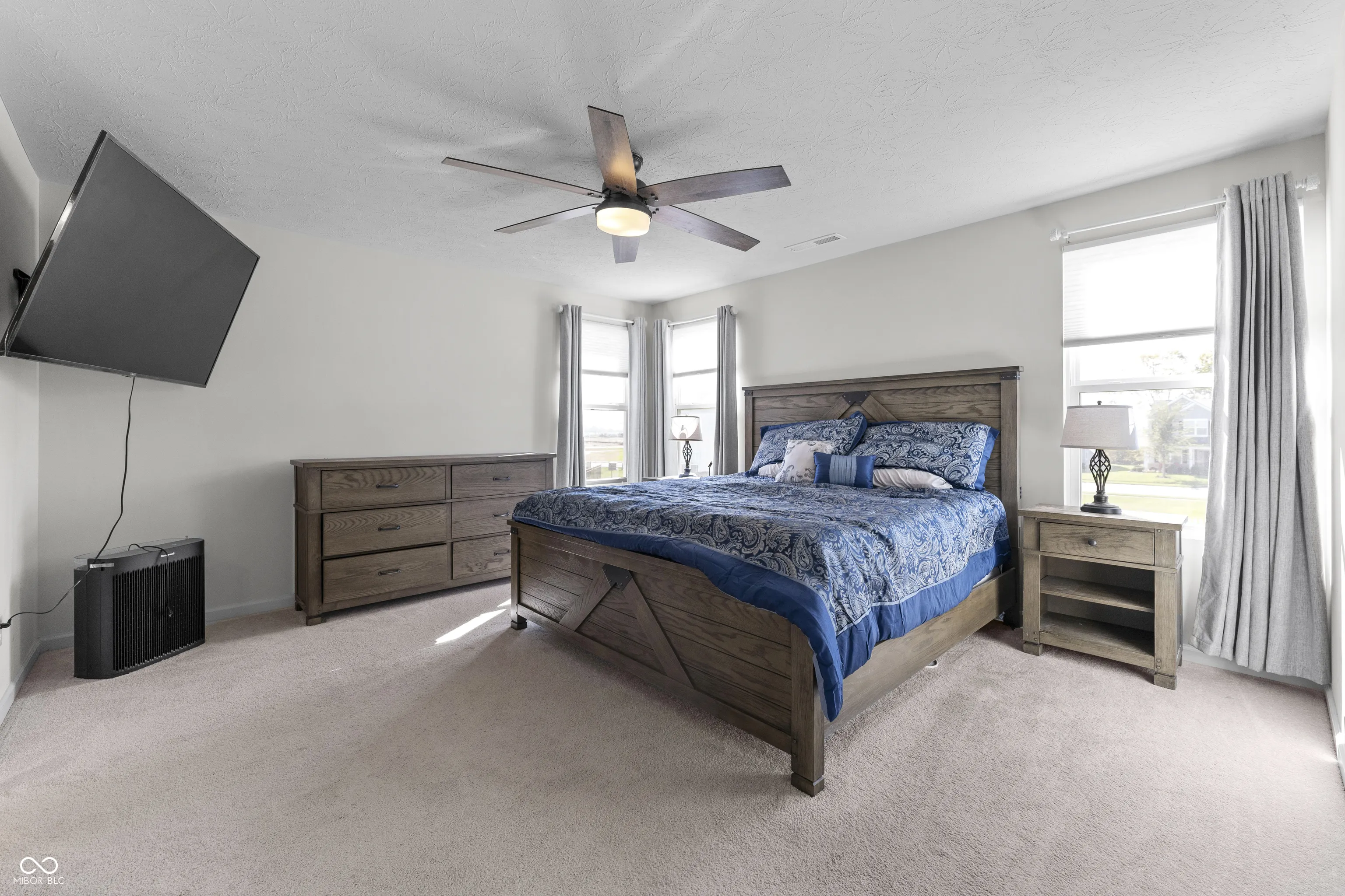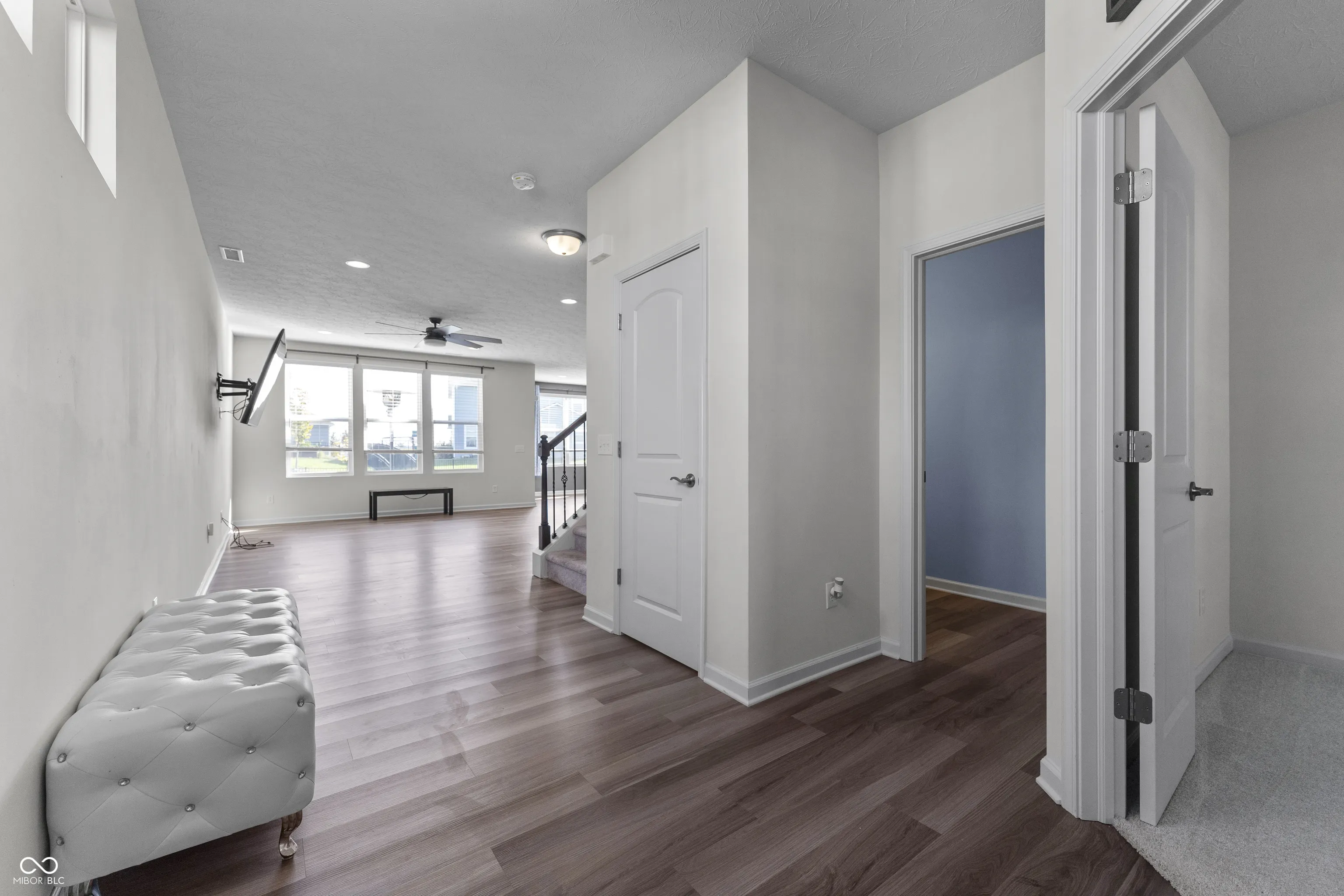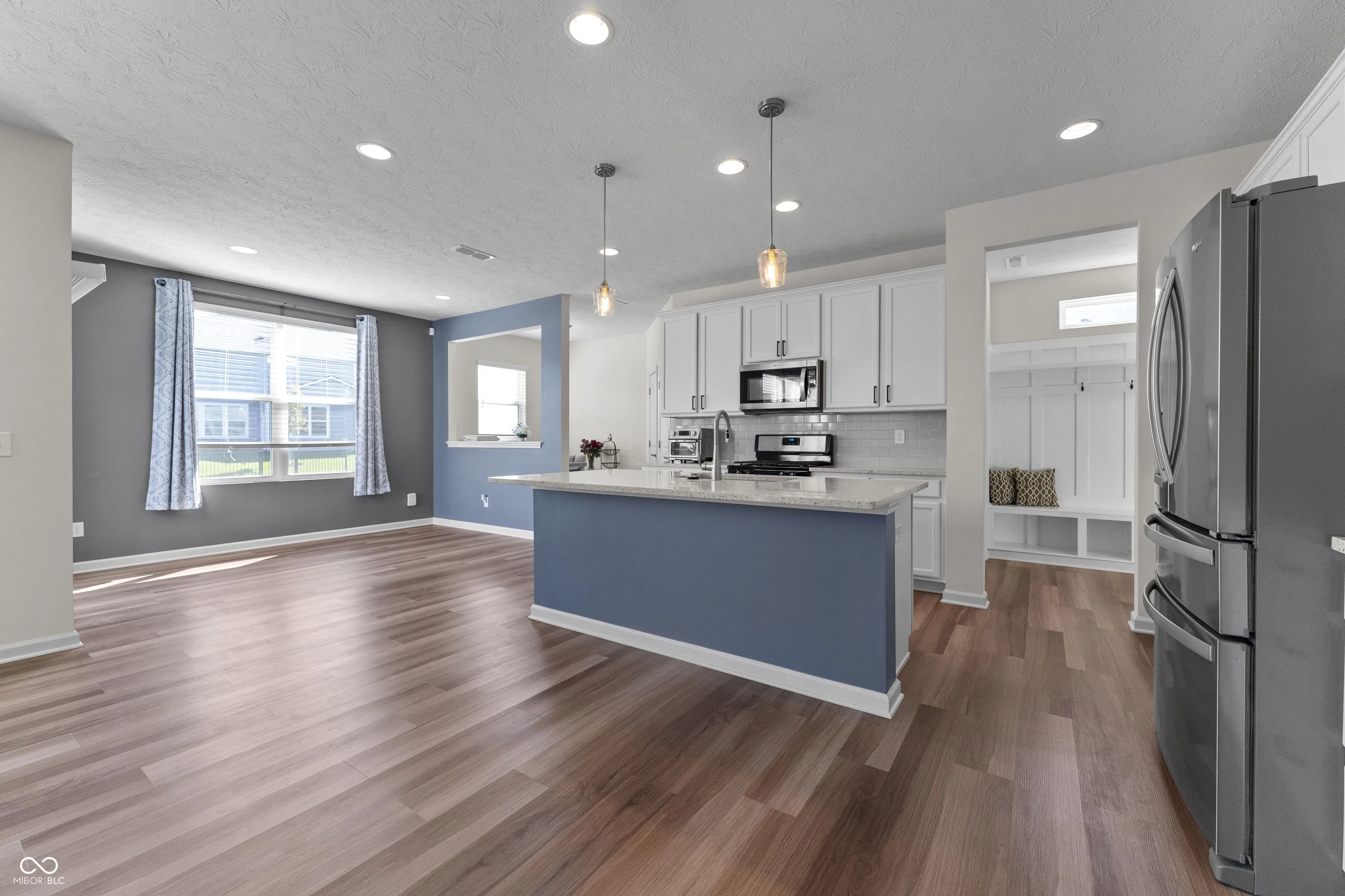 Discover this impressive 4-bedroom, 2.5-bath home in the highly sought-after Blue Ridge Creek neighborhood. The open floor plan flows effortlessly into the spacious dining area and cozy family room, leading to the upgraded kitchen featuring stainless steel appliances, quartz countertops, a beautiful backsplash, and ample storage. Perfect for remote work, the main level offers two separate offices. Additional highlights include a finished mudroom, an expansive upstairs loft, and an upstairs laundry room with a convenient sink. The primary suite boasts a large walk-in closet and an ensuite bath with a double vanity, tile flooring, and a luxurious walk-in shower. The Blue Ridge Creek community provides walking trails, a pool, and a playground-ideal for summer fun. Conveniently located near Ruoff Music Center, Finch Creek Fieldhouse & Park, and just minutes from Hamilton Town Center, this home blends comfort and convenience perfectly!