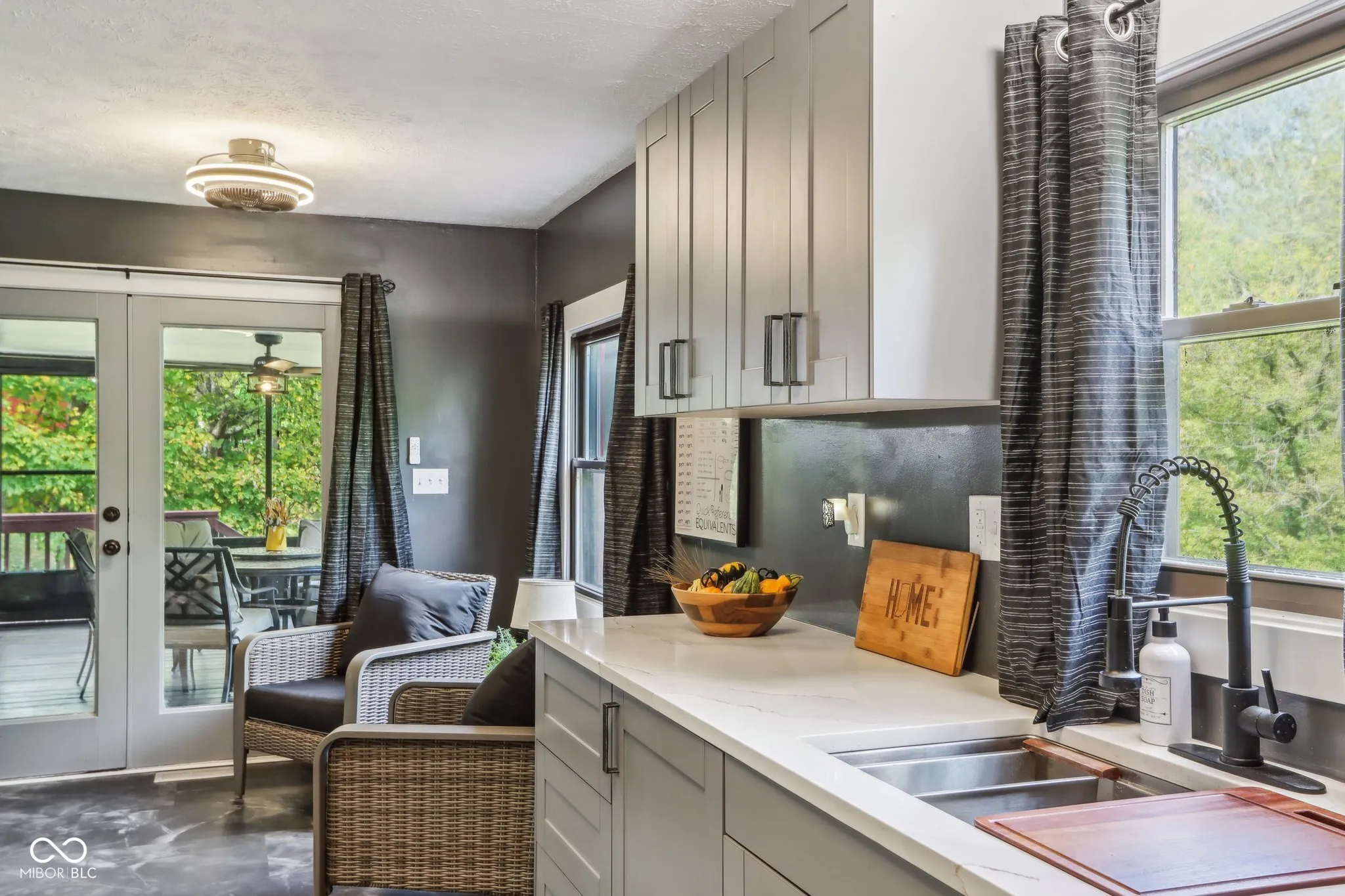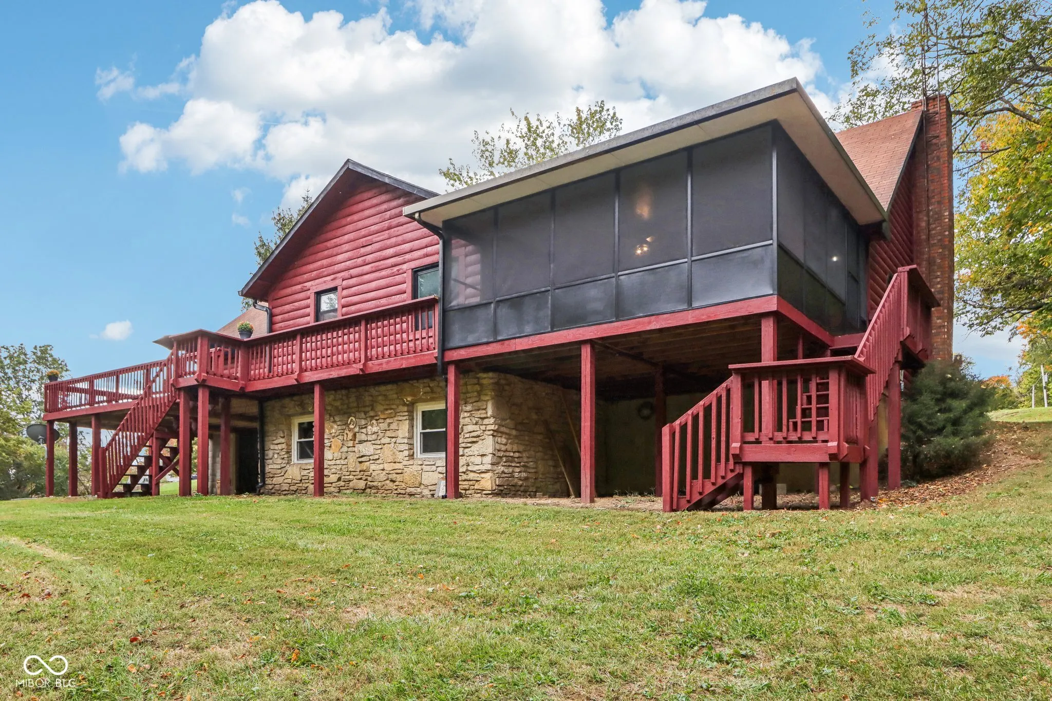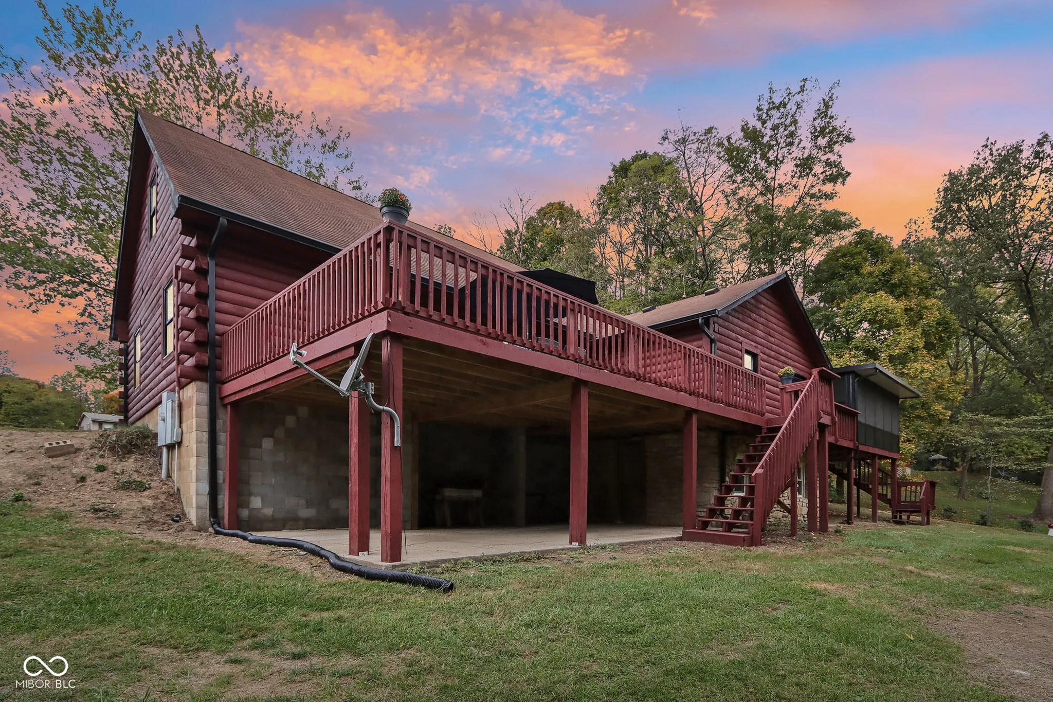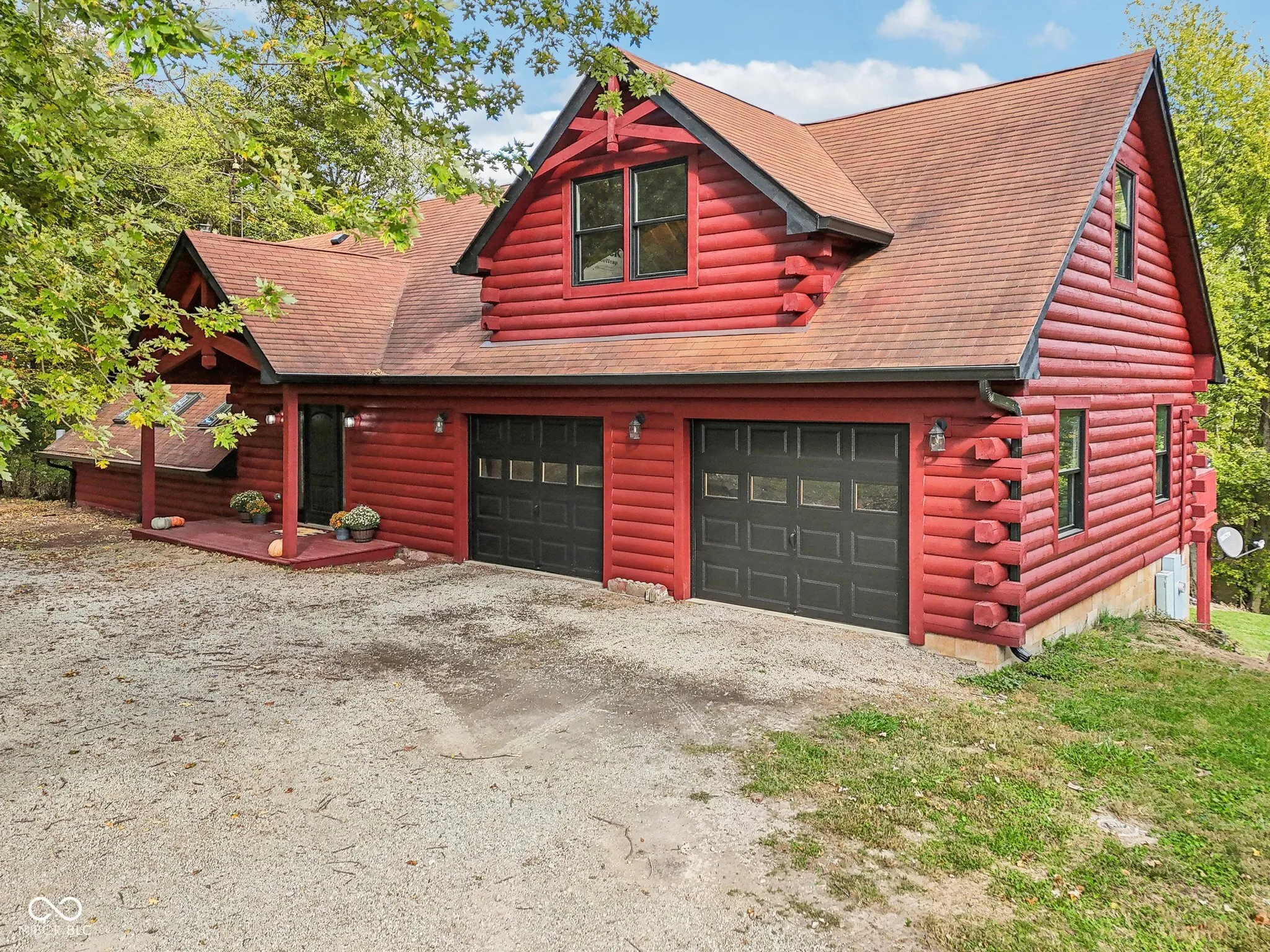 This breathtaking modern log cabin perched on a tranquil lot with stunning views of the FlatRock River. As you step inside, notice soaring vaulted ceilings and an expansive open floor plan that effortlessly connects the living room and completely updated kitchen. The kitchen is a culinary delight, adorned by beautiful countertops, custom cabinetry with designer hardware, stainless steel appliances, farmhouse sink, and stylish modern lighting. The main floor primary suite includes a cozy sitting room, bathed in natural light from skylights, offering mesmerizing river views. It connects to a beautifully updated bathroom with modern vanity and custom shower complete with sliding glass doors and teak bench. The bonus room, located above the spacious two-car garage, leaves a blank canvas for an additional guest suite space, theatre, gym or living area. The walk-out basement provides generous space for entertainment or additional bedrooms. Renovations completed in 2024, include custom barn doors, lighting fixtures, fresh paint inside and out, wrought iron staircase, new luxury vinyl plank flooring, plush carpeting, custom cabinets, countertops, updated electrical system, plumbing, and new water heater. All which ensure worry-free living for years to come. Seller to provide home warranty.