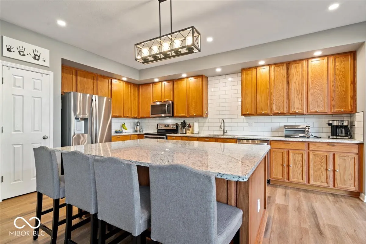 Welcome to your dream home in the desirable Pines West subdivision! This spacious detached 4-bedroom, 2.5-bath residence offers the perfect blend of comfort and style. Step inside to discover a bright and inviting open floor plan. The heart of the home is the stunning kitchen, featuring a massive center island that’s perfect for family gatherings and entertaining guests. Ample cabinetry and new kitchen backsplash! The main level also boasts a cozy living area, ideal for relaxation, and a dining space that flows seamlessly from the kitchen. Upstairs, you’ll find generously sized bedrooms, including a serene primary suite complete with an en-suite bath. Enjoy the outdoors in your fully fenced backyard, perfect for kids, pets, or summer barbecues. An unfinished basement provides endless possibilities-transform it into a playroom, home gym, or additional storage space. With its prime location in the Pines West subdivision, you’ll enjoy a friendly community atmosphere and convenient access to local amenities, parks, and schools.