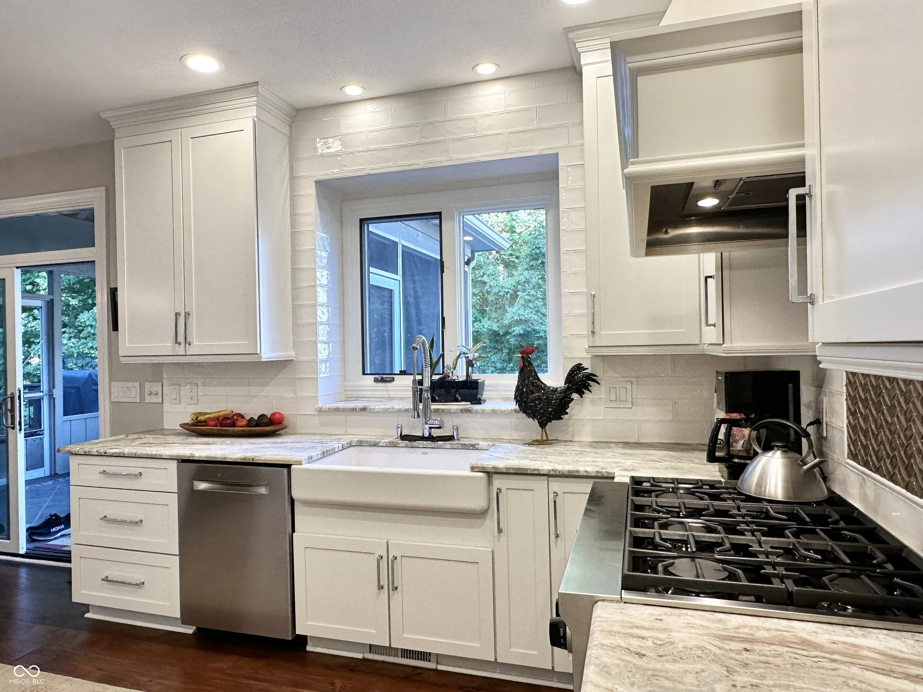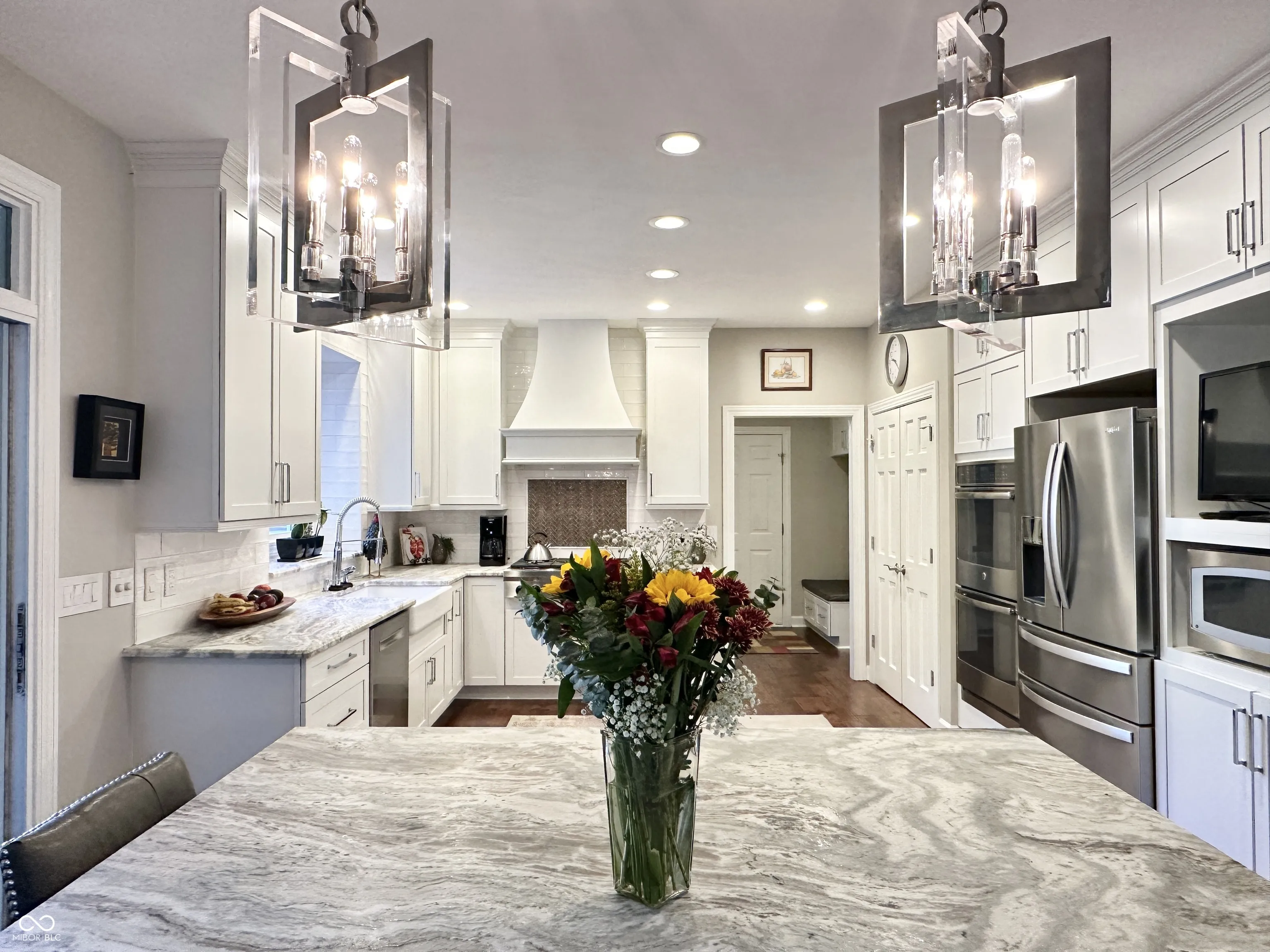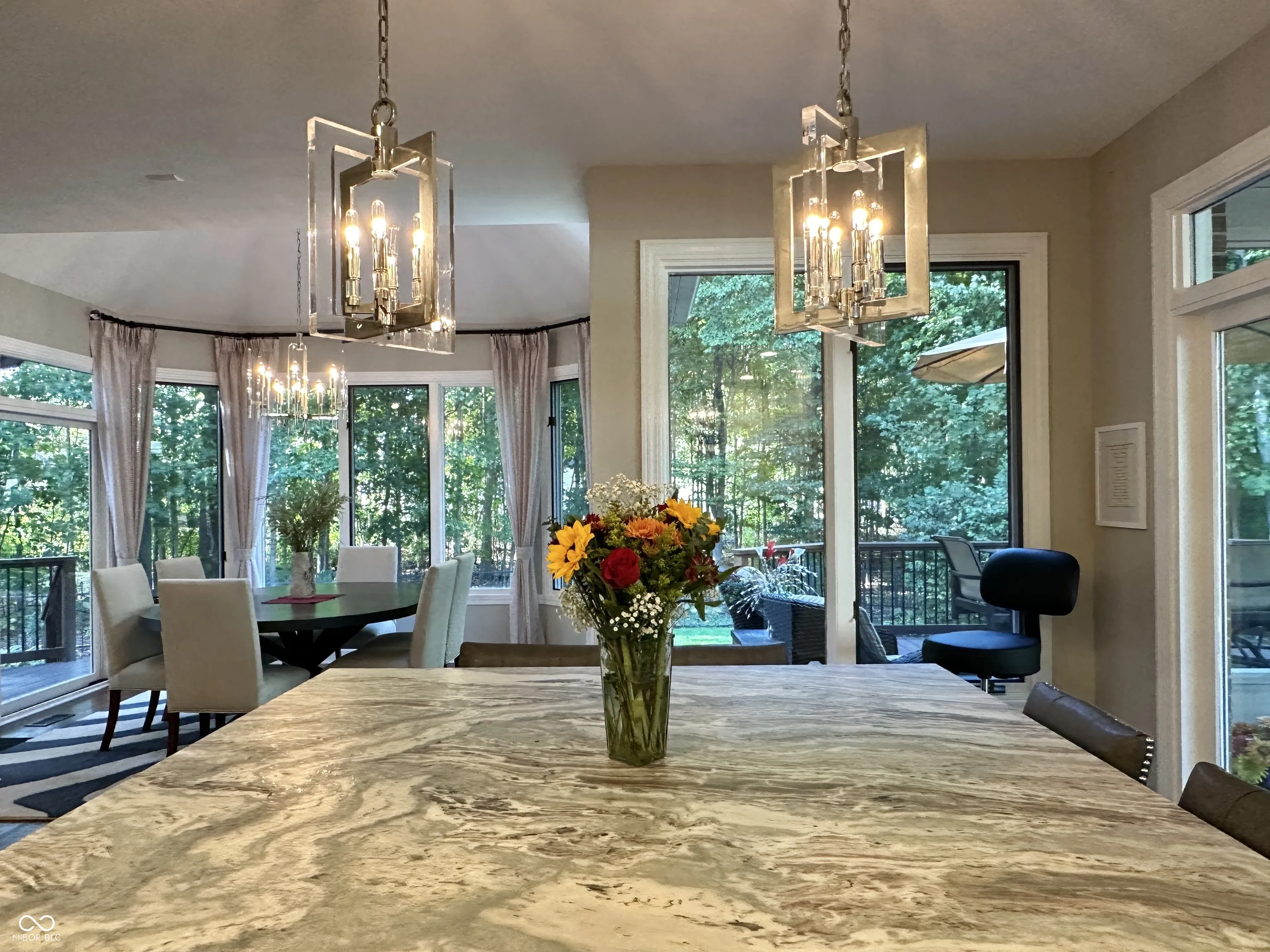 One-of-a-kind, 5 Bedroom, 4.5 Bath, 3-Car garage, custom-built, fully updated home, on half an acre, with elegant design touches and luxurious upgrades throughout. Outstanding great room with 2-story custom glass wall, private wooded view, three-sided gas fireplace that has views from three rooms, sunroom, gourmet kitchen with island, double ovens, stainless steel appliances, engineered hardwood floors, full of upscale finishes and amenities. Start your day sipping coffee on the large screened-in porch, in the gorgeous sunroom, or by the three-sided gas fireplace with custom Indiana limestone mantle. The primary bedroom is on the main and has a beautifully designed, hand-crafted accent wall that makes a bold statement, as does the completely updated primary en-suite with skylights, walk-in closet with sitting area, a full freestanding bathtub, and a full walk-in shower. Then, just outside the primary ensuite, step out to the full back deck and enjoy your private oasis with a jacuzzi spa and room to relax or entertain. The upstairs bedrooms connect via a full bathroom. Home has tons of storage, every bedroom has a walk-in closet, and there is additional storage in the walk-in attic. The finished basement features large egress windows that bring in tons of light, a bedroom with a full bath featuring a backlit marble countertop, a seamless granite bar, a state-of-the-art home entertainment theater with a wall-sized movie viewing screen, projector, sound system, and leather reclining seats, a sitting room with an electric fireplace and a TV, a cellar/storage room with built-in shelving, and a dedicated utility room with a workshop. The laundry room is on the main level and is conveniently located by the mudroom and the garage entry. The large 3-car garage has more storage space and an added RV Plug-In. Located in one of Carmel’s most sought-after communities Bayhill at Waterside, welcome home!