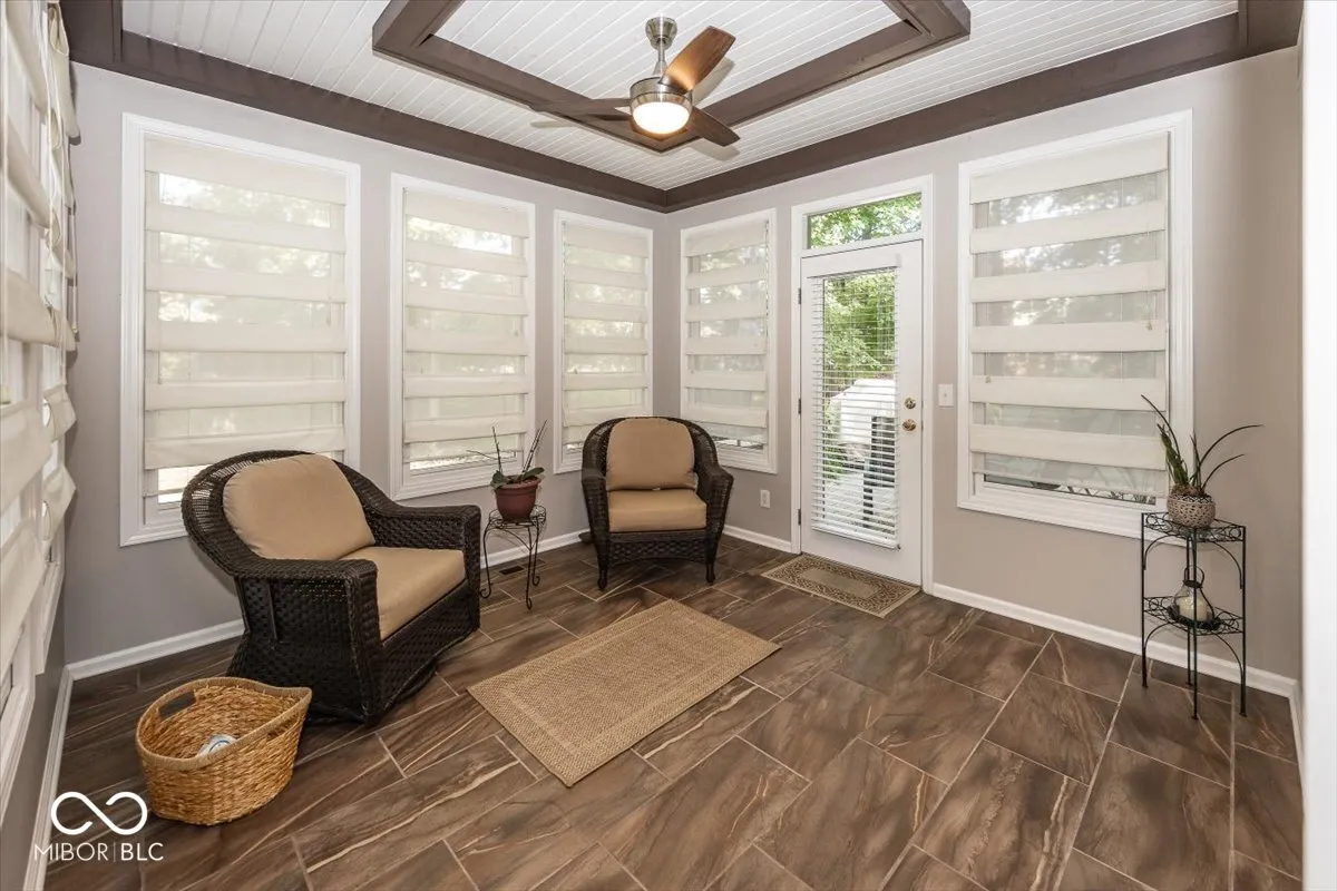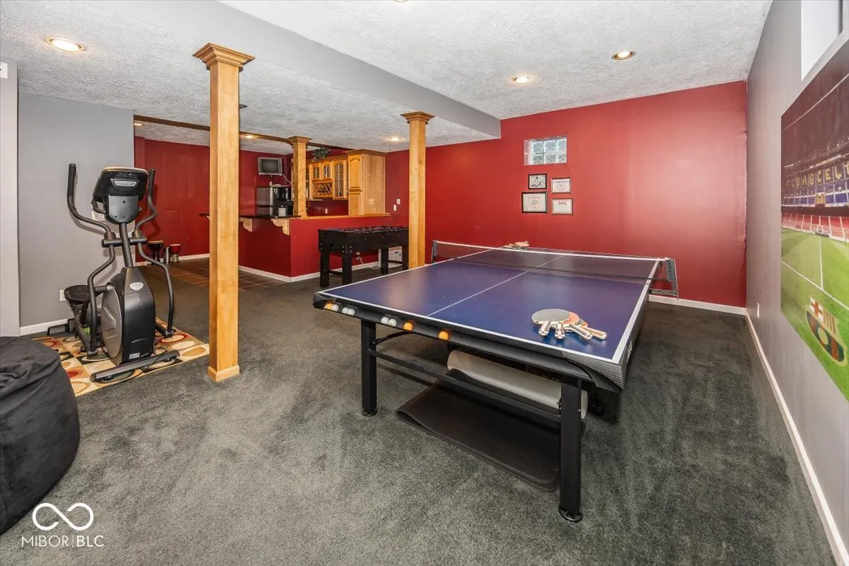 Experience luxury living in this large custom built 4 bedroom 3.5 bath home located in SW corner of Clay Township (convenient to 465/Indianapolis). Enjoy the finished basement with impressive wet bar and room for ping pong table and a separate television area, also equipped with a full bath and enclosed room for crafts/office/flex! The interior boasts a main floor with flex room for office/music/den featuring french doors, a dramatic two story great room with shelving and fireplace, large breakfast area and kitchen open to great room. All appliances are included (even the washer and dryer!) The impressive ensuite has a large walk in closet and beautiful bath area. A glass enclosed sunroom off kitchen and attached deck is yours to enjoy year round while experiencing the large, private lot with numerous trees. and wildlife. The community is a safe community to walk pets and ride bikes. There are community amenities including pool, tennis, pickleball, basketball and playground to keep the whole family active! This is a golf course community but membership is extra. Convenient to excellent schools, restaurants, shopping, and hospitals. Smoke free pet free home