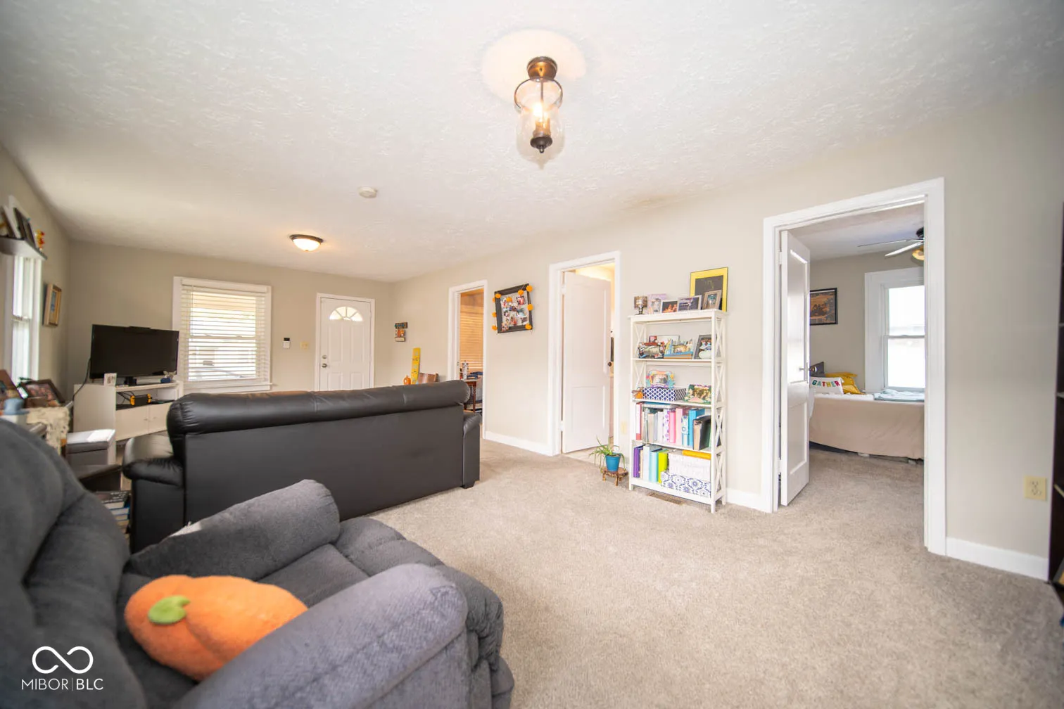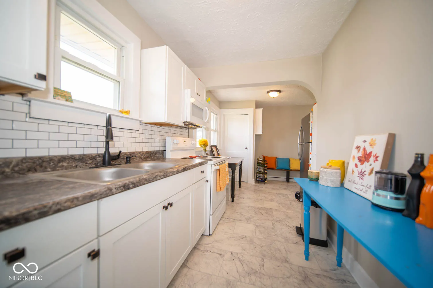 Check out this cozy nest, perfect for settling down or launching your next big adventure! This freshly updated home features two comfortable bedrooms with an updated bathroom to share. The kitchen boasts shiny white cabinets and a quaint breakfast area. Step into the vast great room to stretch out, relax, or have joyful gatherings. The covered front porch invites you to enjoy tranquil mornings with a cup of coffee or relax with a book, while the vast backyard is a canvas waiting for your imaginative touches. Featuring a mini barn for extra storage and an open patio, it’s perfect for summer barbecues or a safe play haven for kids and pets alike. Laundry facilities are located in the basement – making wash day a breeze. This unfinished space has many possibilities – a home gym, an office, and storage space. Living here means you’re moments away from the thrills of Speedway, yet tucked away in a peaceful residential setting-a blend rarely found! It’s not just a house; it’s your potential home sweet home, complete! Come by and see why this little gem should be your next big move!