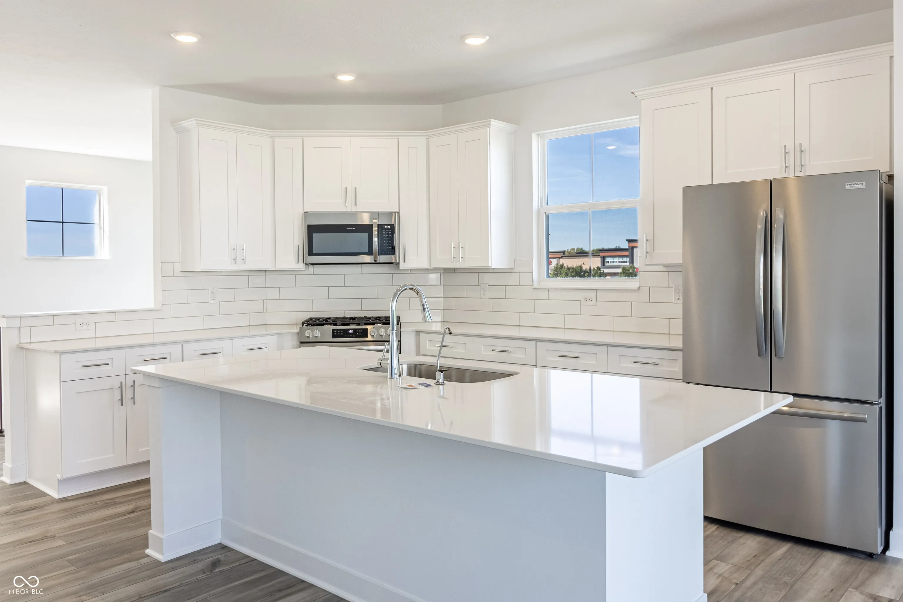 Spanning a generous 2,240 square feet, this townhouse boasts a thoughtfully designed layout featuring three spacious bedrooms and four bathrooms, providing ample space for family and guests. Step inside to discover the grandeur of high ceilings and elegant hardwood floors that flow throughout the main areas, enhancing the open and airy ambiance. The heart of this home is the exquisite kitchen, outfitted with top-of-the-line appliances including a sleek gas range. Granite countertops, a central kitchen island, and a vibrant open plan make this space perfect for both intimate dinners and large gatherings. Adjacent, the great room invites relaxation with its warm fireplace ideal for cold Indiana winters. The upper level houses a luxurious master suite, complete with an en suite bathroom, walk-in closet, and a private balcony. Each bedroom is a sanctuary with its own bathroom, ensuring privacy and comfort for all. The loft offers additional flexible space, perfect for a home office or cozy reading nook.