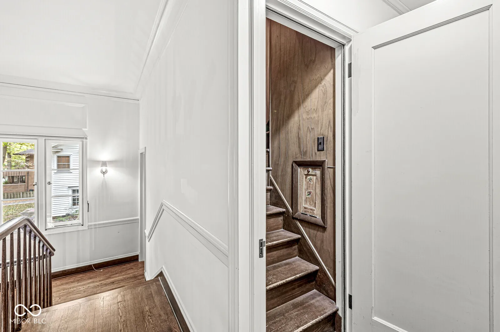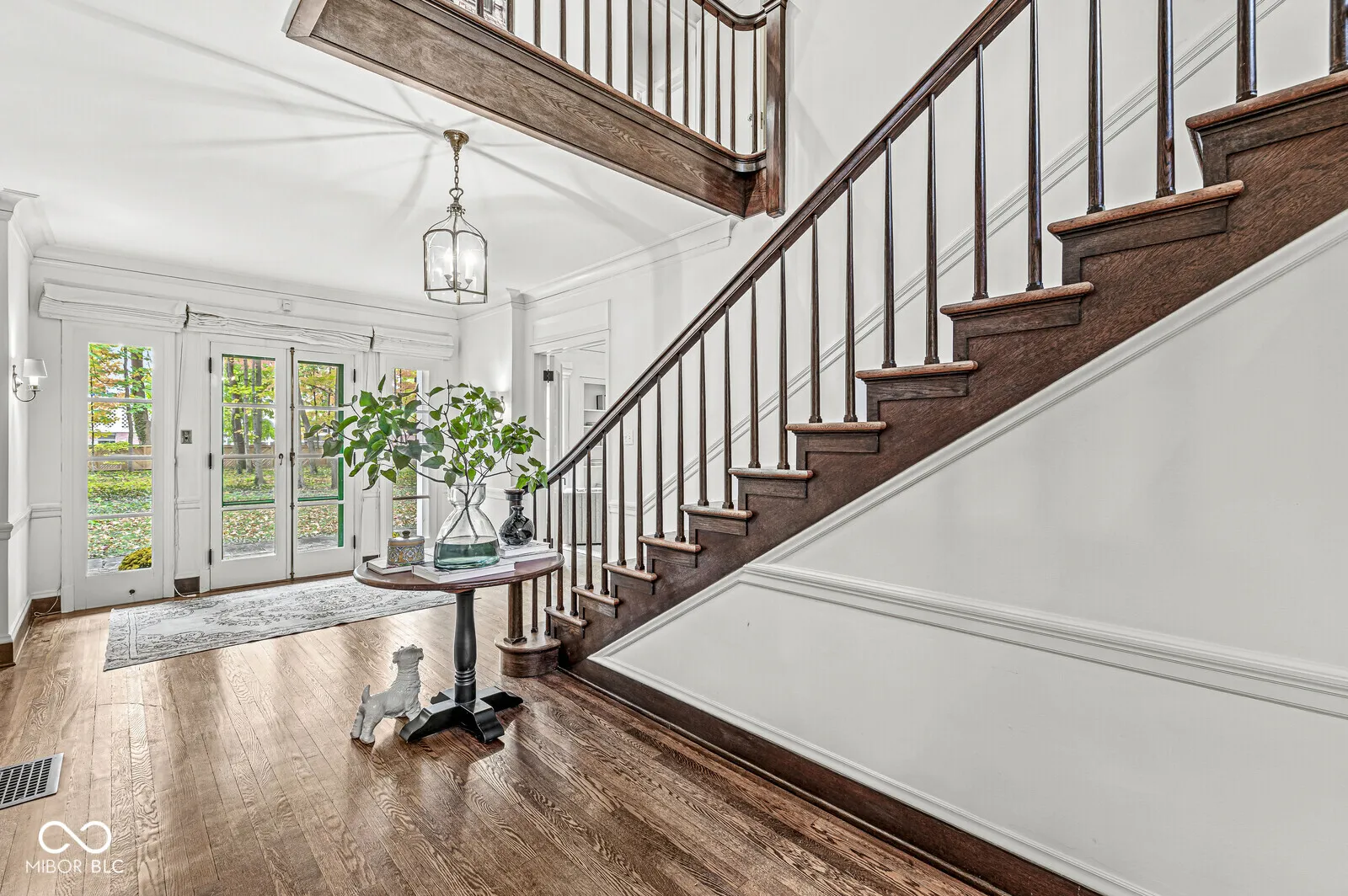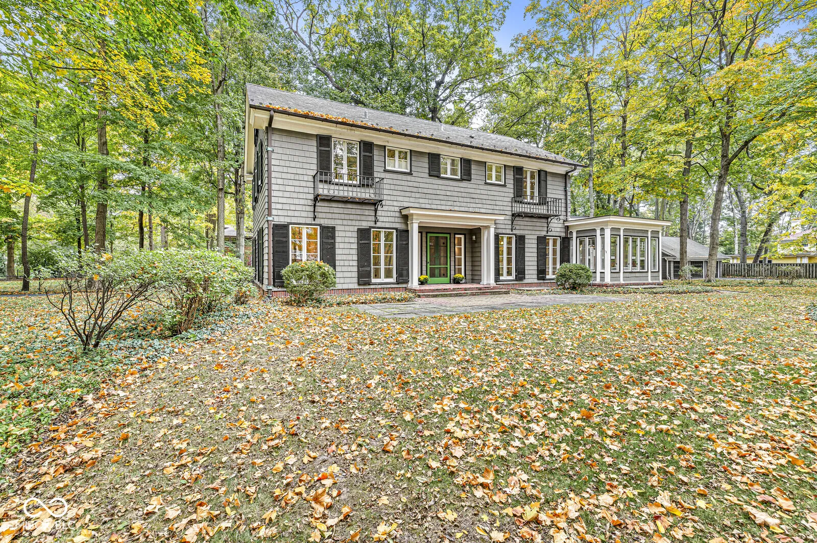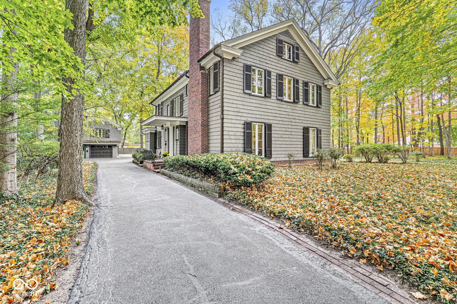 The Fesler-Greenleaf-Waller House is a significant Meridian-Kessler property set on a rare wooded lot. The house (c.1918) was designed by noted architect Robert Frost Daggett, Sr. Daggett was responsible for the Indianapolis Athletic Club, the J.K. and Eli Lilly homes on Sunset Lane, and several buildings at Purdue and Eli Lilly & Co. 4035 North Pennsylvania features a graciously-proportioned Colonial Revival main house with five bedrooms. Quality details include lovely herringbone hardwood floors, solid brass fittings, working shutters, slate roof, multiple French doors, and other elements one expects in the larger area homes. Utilizing a center hall floorplan, the main floor contains the very large living and dining rooms, kitchen, butler’s pantry, and a large sunroom/family room. Front and back stairs lead to the second floor with four bedrooms and three full bathrooms. The fifth bedroom is found on the third floor. The basement, with its high ceilings, presents an opportunity for even more living space. A separate carriage house apartment offers two bedrooms and an eat-in kitchen. Two of the four garage bays have been converted to a substantial art studio, but could be reverted. Built and owned by members of the Marmon family (the Marmon Wasp was the first car to win the Indianapolis 500) for most of its life, the house has played its part as a center of the Indianapolis arts community through each of its three owners. The property is not divisible and will be protected by an Indiana Landmarks easement, though allowances for playsets, basketball goals, and architecturally-correct additions may be made. The furnace & A/C were replaced in 2023.