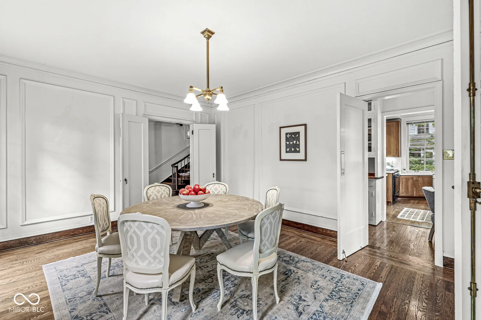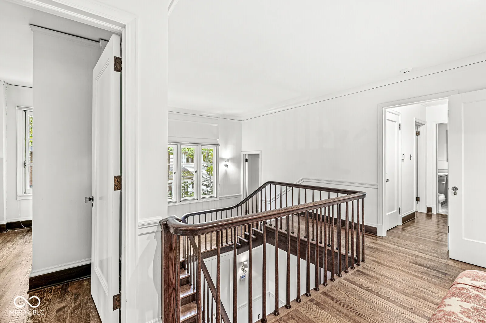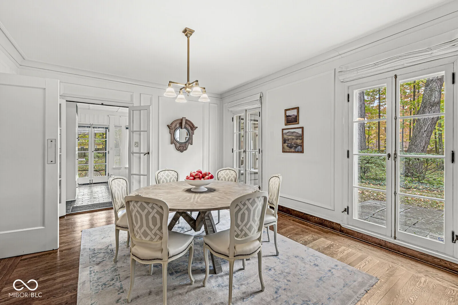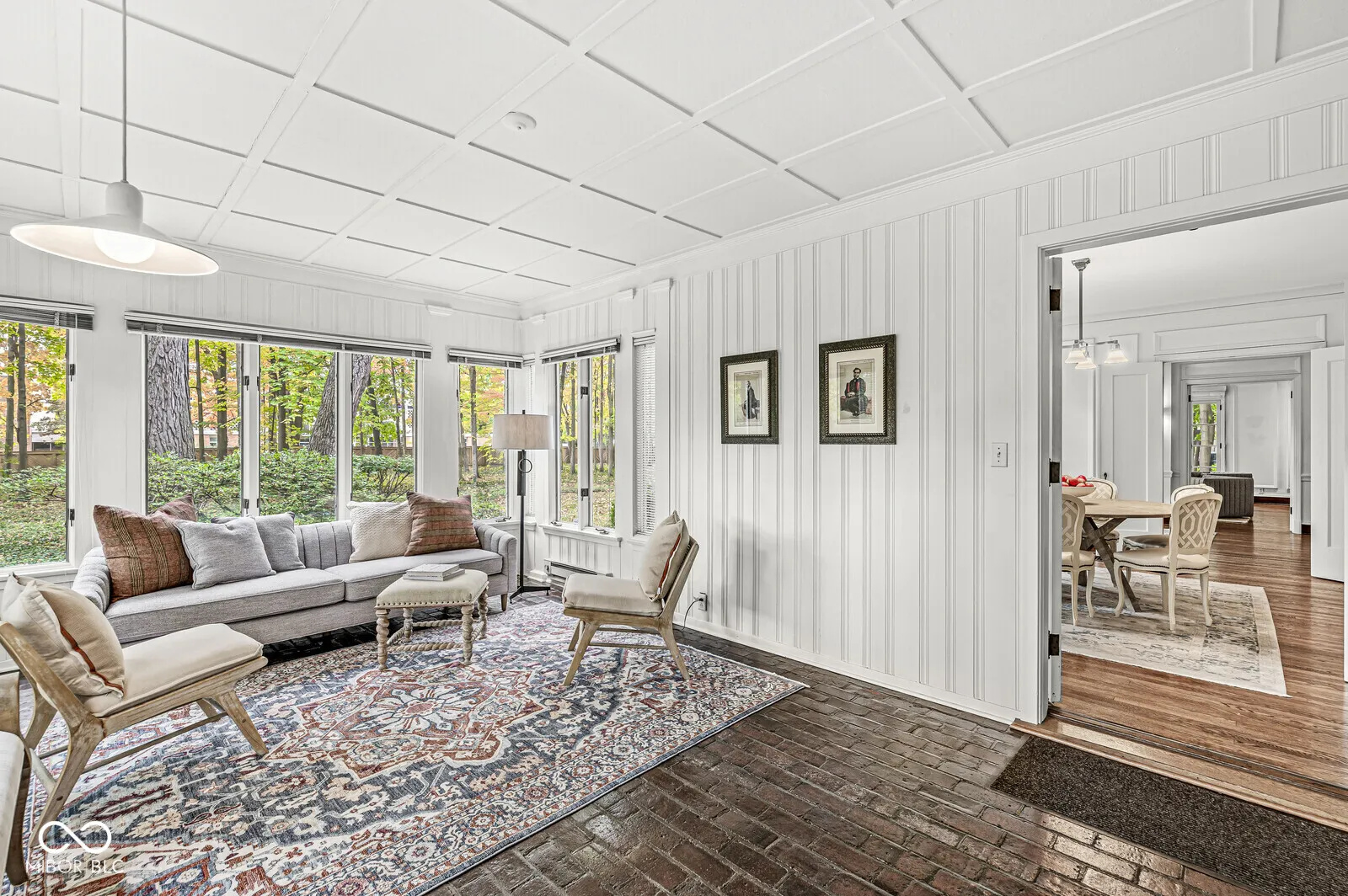 The Fesler-Greenleaf-Waller House is a significant Meridian-Kessler property set on a rare wooded lot. The house (c.1918) was designed by noted architect Robert Frost Daggett, Sr. Daggett was responsible for the Indianapolis Athletic Club, the J.K. and Eli Lilly homes on Sunset Lane, and several buildings at Purdue and Eli Lilly & Co. 4035 North Pennsylvania features a graciously-proportioned Colonial Revival main house with five bedrooms. Quality details include lovely herringbone hardwood floors, solid brass fittings, working shutters, slate roof, multiple French doors, and other elements one expects in the larger area homes. Utilizing a center hall floorplan, the main floor contains the very large living and dining rooms, kitchen, butler’s pantry, and a large sunroom/family room. Front and back stairs lead to the second floor with four bedrooms and three full bathrooms. The fifth bedroom is found on the third floor. The basement, with its high ceilings, presents an opportunity for even more living space. A separate carriage house apartment offers two bedrooms and an eat-in kitchen. Two of the four garage bays have been converted to a substantial art studio, but could be reverted. Built and owned by members of the Marmon family (the Marmon Wasp was the first car to win the Indianapolis 500) for most of its life, the house has played its part as a center of the Indianapolis arts community through each of its three owners. The property is not divisible and will be protected by an Indiana Landmarks easement, though allowances for playsets, basketball goals, and architecturally-correct additions may be made. The furnace & A/C were replaced in 2023.