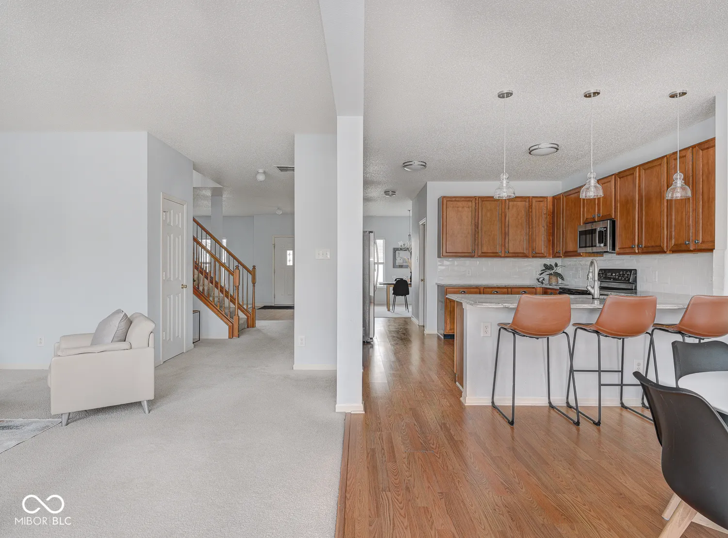 If you’re feeling cramped and looking to upgrade to a more spacious home, this nearly 4,500 sq. ft. beauty in Brownsburg is the perfect solution! Located in the well-established Branches, this property offers easy access to I-74 and Eagle Creek, as well as neighborhood amenities such as a pool, playground, and walking trail. Inside you’ll be blown away by not only the sheer size, but the layout as well, which offers multiple separate living spaces both up and down for modern family living. Kitchen features granite countertops, butler’s pantry, and large breakfast bar. Loads of windows and an open concept throughout provides an airy feel and fills each room with natural light. 5th bedroom is connected to primary suite via stairwell – a unique arrangement – ideal for your nursery or ensuite office. Outside the large deck overlooks your oversized, fully fenced in yard, which backs up the community greenspace and ensures additional privacy. Brownsburg schools. With roof and mechanicals updated within the last 6 years, this stunning home will offer you peace of mind and room for your family to thrive for years to come!