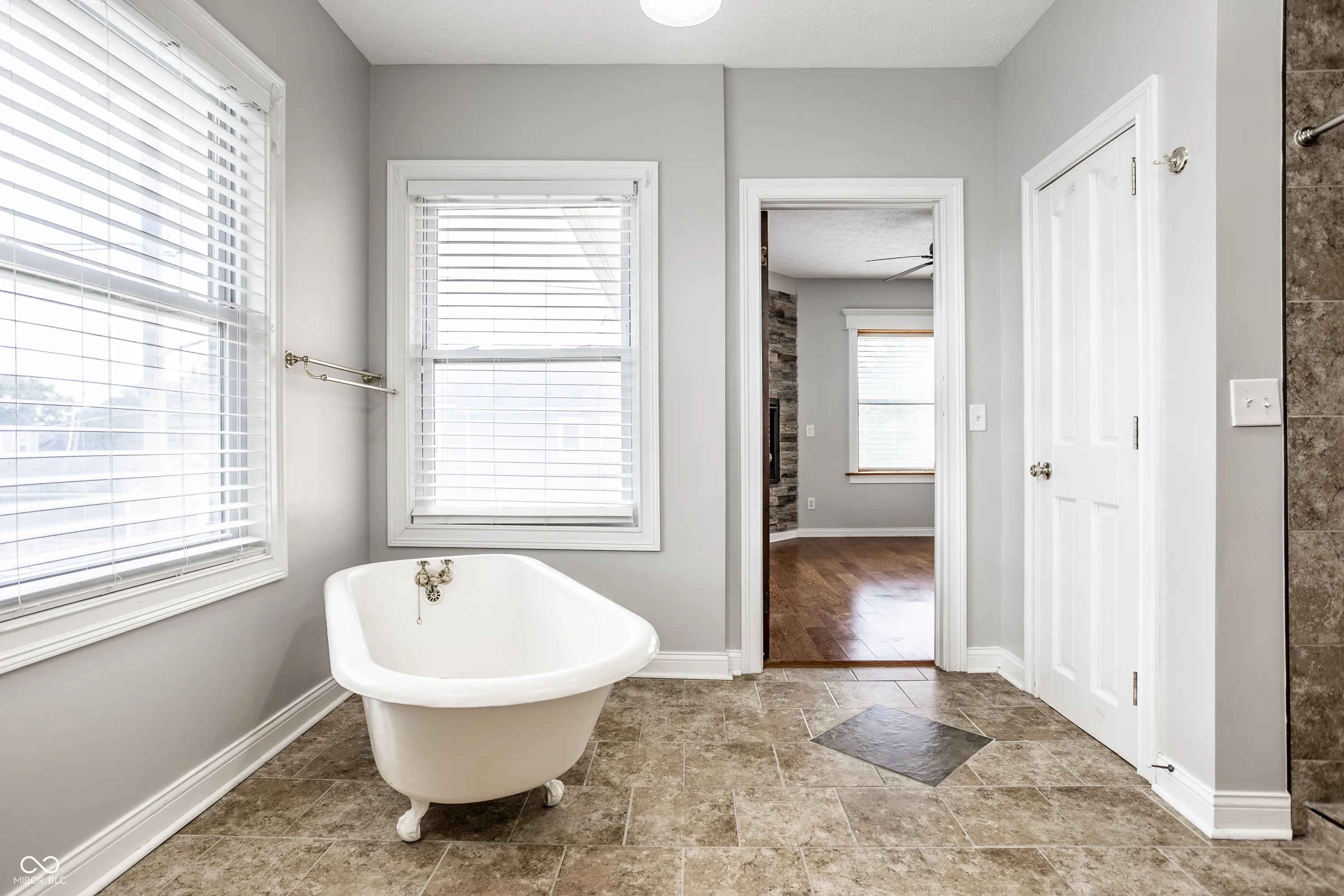 This beautiful home in Indianapolis’ near Northside neighborhood is perfectly positioned near everything! Minutes to downtown, Broad Ripple, Irvington, Butler Tarkington and so many wonderful pockets in our city. The expansive home is larger than one might expect at first glance with three stories and a large attached garage. The main level offers a unique, open circular floor plan with dual sided fireplace between an inviting kitchen and warm living room. Kitchen is well designed with attached breakfast room and large center island for easy prep and cooking. Main level also features a spacious office/bedroom, perfect for work from home or your favorite hobby. The second level includes a terrific primary suite with gorgeous bathroom with clawfoot tub and shower. Third level includes additional bedroom which could also function as bonus room or other hang out space with full bathroom. So many wonderful spaces inside this wonderful home it’s easy to love!