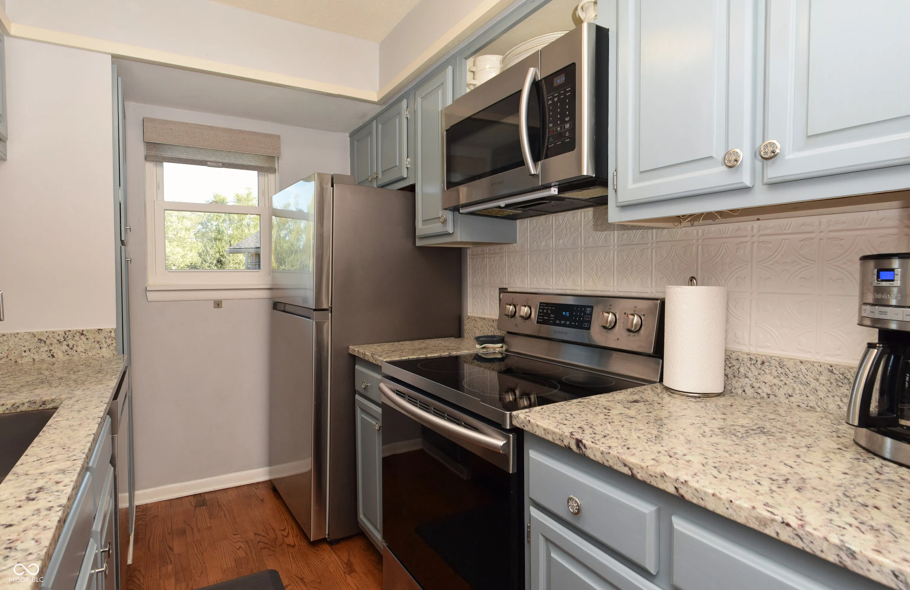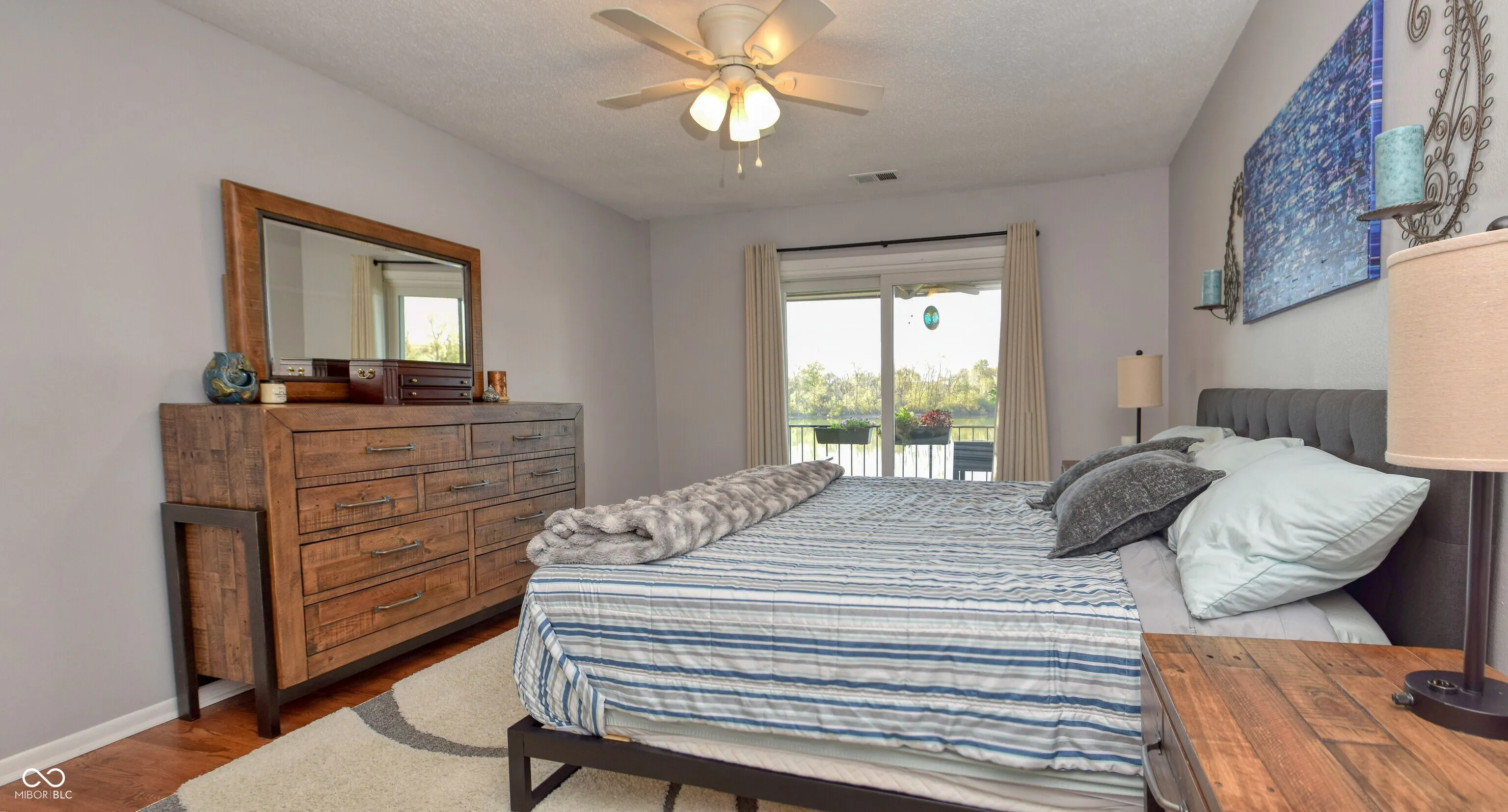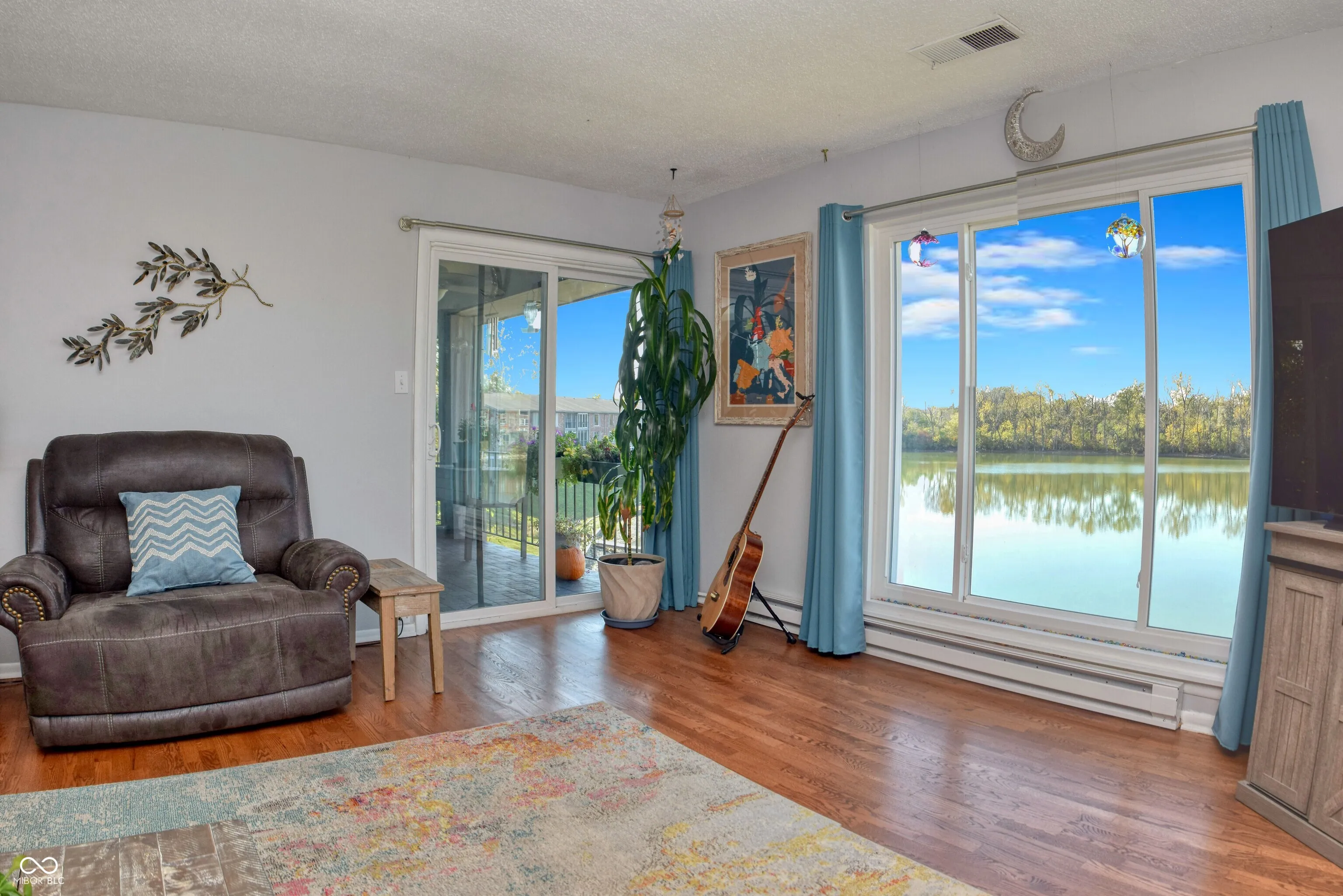 STUNNING lake views in this beautifully updated and immaculate home!! Open floorplan, large windows and gleaming hardwood floors create a modern day living experience! Oversized windows and sliding glass door recently replaced! Many other updates including stainless steel range/oven, stainless steel microwave oven, stainless steel refrigerator, stainless steel dishwasher, granite counter tops, pantry rolling shelves and custom doors, sliding barn door with full length mirrors on both sides, wi-fi thermostat, tiled kitchen backsplash, kitchen sink and faucet, reverse osmosis water system, water heater, light fixtures, window coverings and the list goes on! Enjoy morning coffee relaxing on the large tile-floored balcony (accessible from both the living room and primary bedroom) while enjoying breathtaking views of the lake! Gorgeous sunset views will help you unwind. Nickel Plate Trail just around the corner! Conveniently located near Broad Ripple and Downtown Indy!