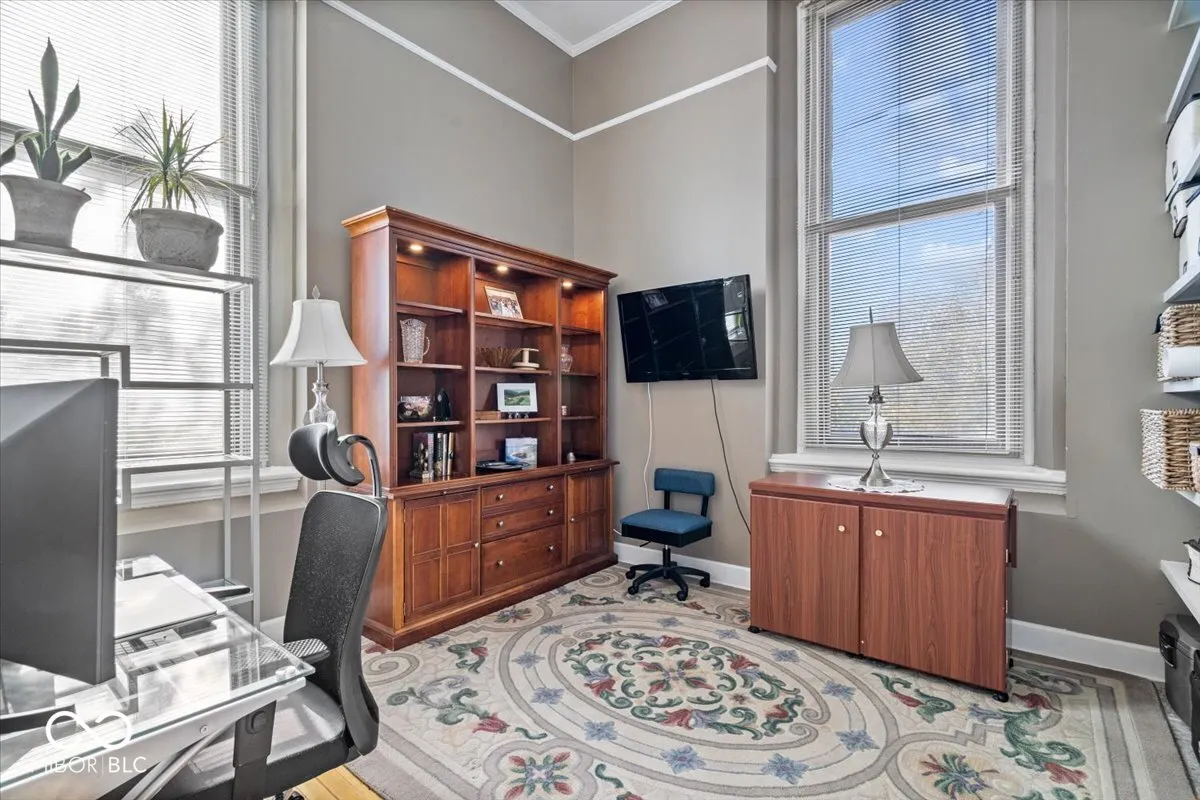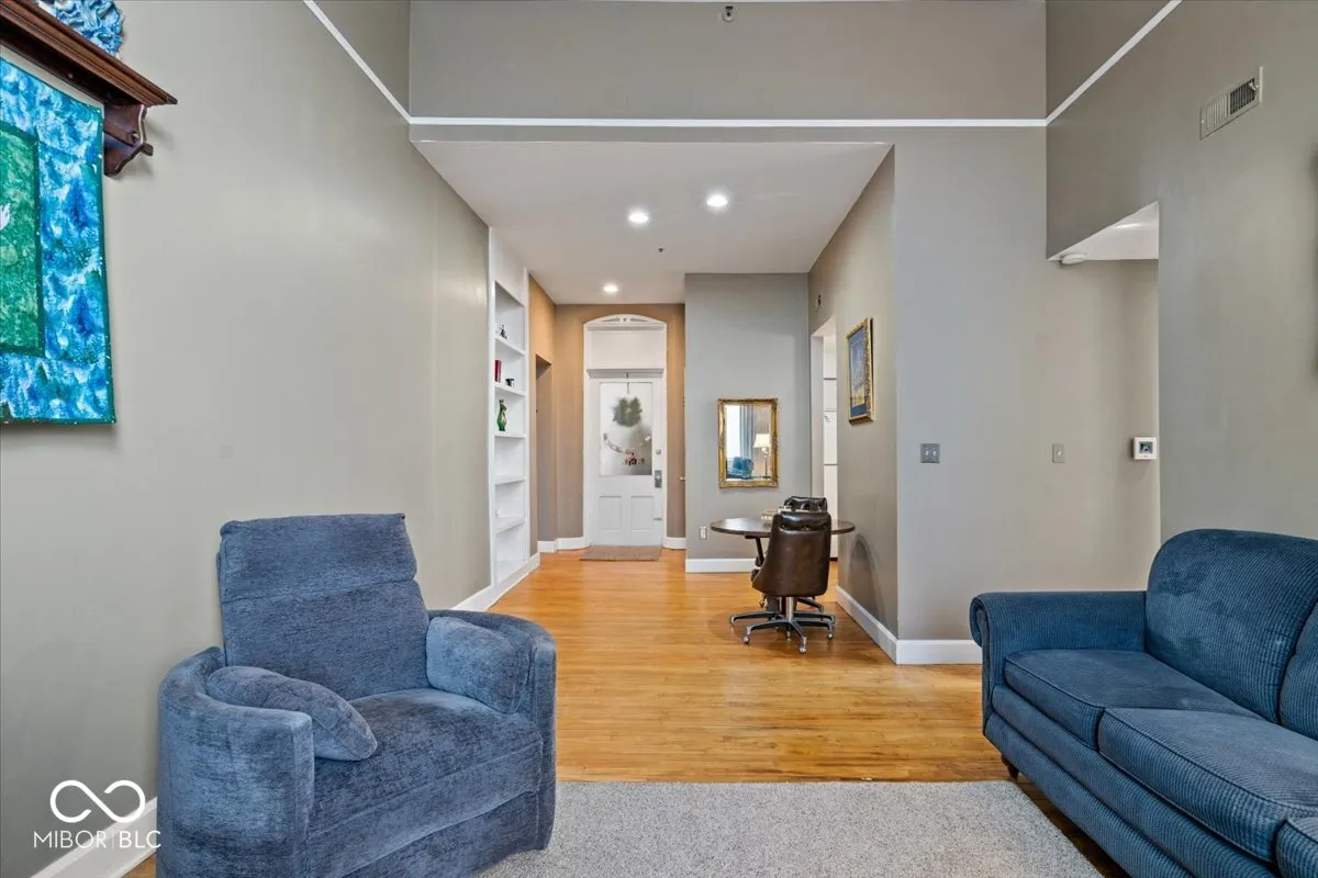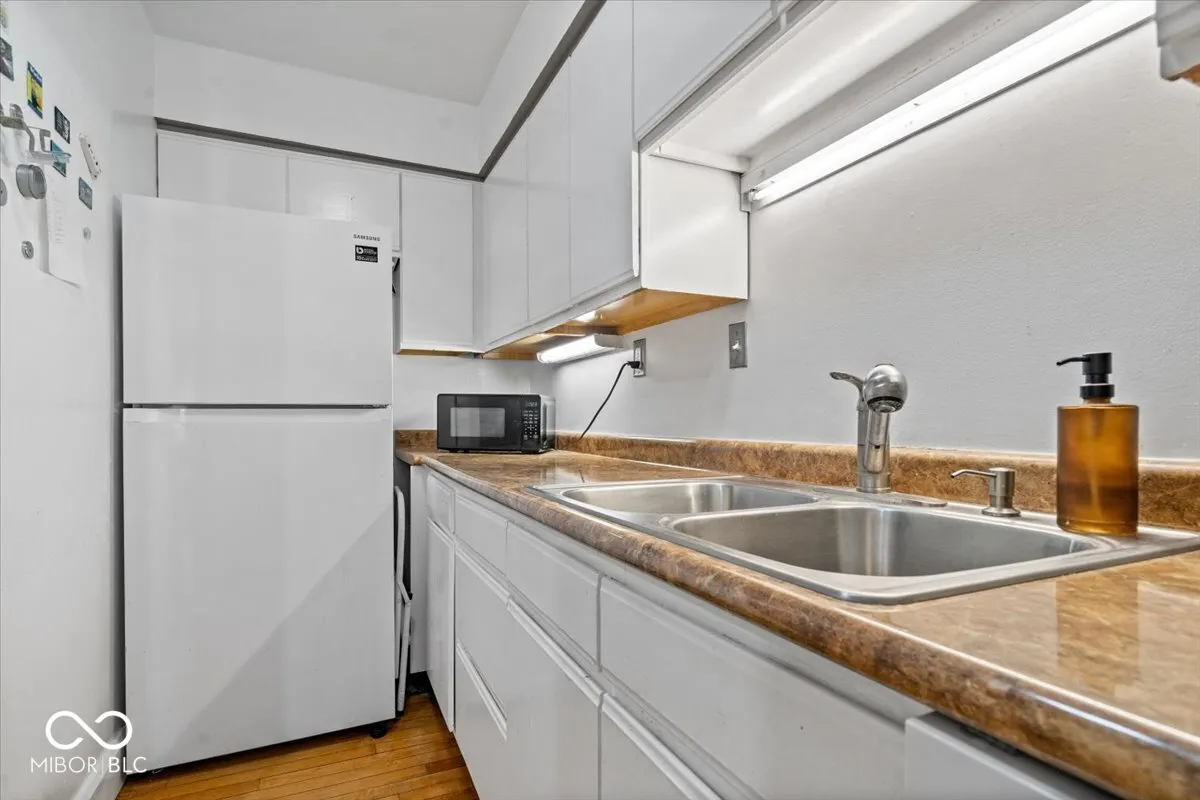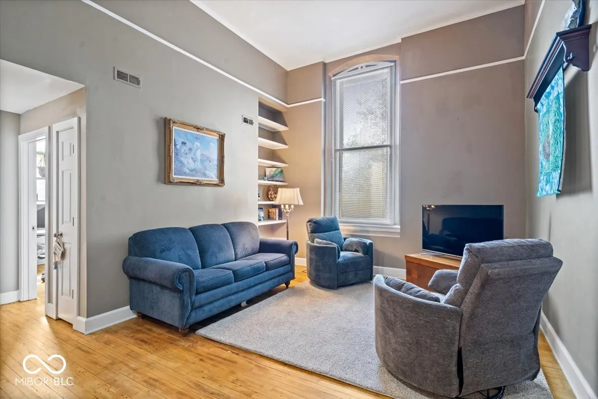 Discover urban living at its finest in this delightful 2-bedroom, 2-bath condo located in Fletchers Place near Fountain Square! Walking distance to Lucas Oil Stadium, Bankers Life Fieldhouse, Indy’s Cultural Trail, Eli Lilly, the IndyGo bus line, and so much more! Located in a historic landmark building with elevator access, this second floor home is bathed in natural light with a southwest exposure. You’ll be captivated by the exquisite original maple flooring and soaring 13-foot ceilings that create an airy ambiance, with open dining and living areas for everyday enjoyment and entertaining. Compact kitchen and separate laundry features brand new dishwasher and dryer with 5yr warranties, a 2 year old water heater, 6-yr-old furnace, refrigerator, and electric stove, and a dependable Maytag washer. Condo includes a detached garage unit with built in storage, new sidewalks to garage, and a designated parking space in a gated lot. The HOA coverage for water, trash, roofing, exterior maintenance, landscaping, and snow removal, provides a low-maintenance owner lifestyle. Seller is offering a limited home warranty for the new owner.