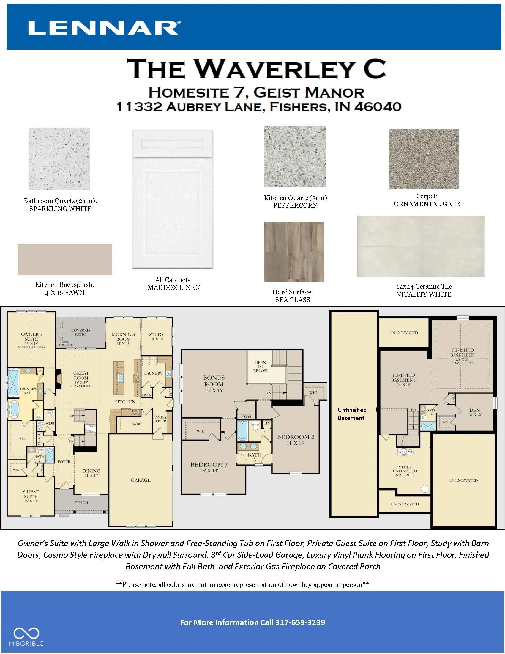Geist Manor, located in Fishers, IN is offering new single-family. Residents enjoy a variety of onsite amenities, including a pool, pool house and playground. Geist Manor is just a short drive from local attractions including Geist Reservoir, Geist Park and Thorpe Creek Natural Area. Hamilton Town Center is just a short drive away for shopping and dining. Providing the luxury of space, this expansive two-story home delivers modern elegance and comfort. Upon entry is a formal dining room that flows into a cohesive open layout with a covered patio, ideal for entertaining family and friends alike. Conveniently situated on the main floor is the lavish owner’s suite with a spa-style bathroom and oversized walk-in closet. Throughout the home are three secondary bedrooms with direct access to a full bathroom, a private study, upstairs bonus room and three-car garage for versatile uses. The Waverley also includes a basement including an extra bedroom and bathroom for both space, convenience and storage. *Photos/Tour of model may show features not selected in home.