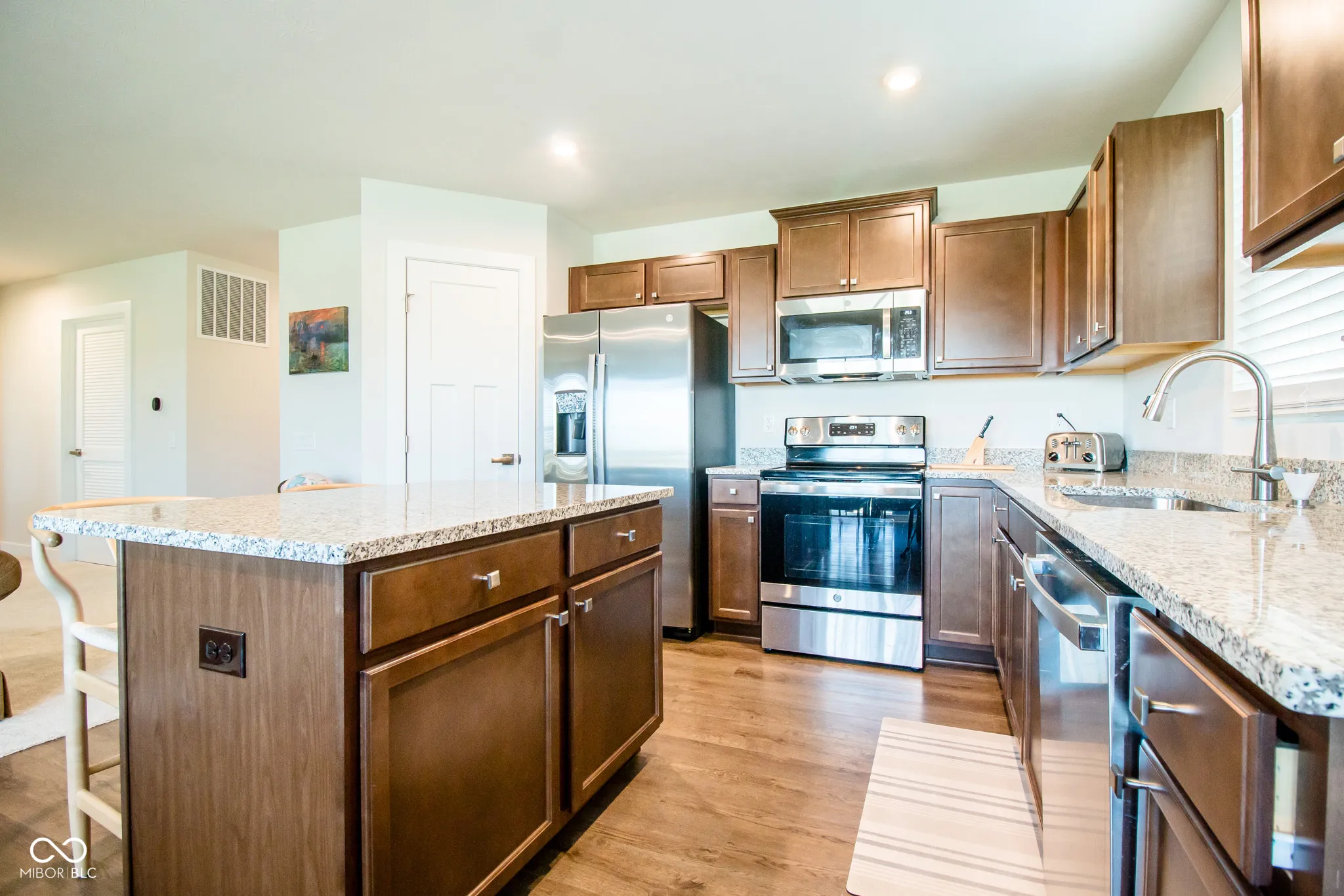 Why wait to build when you can have this practically new 2024 ranch in Briar Creek Villas! With 3 bedrooms and 2 full bathrooms, this home comes fully furnished and ready to move in! Open concept with lots of natural light. The kitchen features granite countertops, stainless steel appliances, a pantry and large center island. Spacious primary bedroom with ensuite bathroom that includes dual sinks, full shower with bench and a walk-in closet. Two additional bedrooms are separate from the primary, and great for guests or an office space. Great size laundry room with water softener, tankless water heater, washer and dryer all included. Enjoy the back patio with no backyard neighbors. Great closet and storage space throughout the home. Wide hallways and doorways throughout for easy access. 2 car attached garage has a bump out for additional storage. Low-maintenance neighborhood with snow removal, landscaping and lawn care included in the quarterly HOA dues.