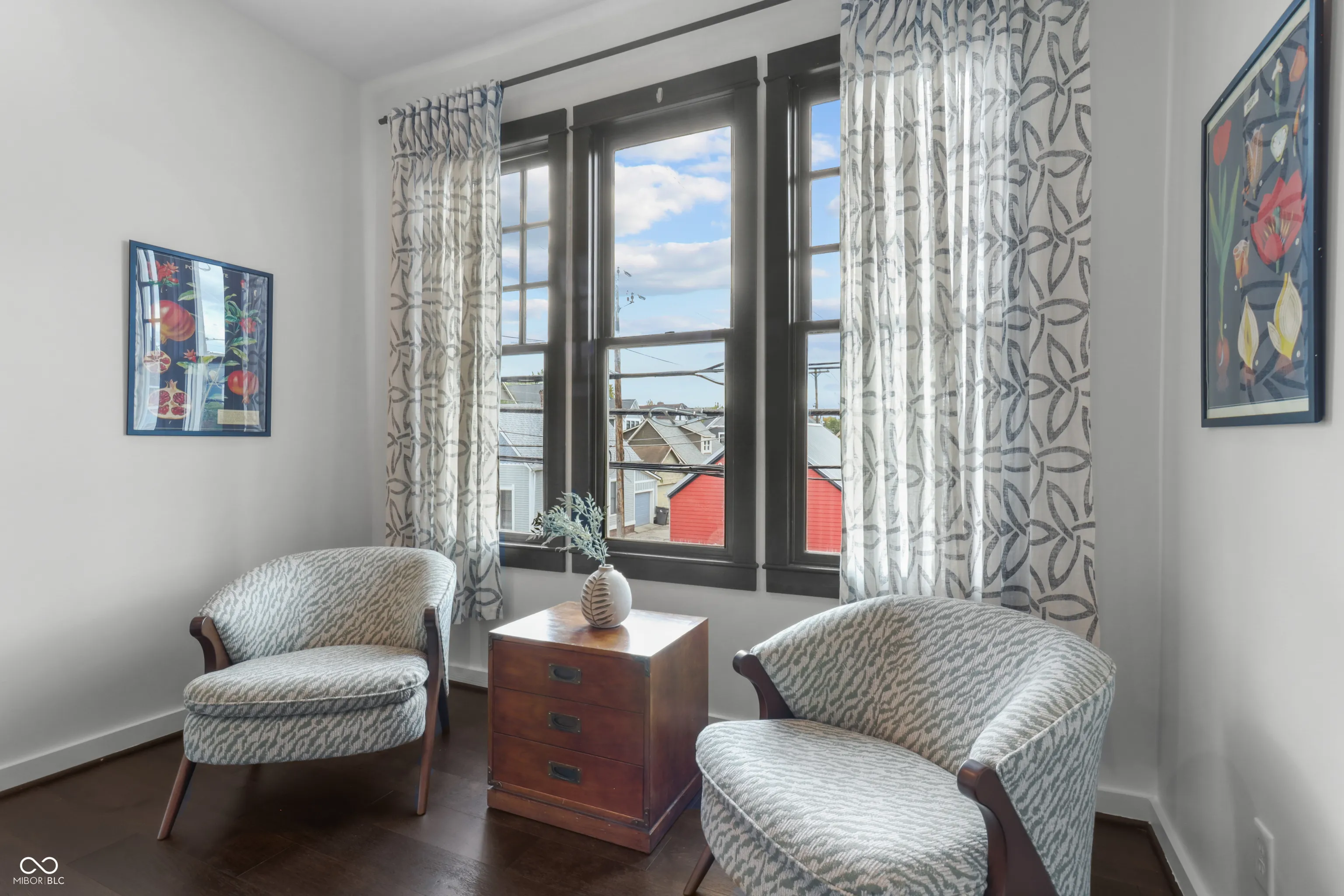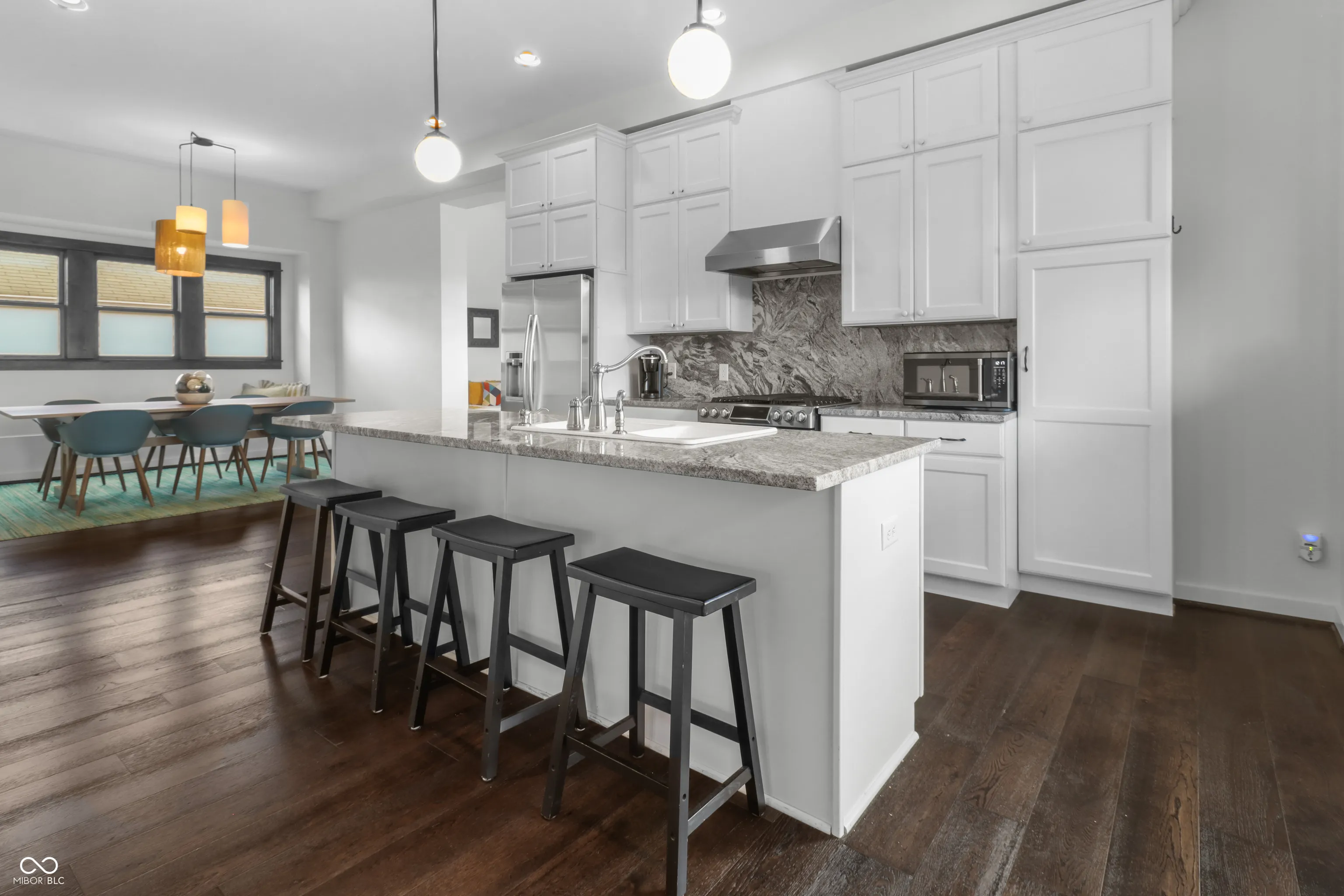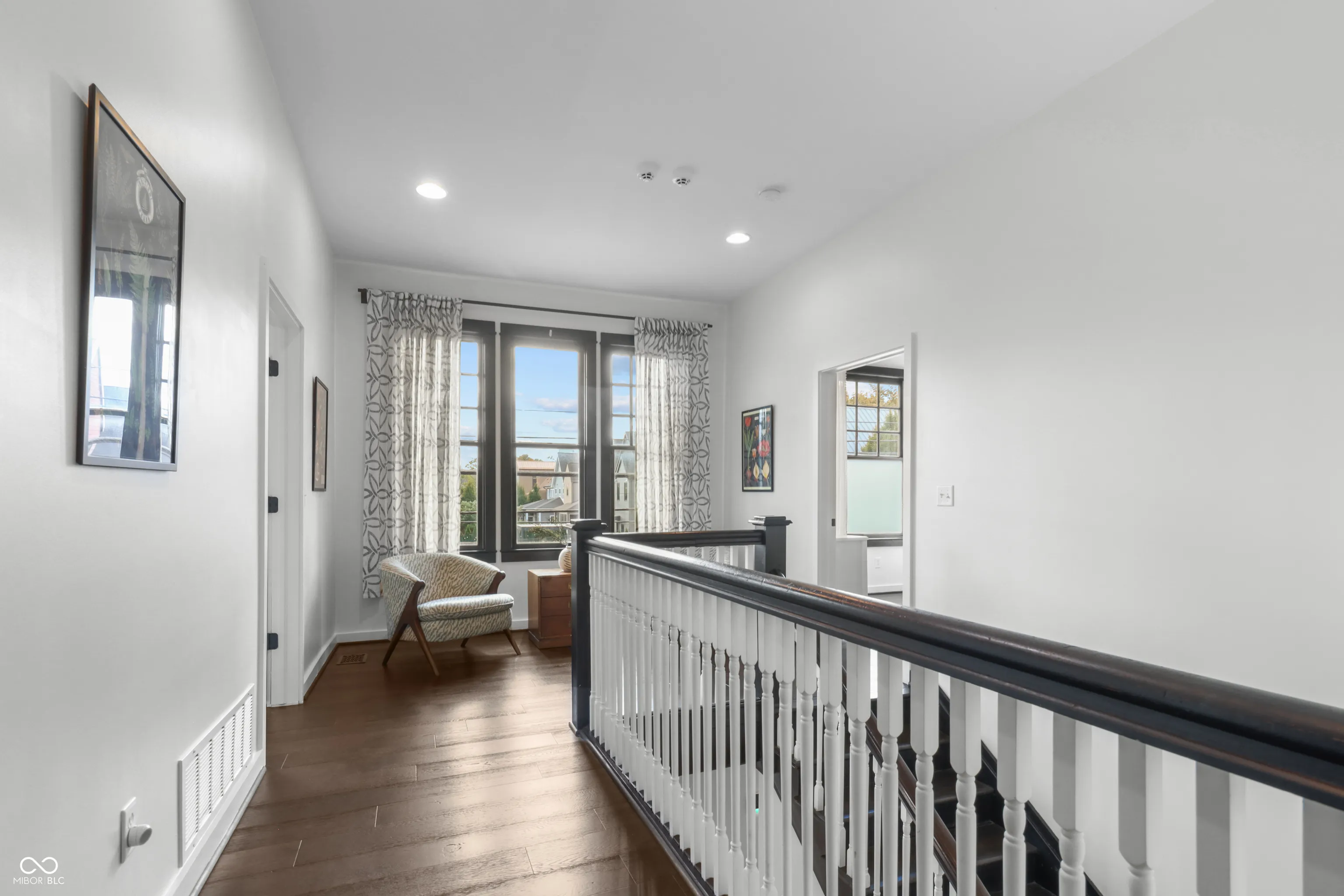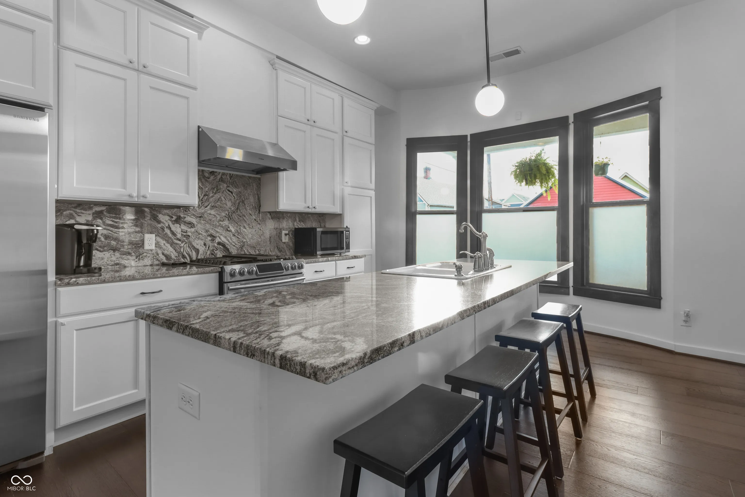 Located in one of Indy’s most sought-after downtown areas and just minutes from Mass Ave entertainment and restaurants, this beautifully renovated (2017) residence is a true gem. As you approach, a welcoming porch invites you to relax and enjoy the view of your hanging ferns and flowers during the warmer months. Inside, the main floor offers the perfect space for entertaining guests, featuring a cozy area ideal for hosting movie nights or book clubs. The gourmet kitchen is a chef’s dream, boasting granite countertops and a stunning backsplash, perfect for enjoying your morning coffee at the island or a meal in the charming dining area. Additionally, the main floor includes a versatile room that can serve as a private office or study, offering the seclusion needed for remote work or quiet reflection. The upper level features large bedrooms with ample space and a stunning skyline view. The primary bathroom is a spa-like retreat with a luxurious soaking tub and a massive walk-in closet. The unfinished attic provides a fantastic opportunity for instant equity, ready to be transformed into additional rooms or bathrooms. Situated on a beautifully designed corner lot, this home is in a prime location, offering both convenience and elegance. Don’t miss the chance to make this exceptional residence your own.