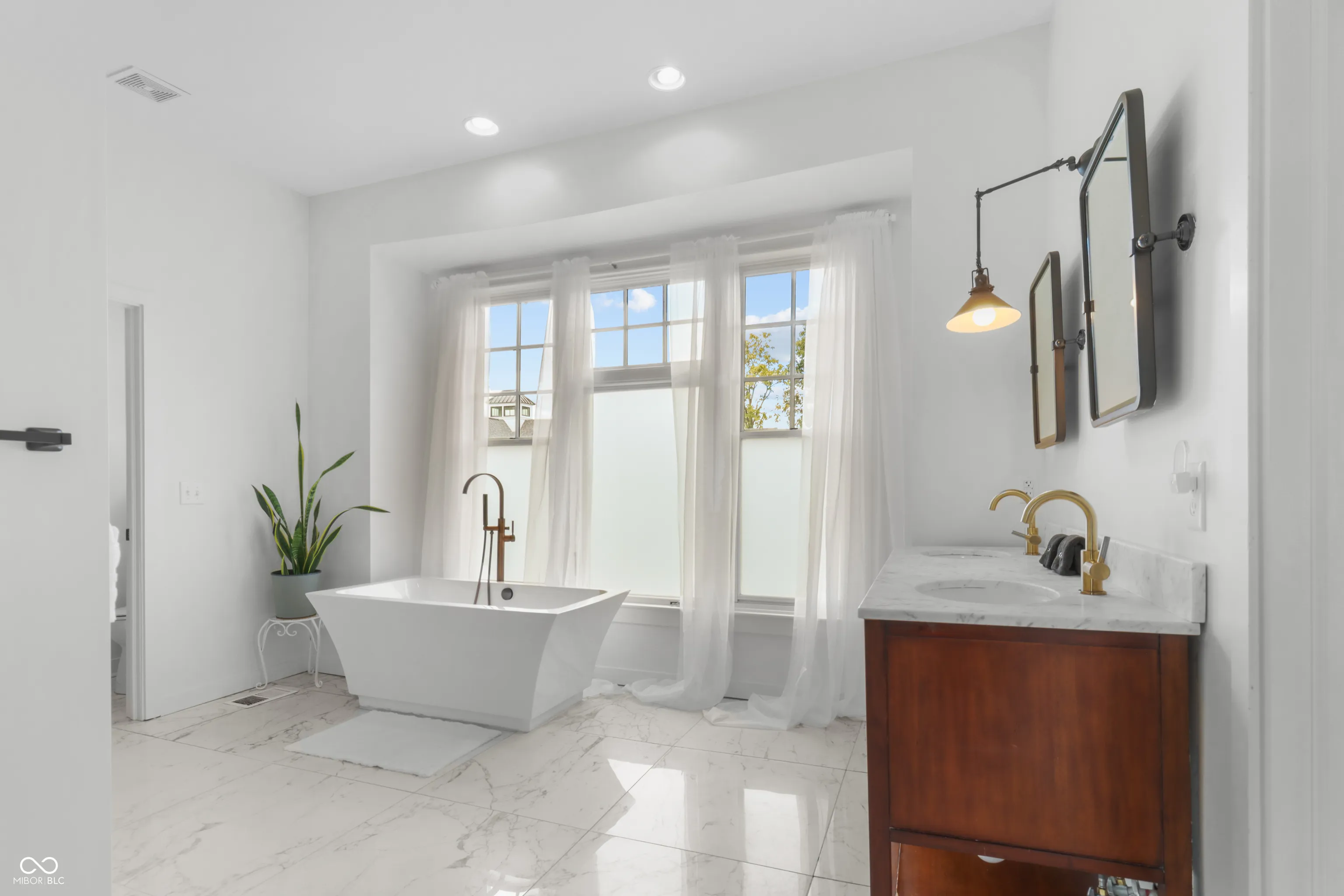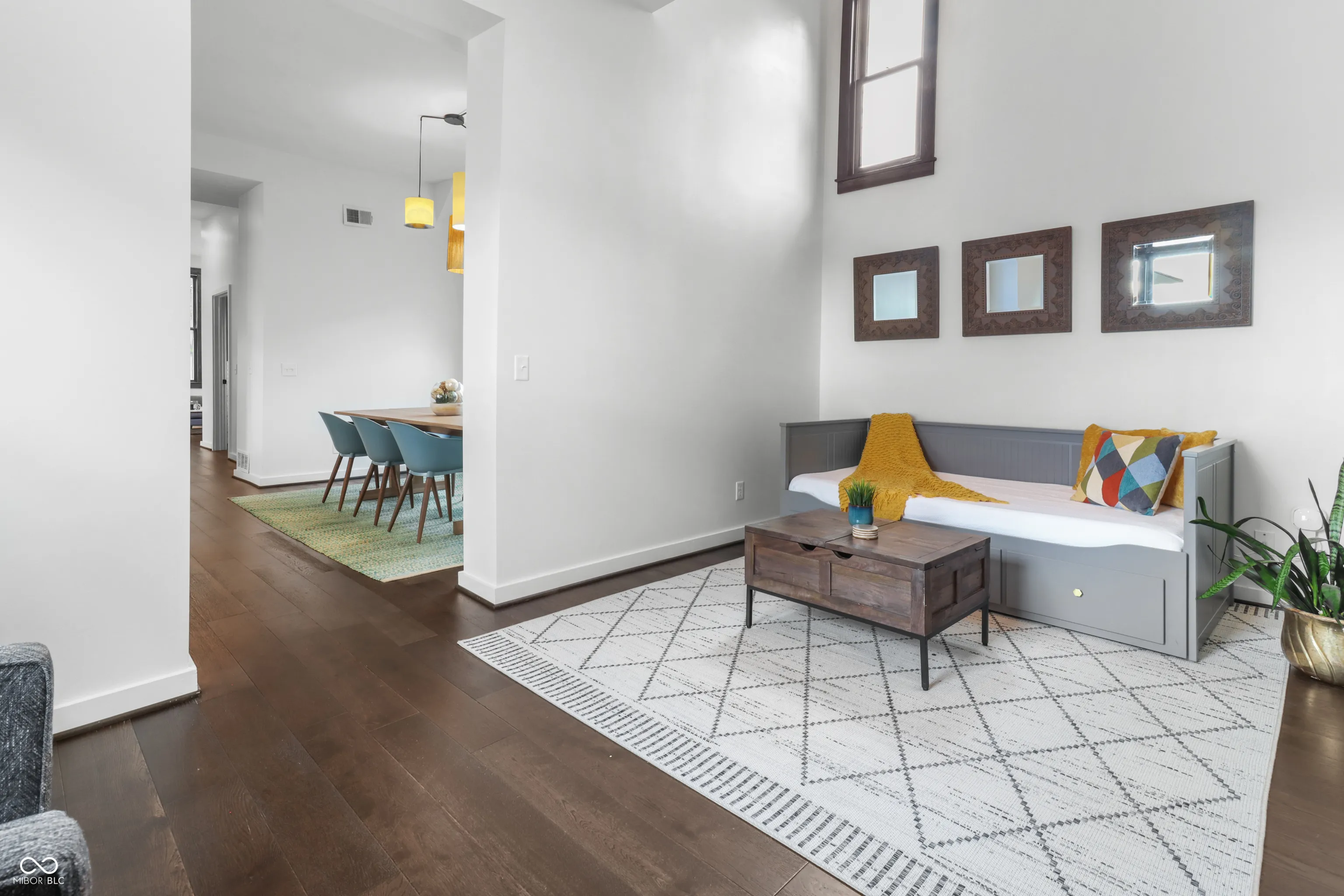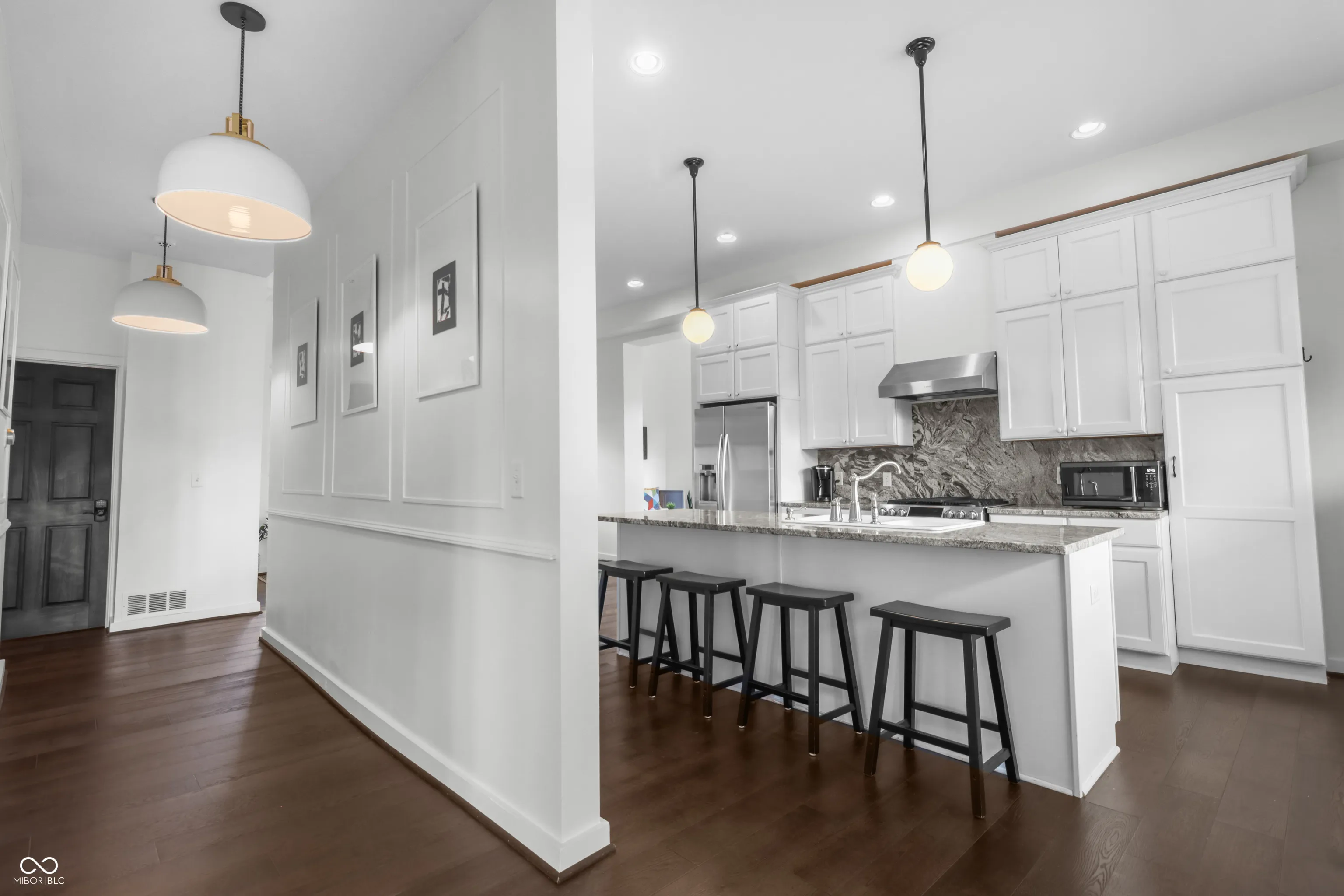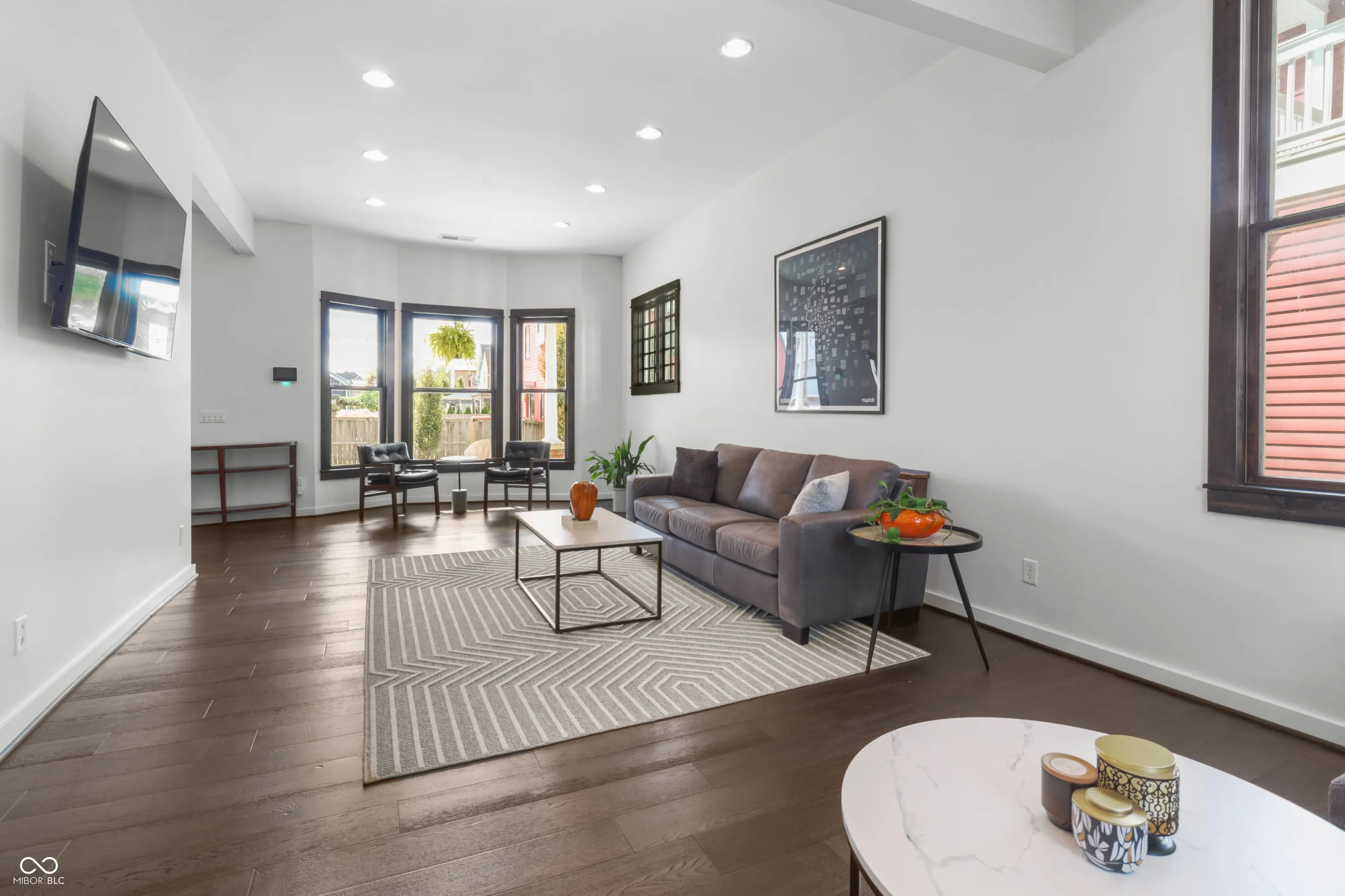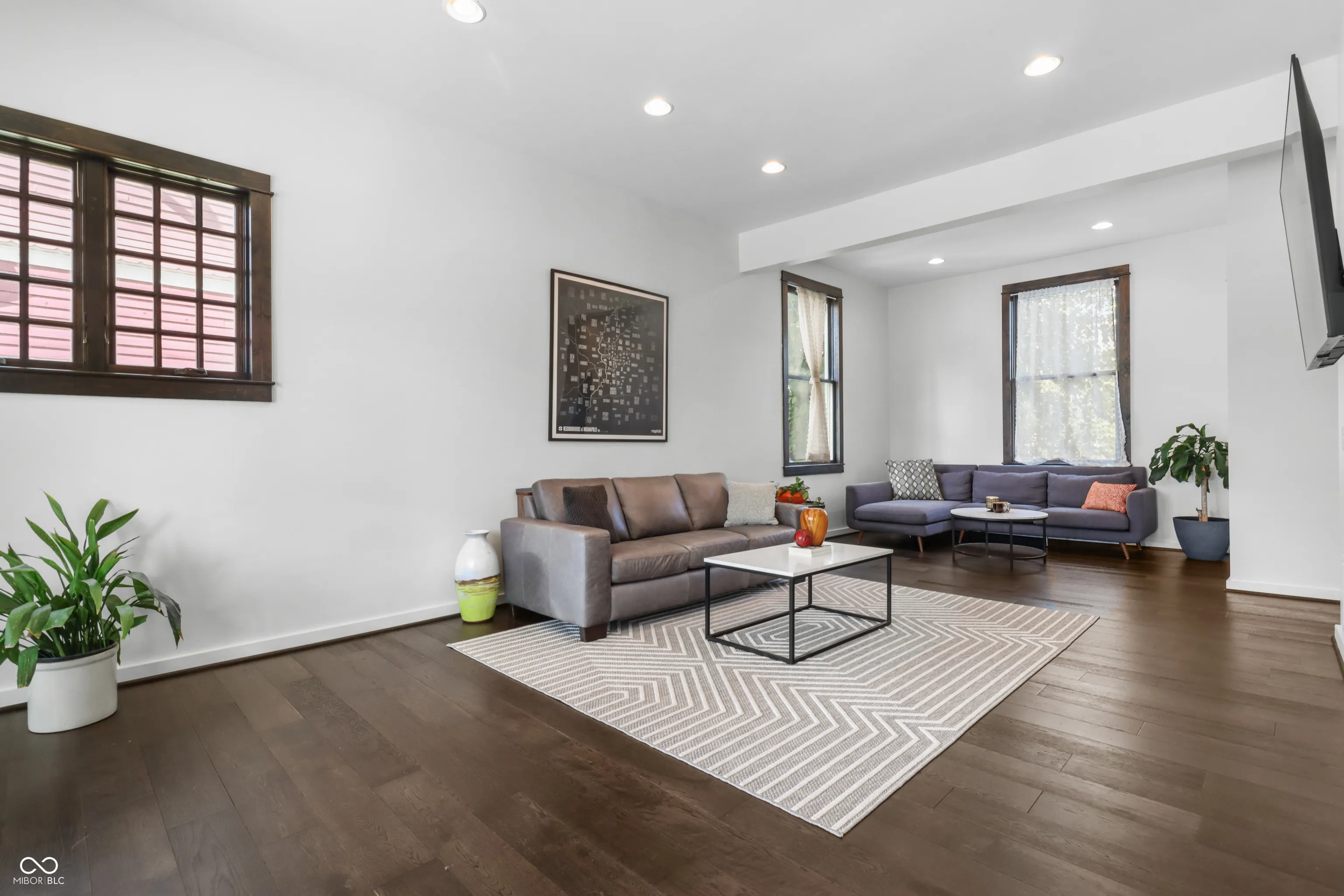 Located in one of Indy’s most sought-after downtown areas and just minutes from Mass Ave entertainment and restaurants, this beautifully renovated (2017) residence is a true gem. As you approach, a welcoming porch invites you to relax and enjoy the view of your hanging ferns and flowers during the warmer months. Inside, the main floor offers the perfect space for entertaining guests, featuring a cozy area ideal for hosting movie nights or book clubs. The gourmet kitchen is a chef’s dream, boasting granite countertops and a stunning backsplash, perfect for enjoying your morning coffee at the island or a meal in the charming dining area. Additionally, the main floor includes a versatile room that can serve as a private office or study, offering the seclusion needed for remote work or quiet reflection. The upper level features large bedrooms with ample space and a stunning skyline view. The primary bathroom is a spa-like retreat with a luxurious soaking tub and a massive walk-in closet. The unfinished attic provides a fantastic opportunity for instant equity, ready to be transformed into additional rooms or bathrooms. Situated on a beautifully designed corner lot, this home is in a prime location, offering both convenience and elegance. Don’t miss the chance to make this exceptional residence your own.