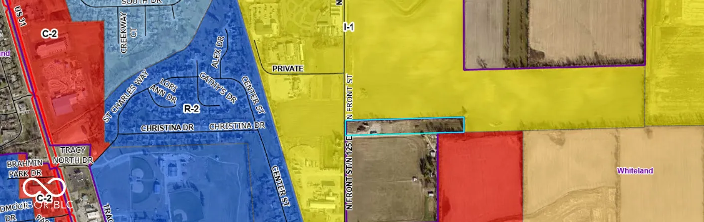 This 5 acre lot of agricultural land in Whiteland is located in a prime area for growth and expansion. The lot does contain three buildings and a gravel patch for parking. Neighboring and nearby properties are zoned industrial (I-1) and commercial, indicating significant potential. Please consult with the city and county regrading rezoning questions!