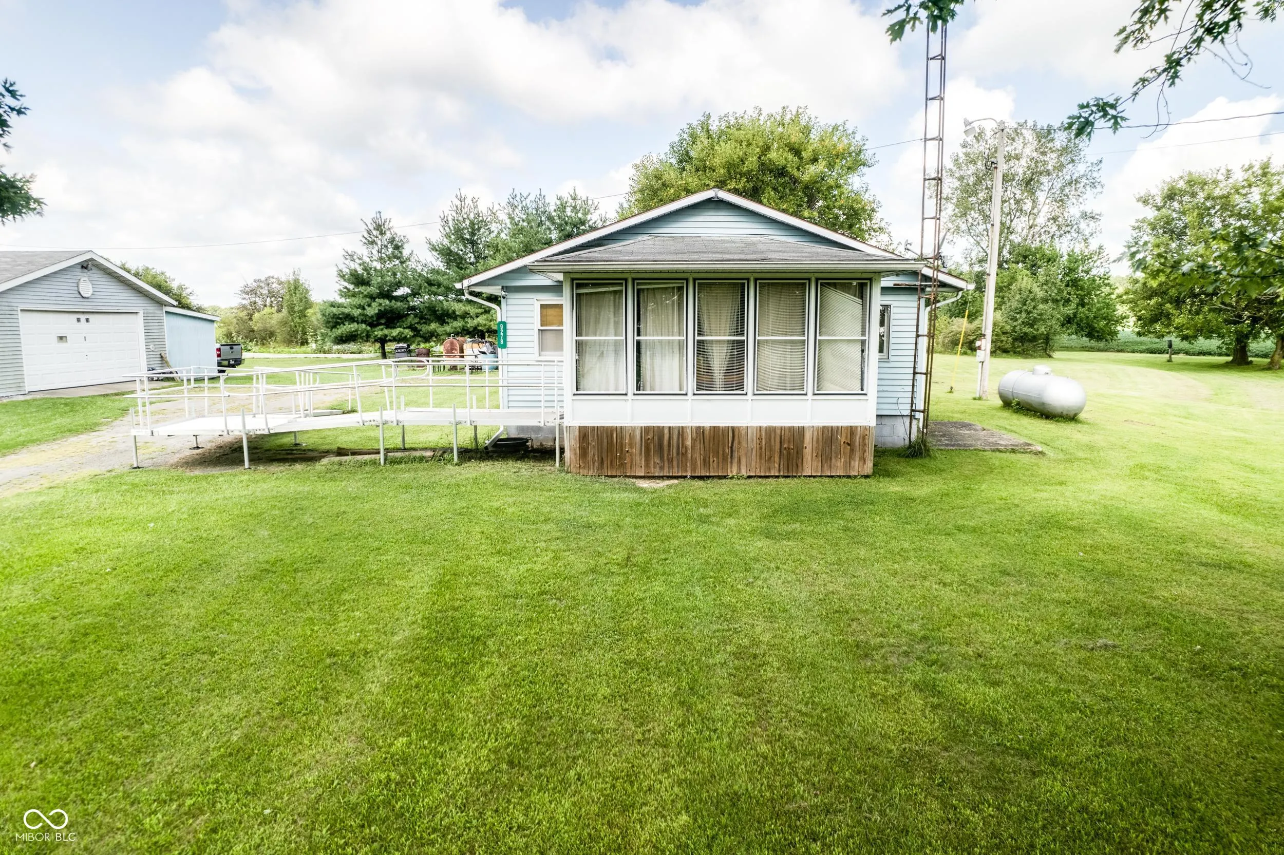 Welcome to this 3-bedroom, 1-bathroom home that sits on a generous 3.22-acre lot. This homes offers tranquility of country living. This home is set amidst mature trees and features a peaceful pond and a flourishing garden, offering a serene escape from the hustle and bustle of daily life. A large 2-car detached garage with attached storage provides ample space for your vehicles, tools, and recreational gear. The home includes a handicap accessible ramp to the enclosed screen-enclosed front porch. From the enclosed porch you enter the large living area. The kitchen features an abundance of cabinets, electric range and refrigerator. The dining area is off the kitchen along with a spacious office area. All 3 bedrooms are located at the back of the house. The laundry area is inside that can accommodate stackable or a side by side washer and dryer.