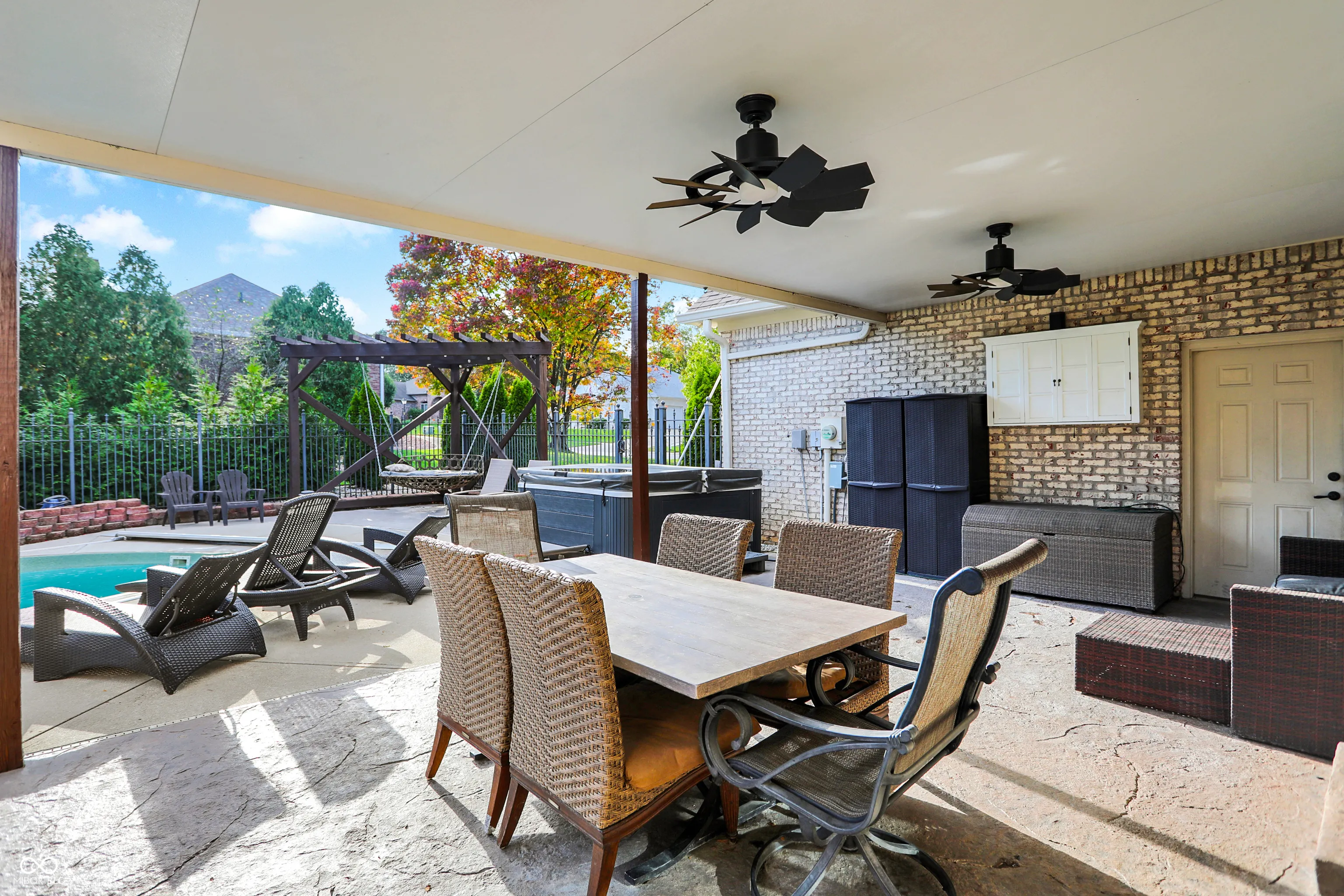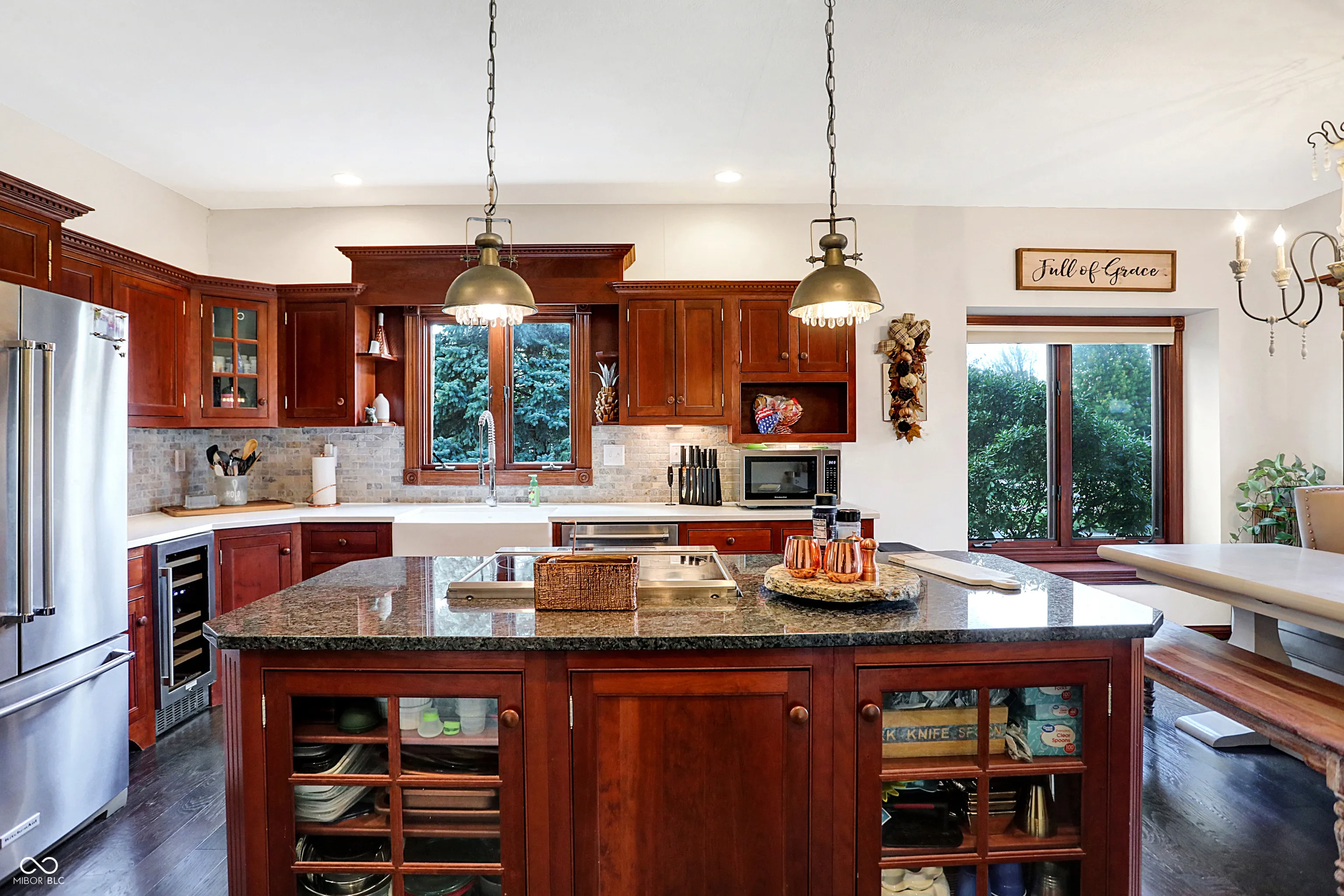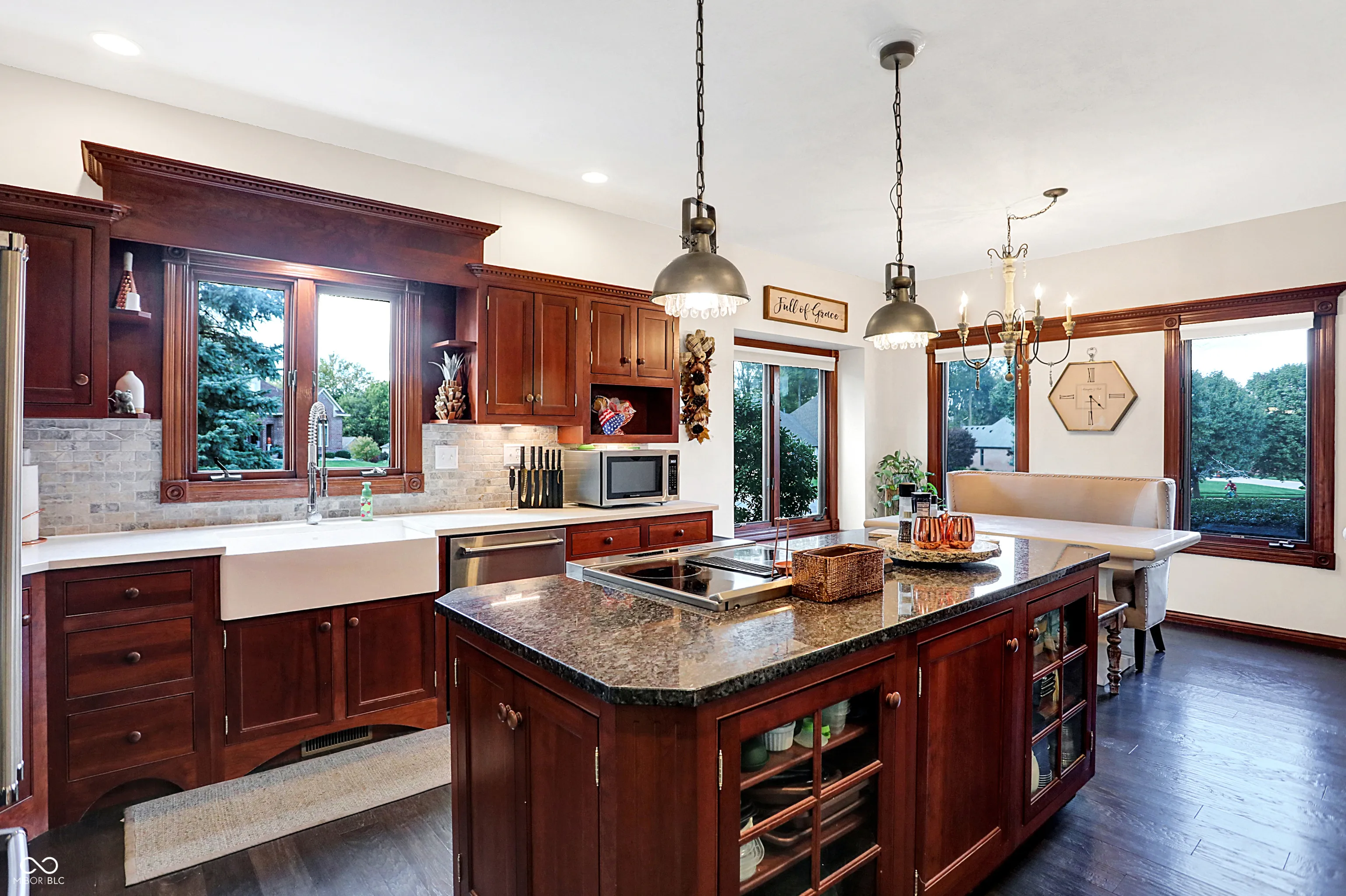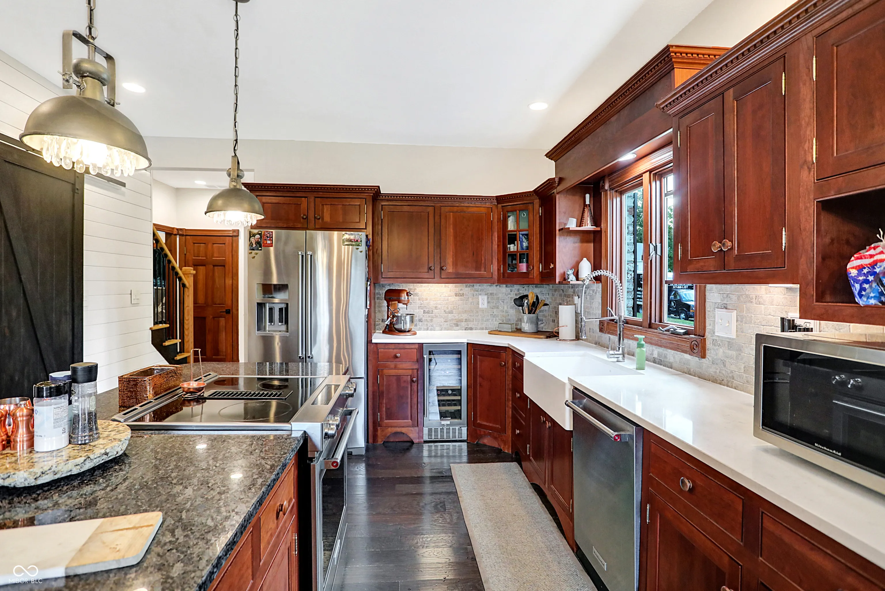 This stunning custom Cape Cod home, situated on an expansive elevated corner lot, offers an impressive in-ground pool and a wealth of high-end features. The charming covered porch welcomes you as you approach, setting the tone for the attention to detail found throughout. Upon entry, you’ll be captivated by the craftsmanship, with custom woodwork and crown molding adorning the main level. The spacious family room, featuring a gas fireplace, provides a cozy retreat for cool Indiana evenings. The kitchen is a chef’s dream, featuring custom cabinetry, high-end stainless steel appliances, a large center island, granite countertops, and an inviting breakfast nook. The main level also includes a stunning primary bedroom with a fully remodeled en-suite bathroom, a guest bedroom, a 13×24 living room with a second fireplace, a formal dining room, and a private office. Upstairs, you’ll find two additional well-appointed bedrooms and a full bath, providing ample space for family or guests. Step outside to your private outdoor oasis, complete with a beautiful in-ground pool, a covered patio, a hot tub, and a custom-built swing-perfect for relaxation and entertainment. Conveniently located near shopping, dining, and major highways, this exceptional home combines luxury and convenience. Don’t miss the opportunity to own this one-of-a-kind property!