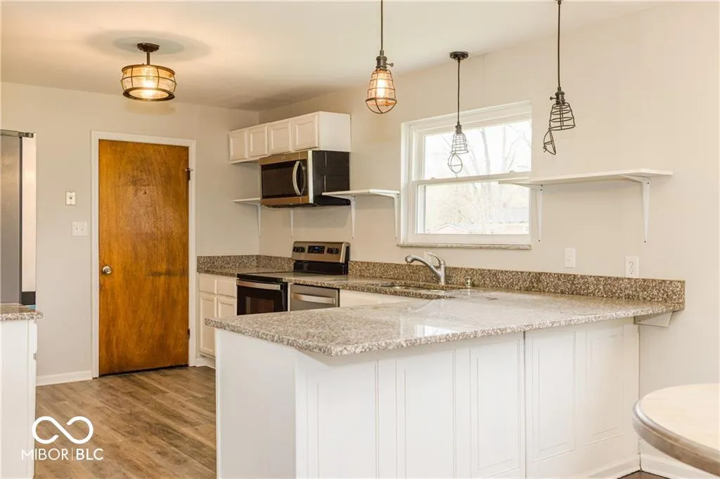 Welcome to the Northwest side of Indianapolis! This 3 bedroom and 2 full bath home is a split level type of home! This home sits almost half an acre and located near Eagle Creek and I-465. This home is almost 2,000 SQ FT and has hardwood floors throughout, tile floors in the 2nd living room space and new lighting fixtures. The recently updated kitchen features granite countertops and stainless-steel appliances. The extra living space has a full bathroom, laundry and bonus room to suit all your needs. The spacious backyard has enough room to fit all your outdoor activities!