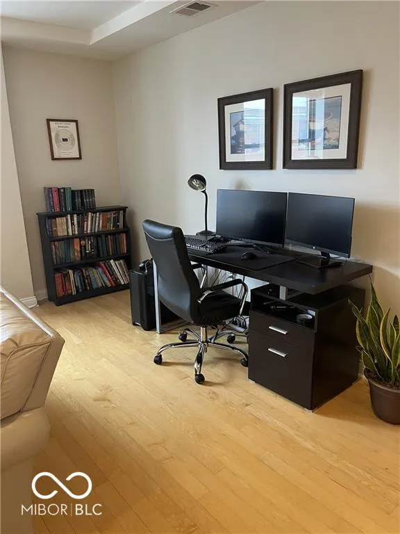 Check out for lease this beautiful 1 bed 1.5 bath in the heart of downtown.Master includes huge bathroom with walk-in closet. The large and open living/kitchen area features beautiful hardwood floors, large windows, and beautiful finishes. Home has in-unit laundry. This location is blocks from the Cultural Trail, Canal Walk, Monument Circle, Mass Ave, shopping, dining & nightlife! Enjoy access to the building’s rooftop terrace with stunning city views and fully equipped gym as well as access to squash courts, basketball courts & more!. Unit comes with 1 garage parking space! This is the perfect place to call home for a year! Pets allowed with approval.