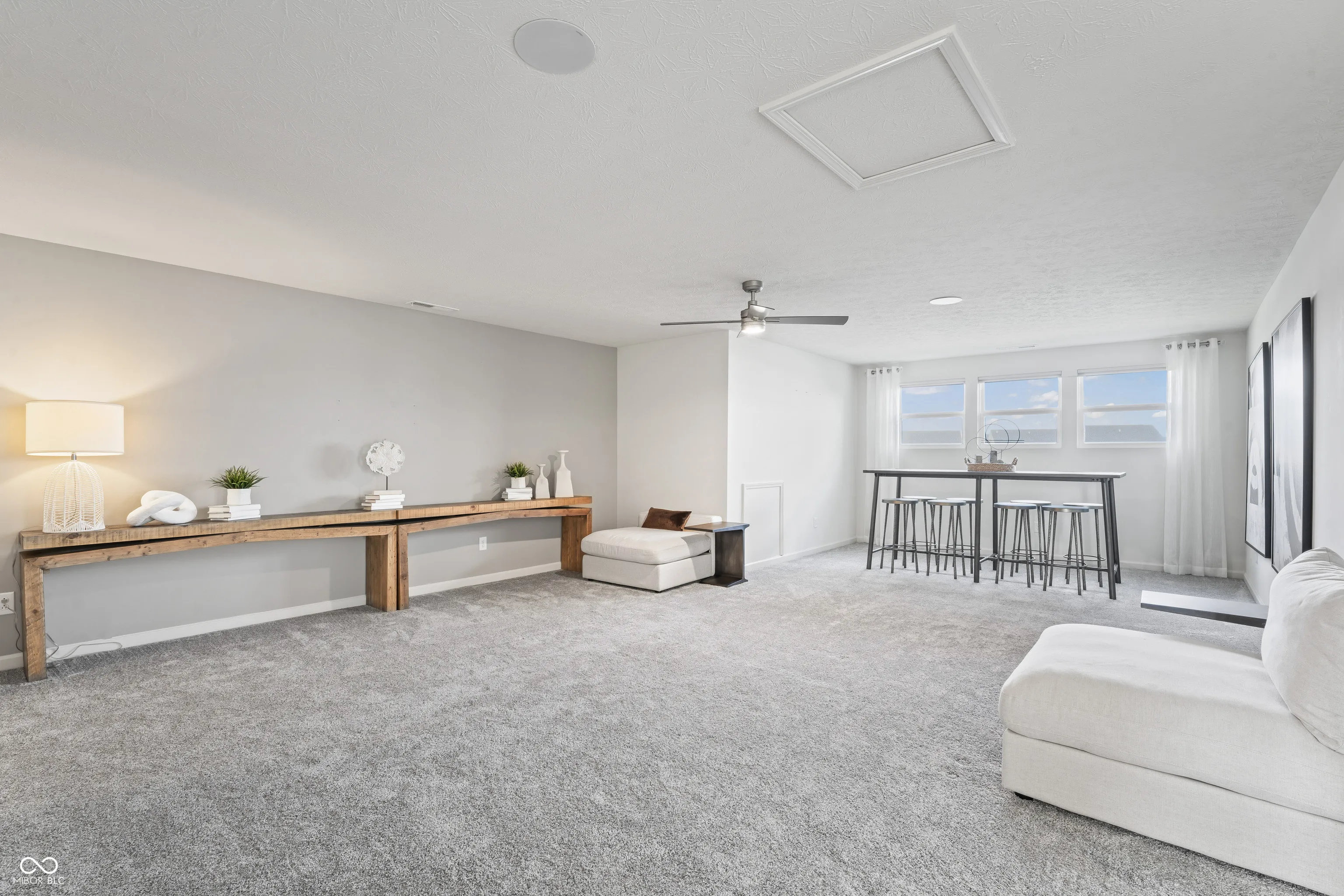 Experience low-maintenance luxury in this 3-bed, 3-bath former model condo. It is nearly move-in ready as it comes with most furniture pictured, ensuring a seamless transition. Relax on the covered patio with serene pond views, or unwind indoors with a whole-home audio system. The main floor features an owner’s suite with a spacious walk-in closet, an oversized, fully tiled shower, and elegant quartz countertops throughout, complemented by soft-close cabinets and drawers. A second bedroom on the main level adds convenience, while the expansive loft upstairs offers an additional bedroom, full bath, and storage closet. Enjoy exclusive access to the community’s amenities center, featuring a pool, athletic court, shade pavilions, and scenic walking trails. With all exterior maintenance covered, this condo is ideal for those seeking a worry-free lifestyle without the hassle of yard work and snow removal. Don’t miss this unique, move-in-ready gem!