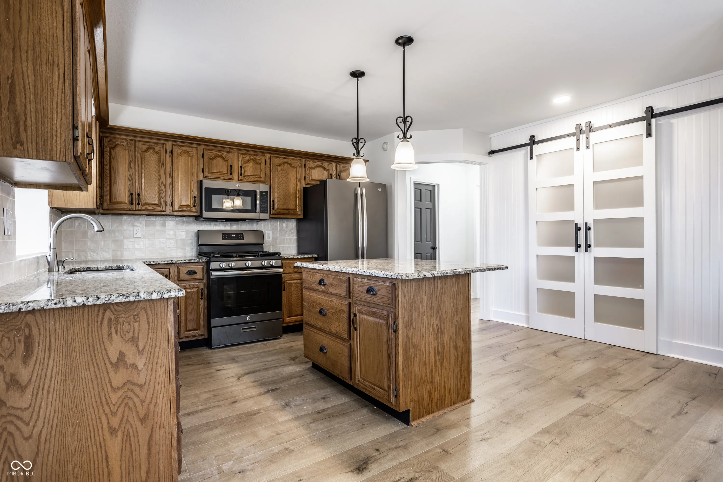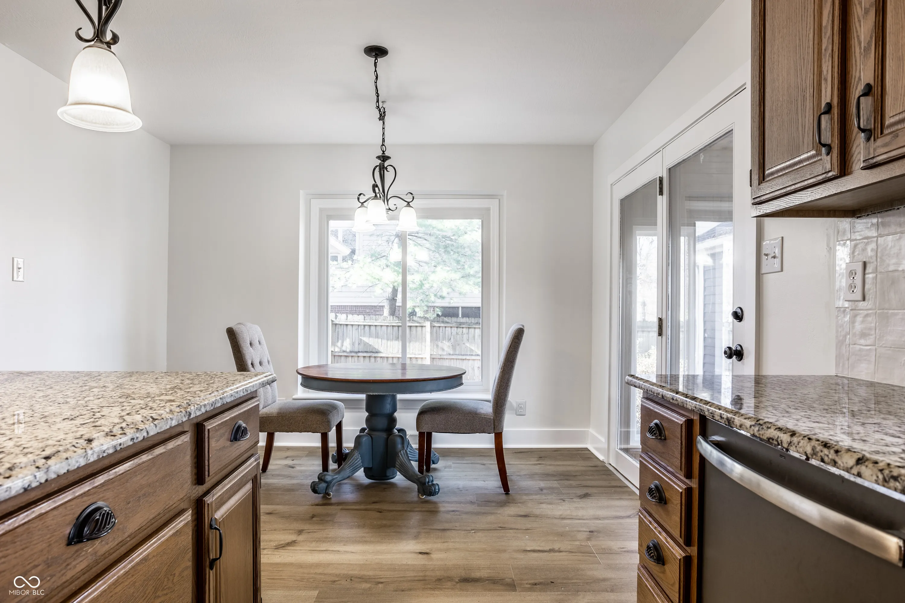 Beautiful home in the welcoming New Palestine neighborhood of Schildmeier Woods with mature trees and a strong sense of community. This home features a main level primary suite with a fireplace, renovated bathroom including a soaking tub, tiled walk-in shower, and designer closet. Newer flooring & vaulted ceilings in the family room with floor to ceiling windows overlooking the backyard. Updated kitchen with an enlarged pantry, granite counters, new backsplash and fresh paint. Take dinner to the sunroom or beyond to the large deck! The spacious layout includes 3 bedrooms & 2nd full bath upstairs. Appealing entertainment space inside and out! Enjoy the large backyard with an expansive deck, gardens, and a fully fenced yard. Recent updates include the renovated 1/2 bath, new windows, roof & gutters, HVAC, exterior paint, and whole-home air purification system. Main level laundry room & attached 3-car garage with an air compressor!
