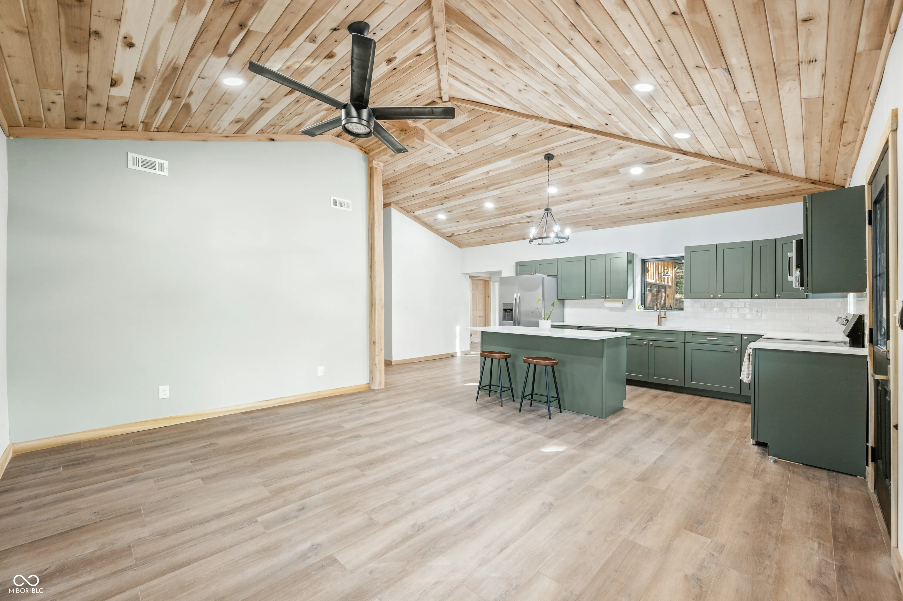 This beautifully remodeled three-bedroom, two-bathroom home is located just minutes from downtown Nashville and Brown County State Park. The home has been completely remodeled and insulated with spray foam insulation, lowering energy costs. The remodel includes new HVAC, a new 3-bedroom septic system, bathroom fixtures, lighting, doors, and windows. The kitchen boasts new cabinets, appliances, and stunning Calacatta quartz countertops. The great room has a vaulted ceiling made of poplar hardwood, and the entire home has vinyl plank flooring for easy cleaning. The attached two-car garage and convenient single-level layout add to the appeal of this home. Enjoy Brown County living at its finest in this home with views of the landscape!