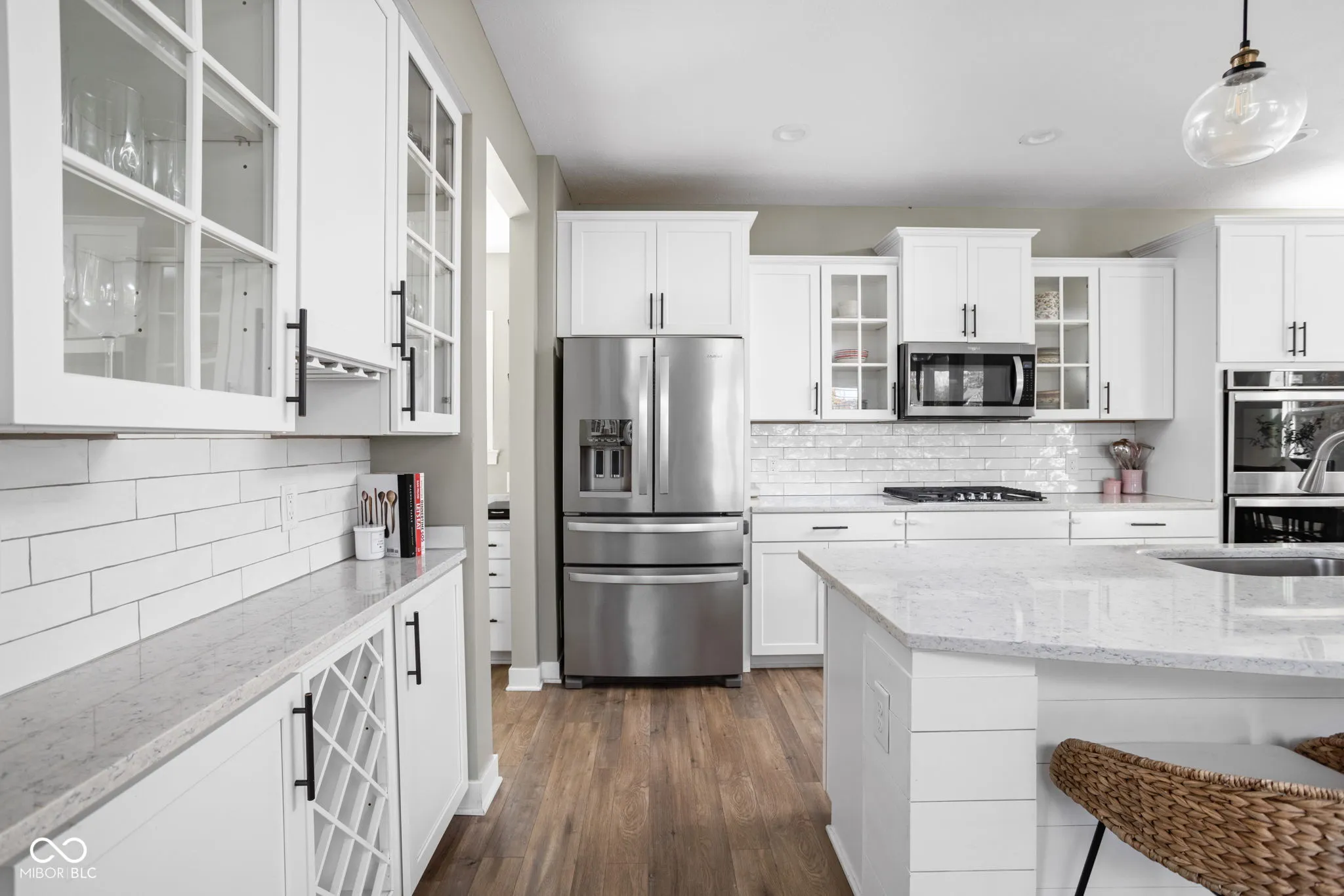 Welcome to this five-bedroom home in the desirable Vonterra Neighborhood! The covered front porch is welcoming and gives way into the open foyer with its custom craftsman trim and sun-filled living area. Gaze at the gourmet eat-in kitchen with stainless steel appliances, huge island, a dry bar, and a connected office with built-ins. The open concept between dining, kitchen and spacious great room provides a seamless flow through the heart of the home. Upstairs, discover a cozy loft space, laundry, Owners Suite, plus three additional good-sized bedrooms and two full bathrooms. You’ll find even more living/flex space, the fifth bedroom and third full bath in the full-finished walkout basement. Once outside, head up to the deck off the main floor and take a moment to enjoy the serene wooded backyard. Close proximity to all Zionsville’s fantastic parks, trails, shops and restaurants.