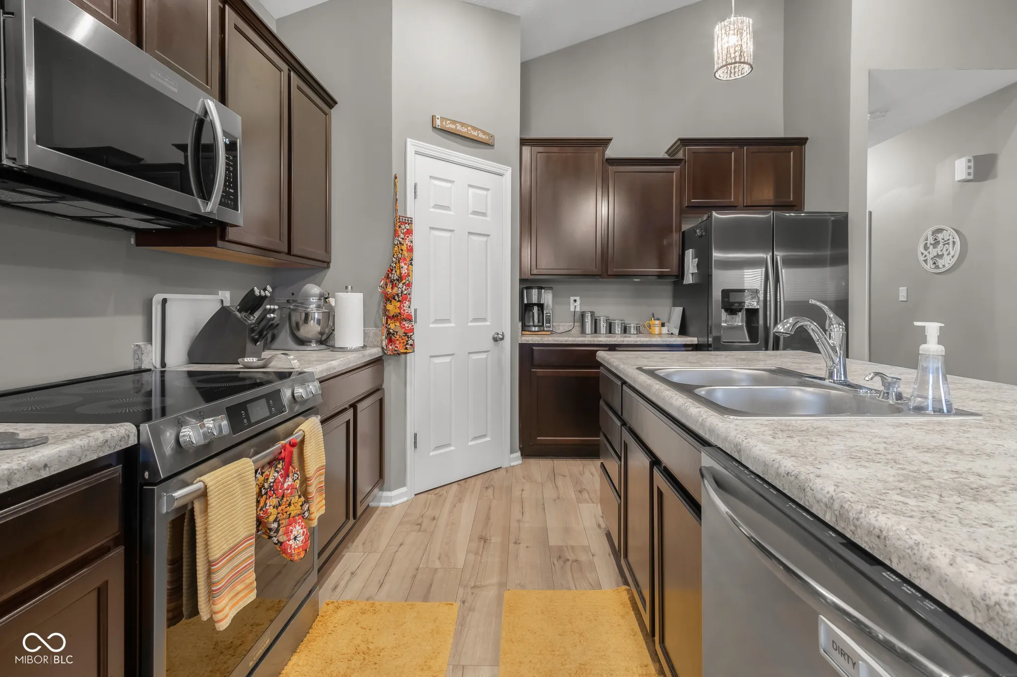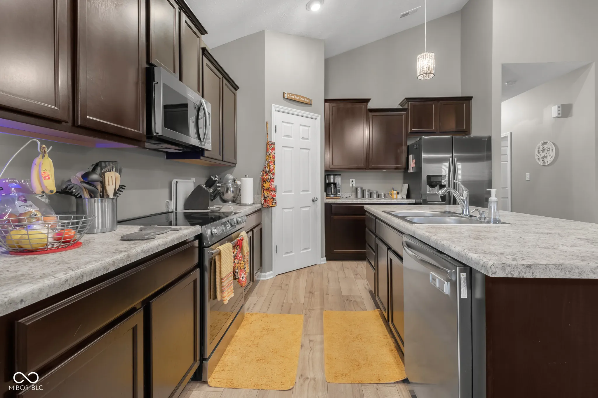 If you are looking for a newer construction home with upgrades come check out this beautiful 3 bedroom, 2 bathroom ranch in Abbey Place. This home has an open floorplan with vaulted ceilings in the great room, the eat in kitchen is equipped with a new stainless steel range, dishwasher and microwave, a large pantry and a center island with additional seating for guests. The backyard offers lake views and has a newly installed privacy fence along with an extended concrete pad for a fire pit or dining table. New vinyl plank flooring in the hallway, great room and kitchen! Upgrades galore! Don’t miss your chance to see this home before it’s gone!