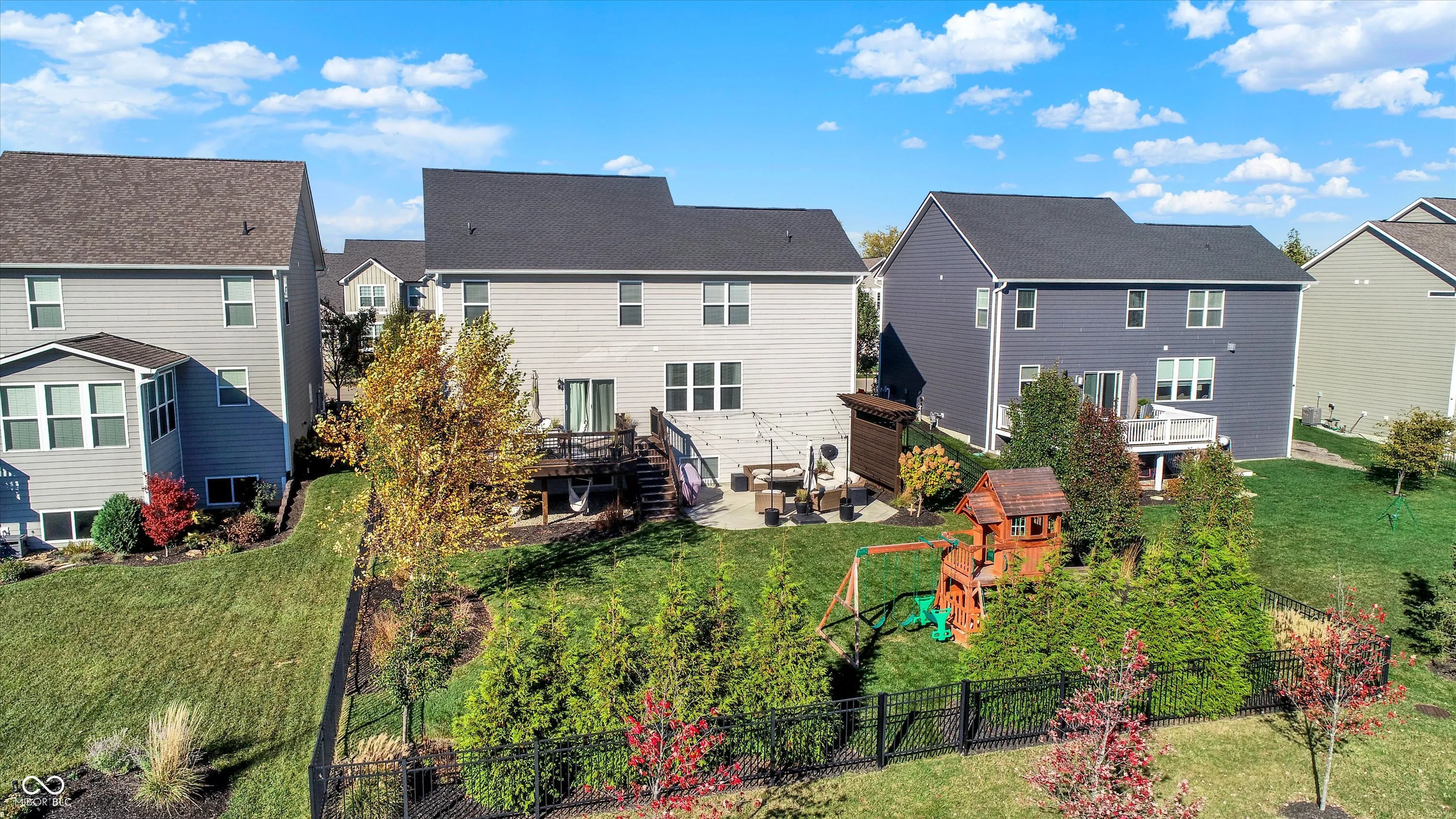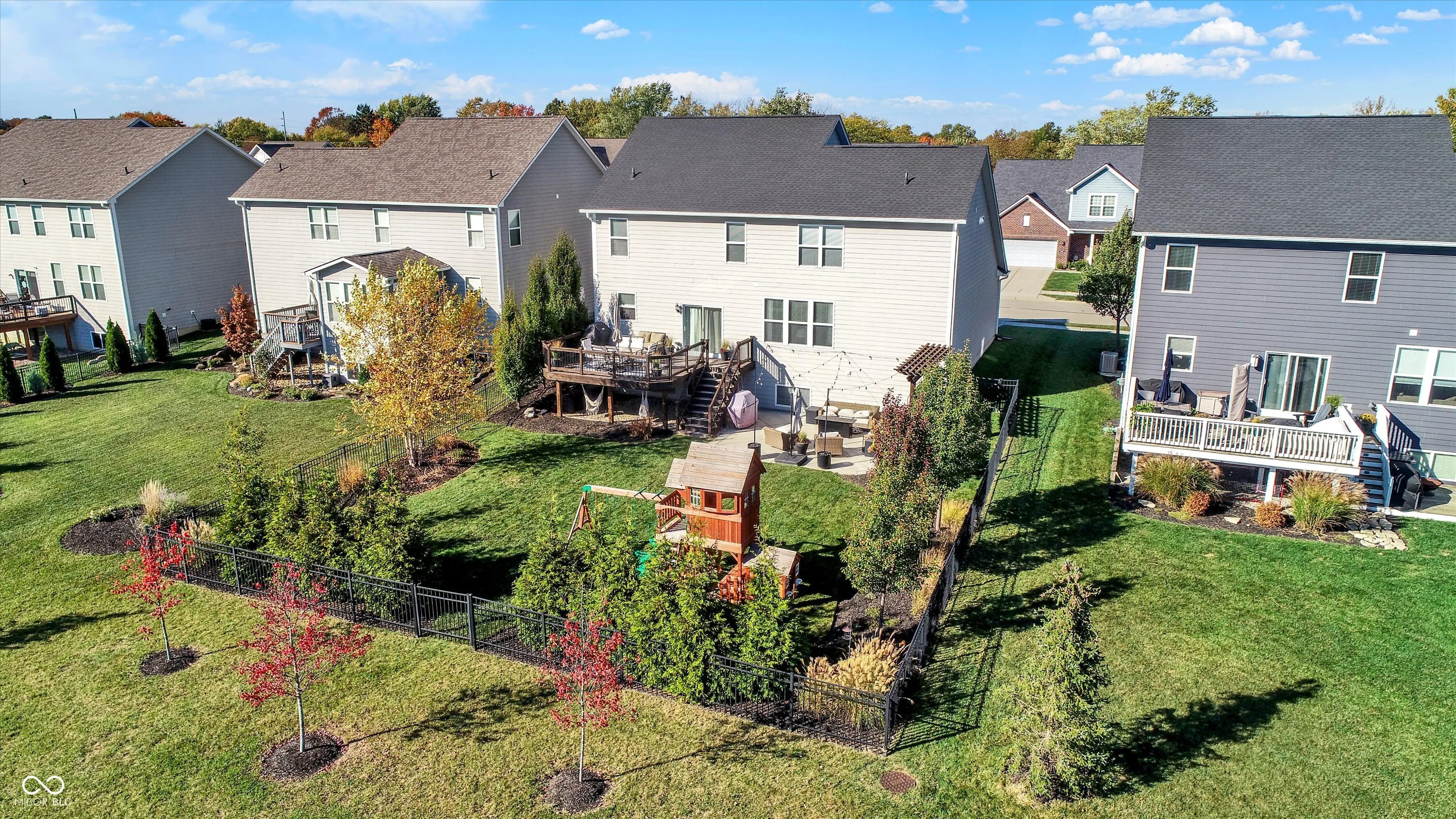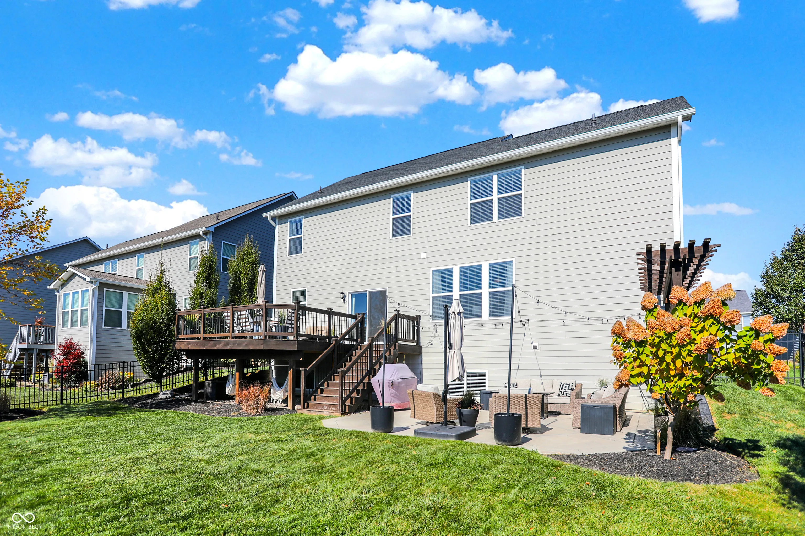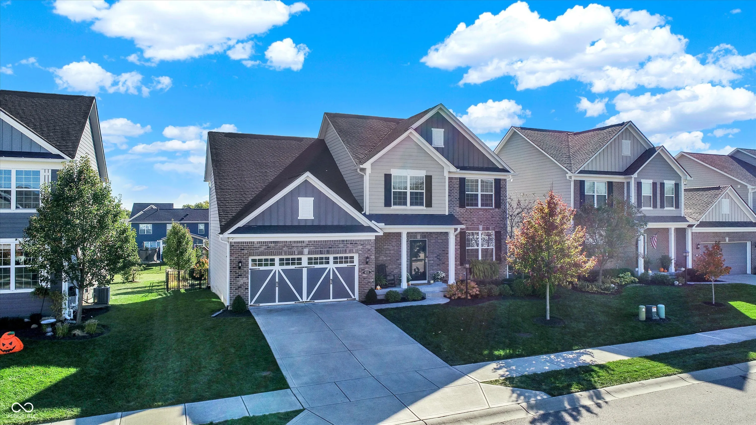 Welcome to the “Baldwin Model” spacious 3542 sqft. 4 Bedroom, 2.5 Bath Home with flex Loft. Skip the wait for new construction-this home is move-in ready with stunning upgrades. An open floor plan includes hardwoods on the main level and the loft/hallway (2021). The Foyer adjoins a Study/Office with custom built-ins (2021). The Great Room opens to the gourmet Kitchen with center island and breakfast bar. The Kitchen boasts new appliances including a gas range, fridge, dishwasher hood ventilation and custom corbels (2023). Upstairs you will find an Owner’s Suite with trey ceiling and new carpet (2022) and three additional Bedrooms with jack & jill Bath . The upstairs Laundry features shiplap and front load W/D. The Loft is a perfect family flex space. The finished lower level includes a huge daylight Family Room with a Rec/Play area (currently used for home business storage). Exiting thru the Mud Room with built-in seating you will enter the finished 3-car tandem garage with battery backup garage door opener, professional organization, hanging storage cabinets and new finished floor coating (2022).Venturing outside, you will enjoy the mature landscaped yard with fence, large deck, oversized concrete patio and pergola wall – perfect for entertaining. The roof and gutters were new in 2021. Located in Westfield, Viking Meadows is a premier community offering topnotch amenities and quick access to the Monon Trail. Thoughtfully upgraded this home won’t last. Submit your offer today!