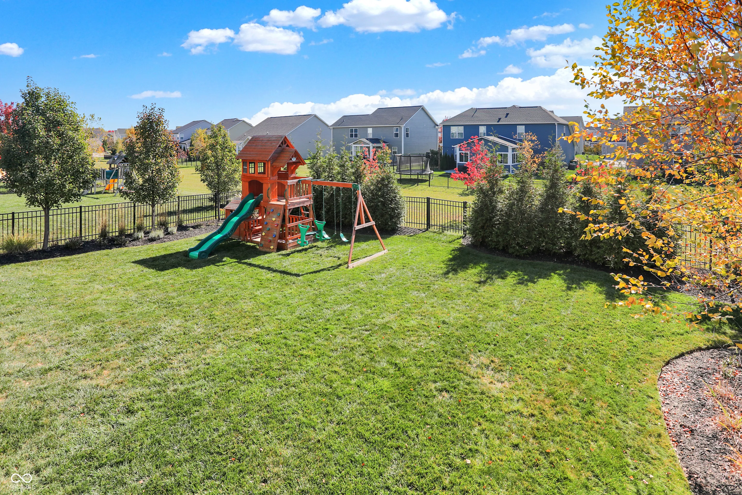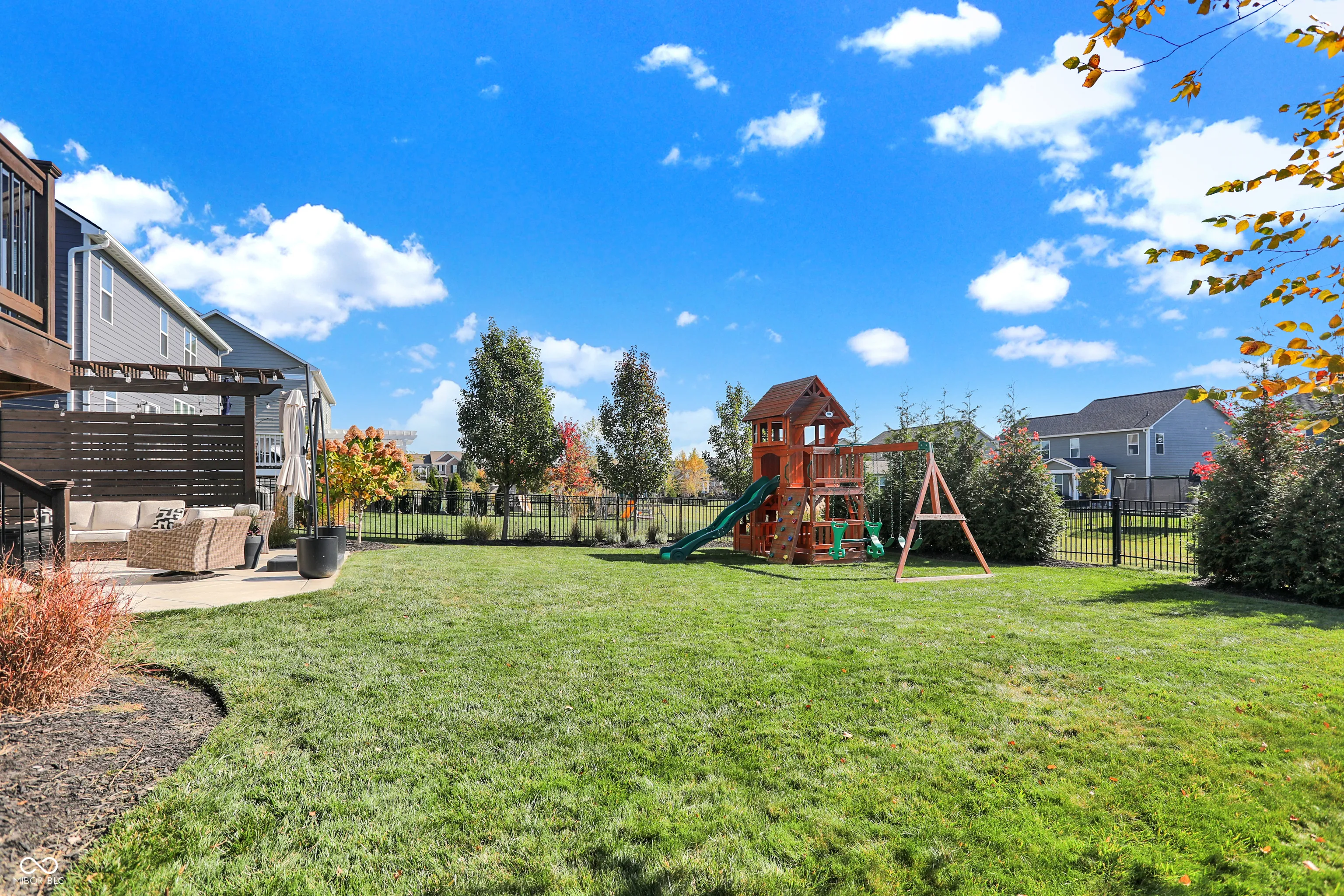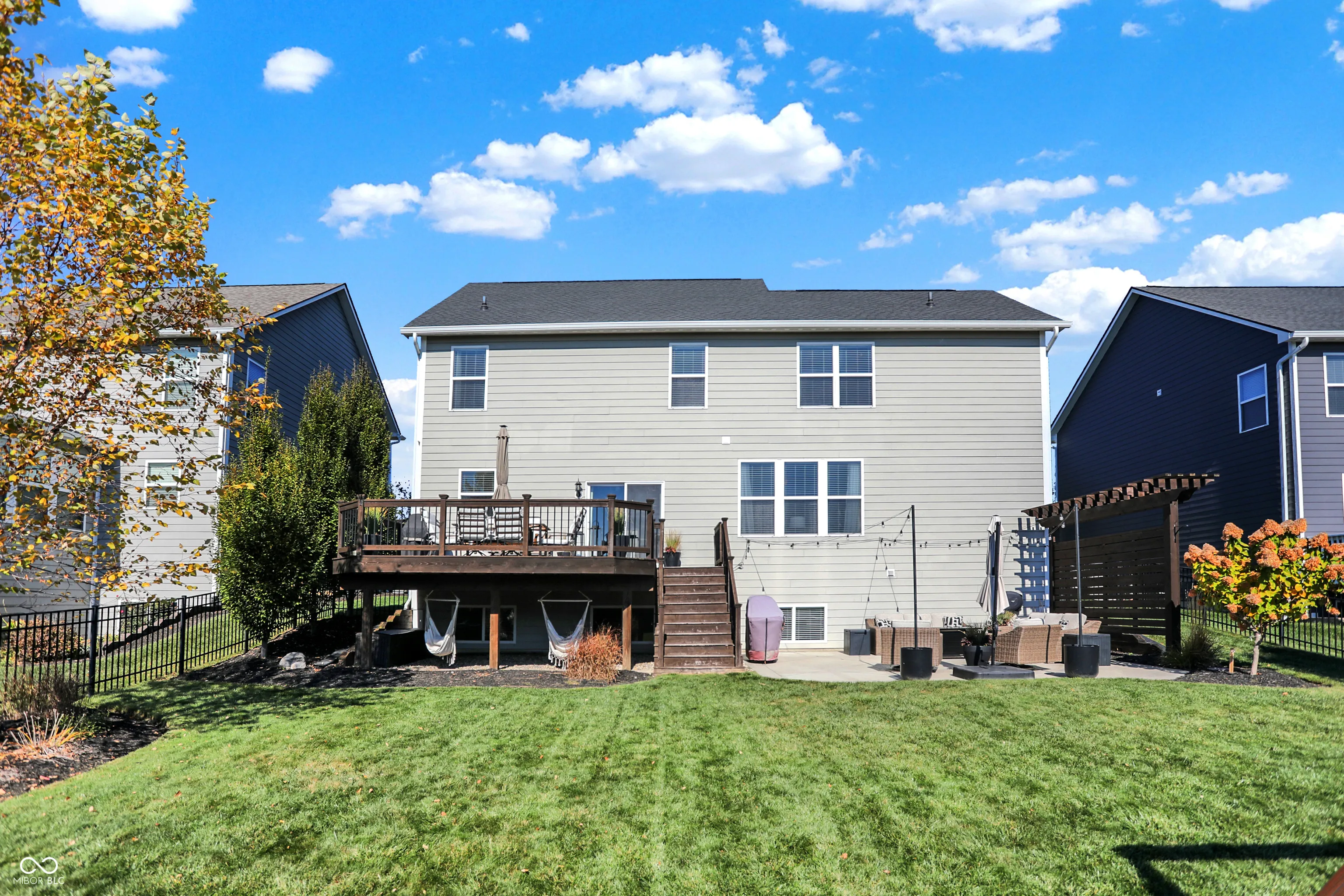 Welcome to the “Baldwin Model” spacious 3542 sqft. 4 Bedroom, 2.5 Bath Home with flex Loft. Skip the wait for new construction-this home is move-in ready with stunning upgrades. An open floor plan includes hardwoods on the main level and the loft/hallway (2021). The Foyer adjoins a Study/Office with custom built-ins (2021). The Great Room opens to the gourmet Kitchen with center island and breakfast bar. The Kitchen boasts new appliances including a gas range, fridge, dishwasher hood ventilation and custom corbels (2023). Upstairs you will find an Owner’s Suite with trey ceiling and new carpet (2022) and three additional Bedrooms with jack & jill Bath . The upstairs Laundry features shiplap and front load W/D. The Loft is a perfect family flex space. The finished lower level includes a huge daylight Family Room with a Rec/Play area (currently used for home business storage). Exiting thru the Mud Room with built-in seating you will enter the finished 3-car tandem garage with battery backup garage door opener, professional organization, hanging storage cabinets and new finished floor coating (2022).Venturing outside, you will enjoy the mature landscaped yard with fence, large deck, oversized concrete patio and pergola wall – perfect for entertaining. The roof and gutters were new in 2021. Located in Westfield, Viking Meadows is a premier community offering topnotch amenities and quick access to the Monon Trail. Thoughtfully upgraded this home won’t last. Submit your offer today!