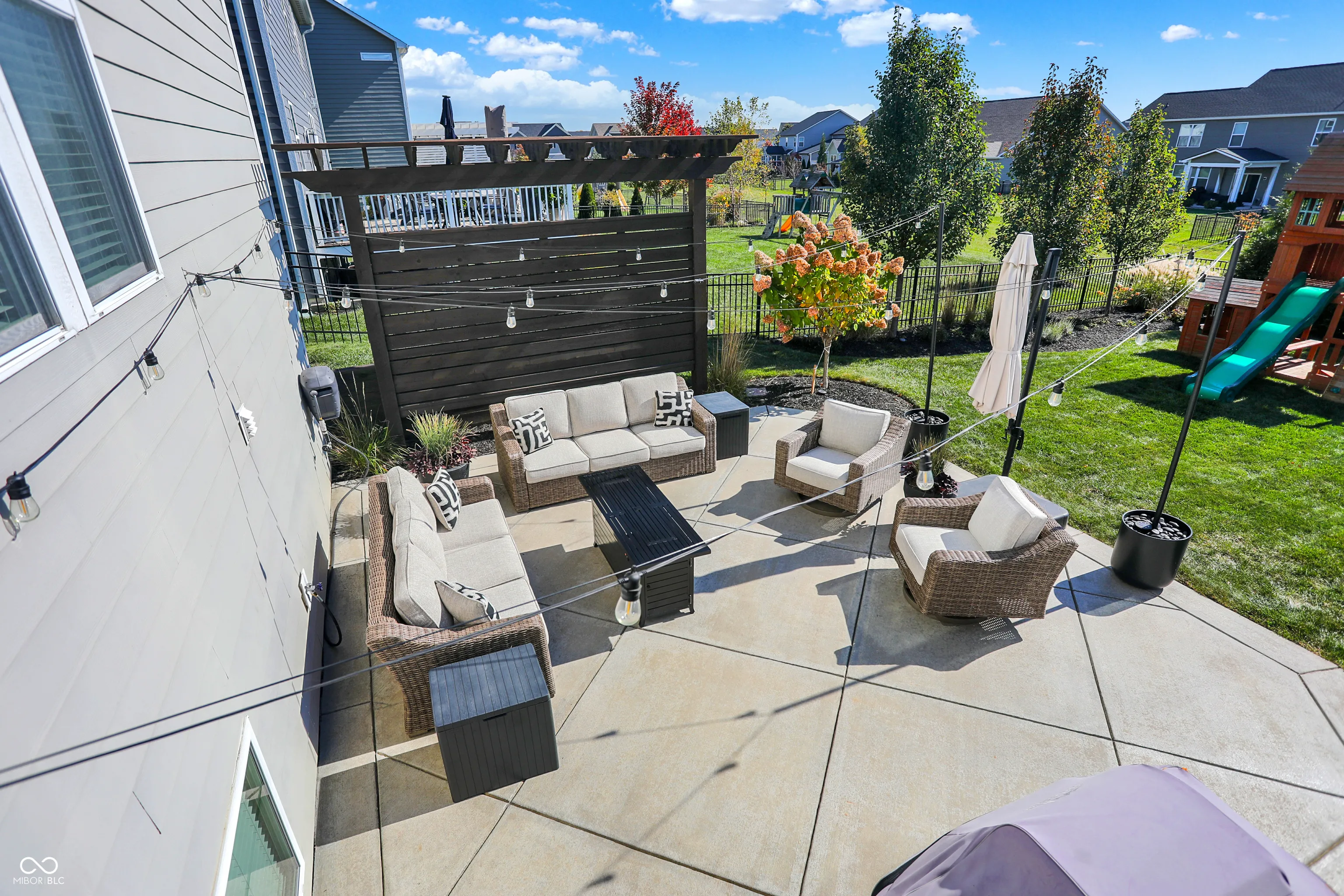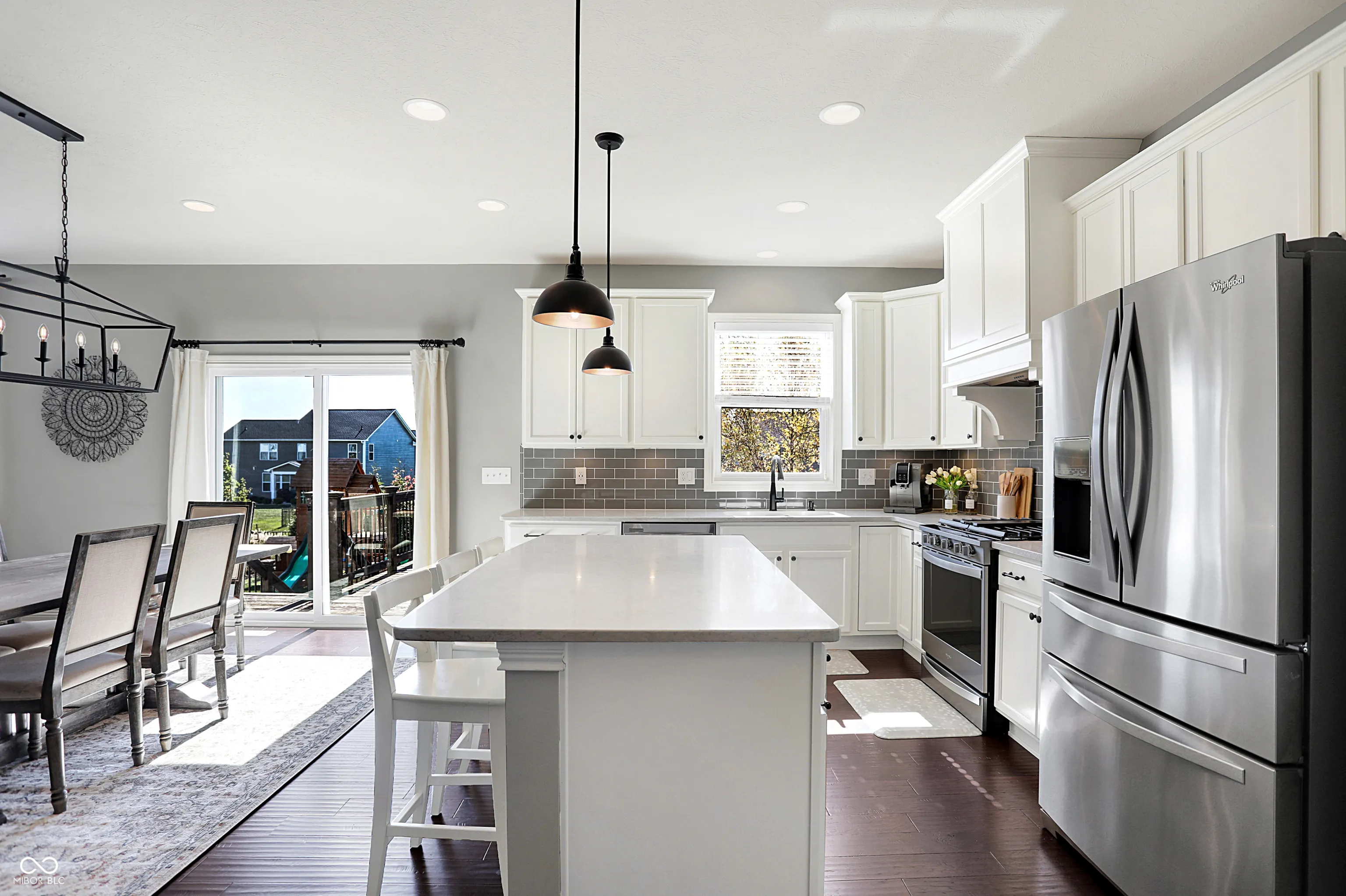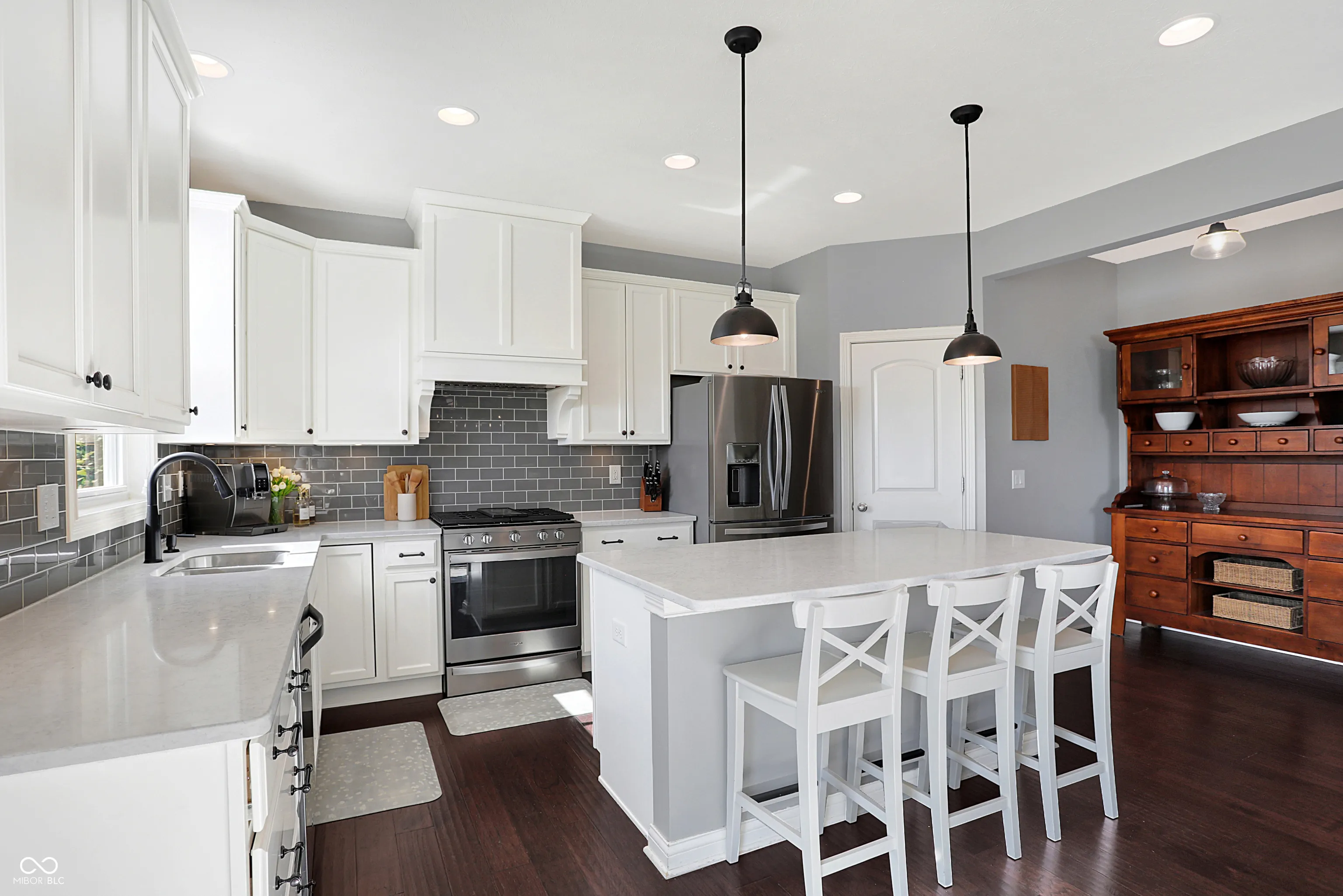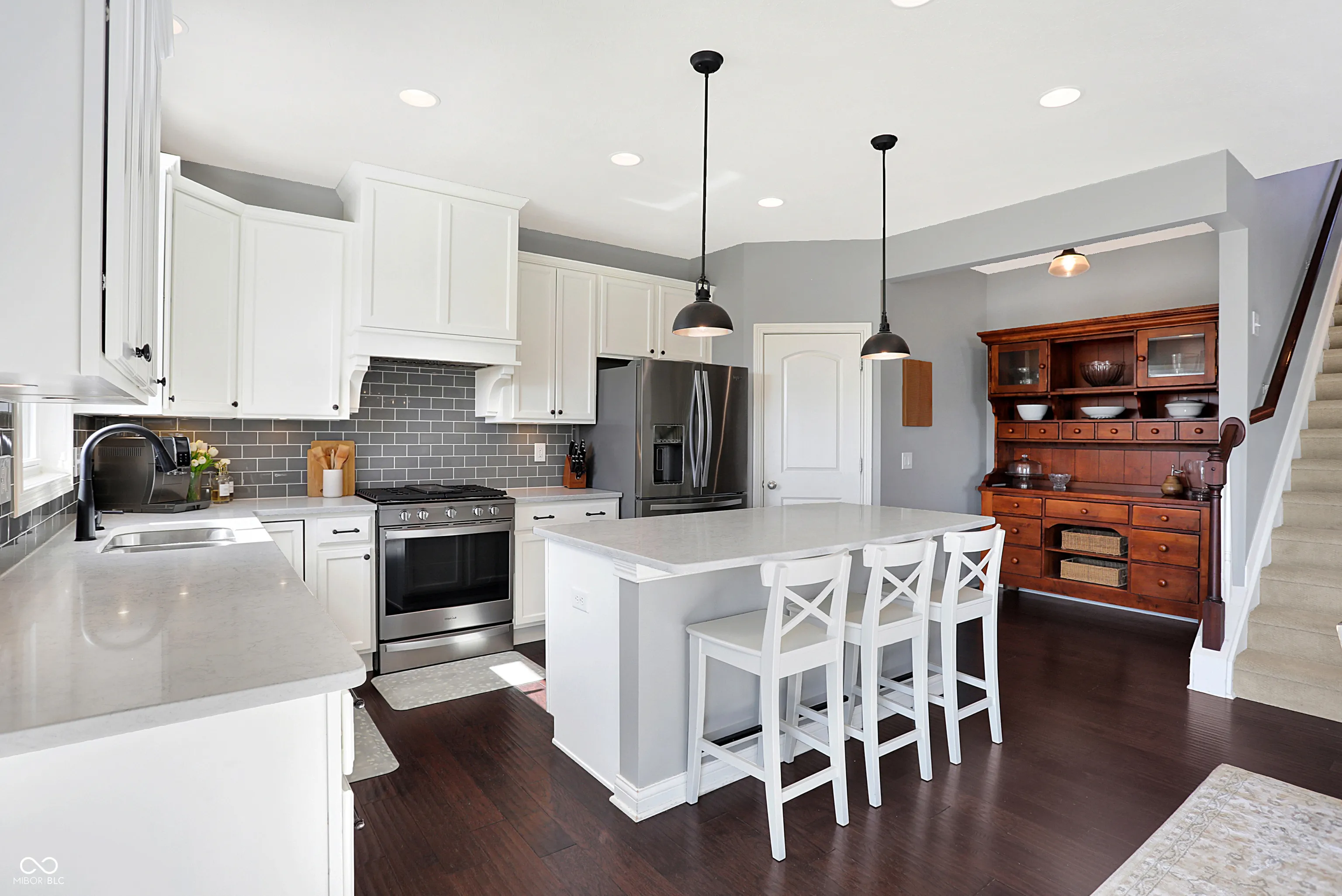 Welcome to the “Baldwin Model” spacious 3542 sqft. 4 Bedroom, 2.5 Bath Home with flex Loft. Skip the wait for new construction-this home is move-in ready with stunning upgrades. An open floor plan includes hardwoods on the main level and the loft/hallway (2021). The Foyer adjoins a Study/Office with custom built-ins (2021). The Great Room opens to the gourmet Kitchen with center island and breakfast bar. The Kitchen boasts new appliances including a gas range, fridge, dishwasher hood ventilation and custom corbels (2023). Upstairs you will find an Owner’s Suite with trey ceiling and new carpet (2022) and three additional Bedrooms with jack & jill Bath . The upstairs Laundry features shiplap and front load W/D. The Loft is a perfect family flex space. The finished lower level includes a huge daylight Family Room with a Rec/Play area (currently used for home business storage). Exiting thru the Mud Room with built-in seating you will enter the finished 3-car tandem garage with battery backup garage door opener, professional organization, hanging storage cabinets and new finished floor coating (2022).Venturing outside, you will enjoy the mature landscaped yard with fence, large deck, oversized concrete patio and pergola wall – perfect for entertaining. The roof and gutters were new in 2021. Located in Westfield, Viking Meadows is a premier community offering topnotch amenities and quick access to the Monon Trail. Thoughtfully upgraded this home won’t last. Submit your offer today!