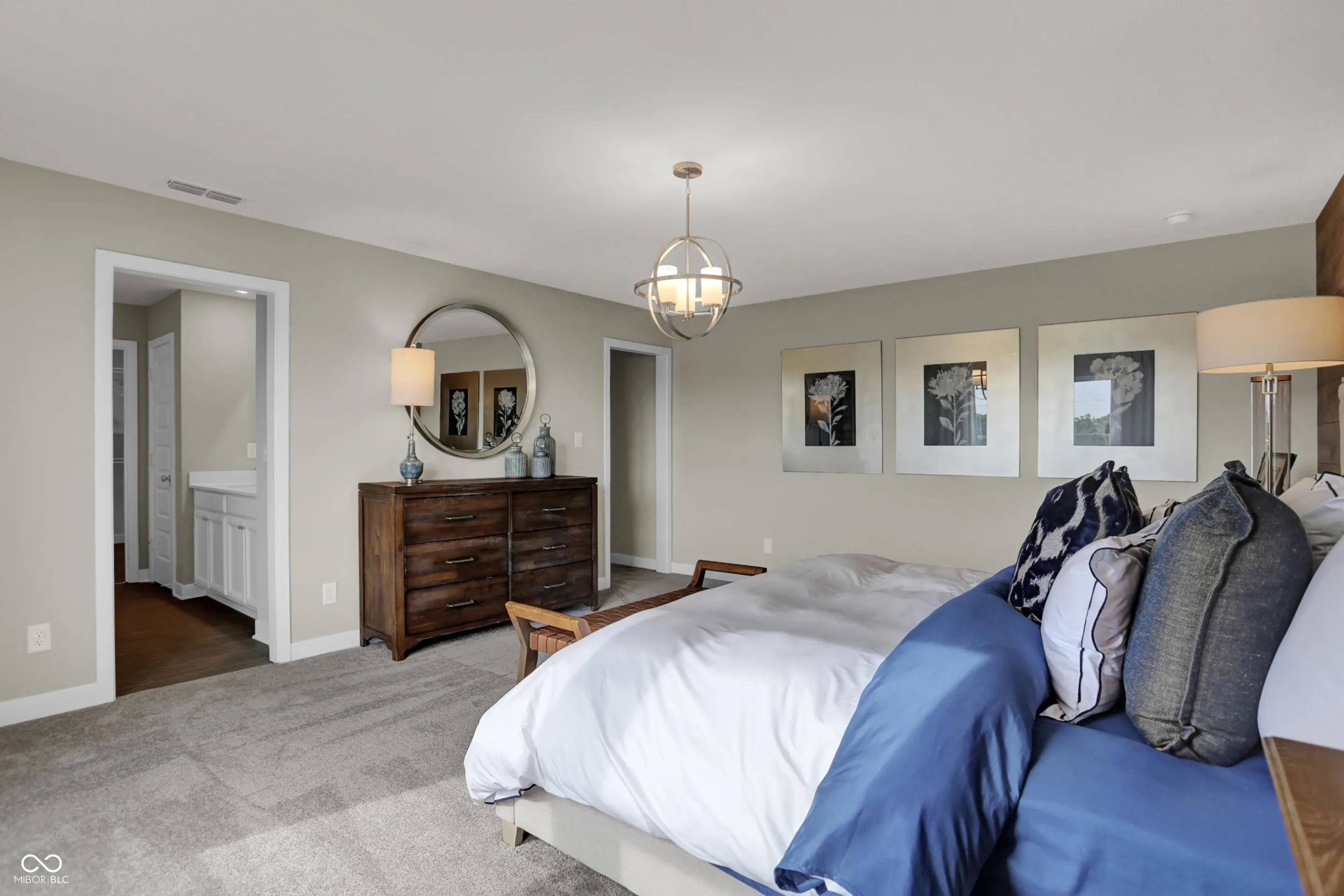 The Venture Collection offers some of the largest single-family homes at Alexander Ridge, a master-planned community in McCordsville, IN. Onsite amenities include a pickleball court, playground, a pavilion with seating and a firepit. A suburb of Indianapolis, McCordsville offers a laid back pace of life with close proximity to excellent recreation spots and major shopping venues. Nearby Geist Reservoir is great for boating, dining and enjoying fun in the sun. Flat Fork Creek Park is the perfect place for the outdoor enthusiast, featuring hiking and mountain biking trails, plus a sledding hill. Hamilton Town Center is just around the corner for shopping, dining and socializing. The Kingston ft. an open concept design w/a convenient 5th bedroom on the 1st floor, along with a private study & spacious kitchen, dining area & Great Room. The 2nd story features a media area between the owner’s suite & the three secondary bedrooms offer an abundance of space with ample closet space. The owner’s suite offers a private bathroom retreat that includes a large shower, dual vanities, private water closet, & a huge WIC. A 4′ extension in the garage adds extra storage! *Photos/Tour of model may show features not selected in home.