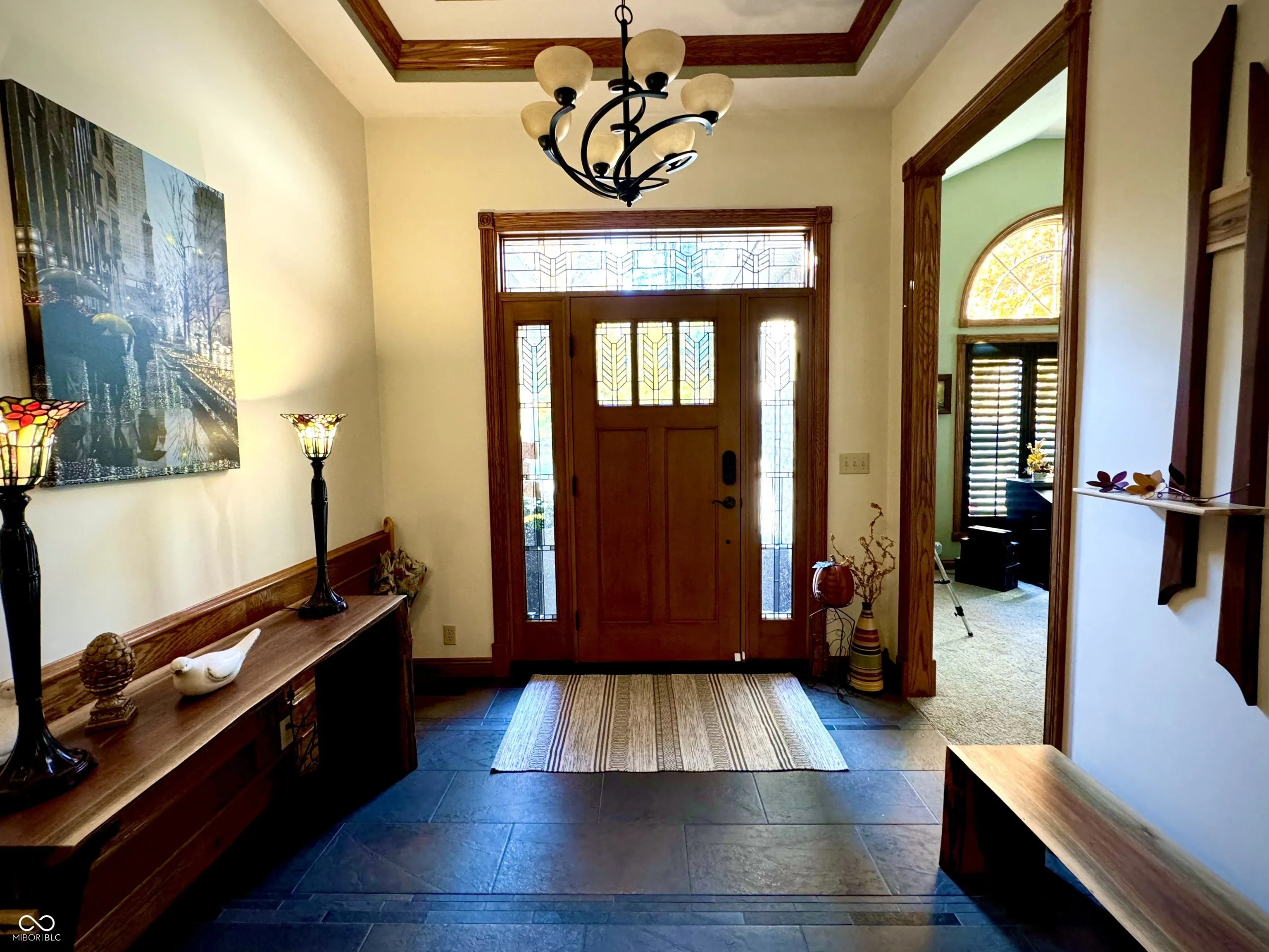 A woodworker’s custom home with 6″ exterior walls/plaster interior walls, no expense was spared in making this home stunning luxury and ‘one of a kind’. Sitting on the 3rd hole of the Alexandria Golf Course, at the end of a Cul de Sac with private circle drive, you will feel like you are in the country but close to everything the coveted town of Alexandria has to offer. Complete with mature trees, beautiful plants/flowers, a heated kidney shape pool with new liner and automatic safety cover next to a pool house with speakers, cabana, Workshop/outbuilding, private woods, and custom touches truly makes this house shine. The New Front Entry door from White Oak Construction in Indy, stunning crown molding, new flooring, Cambria Quartz countertops, motorized curtains in the Master, Gas fireplace with thermostat/heat control. Built in 1997 equates to both quality construction with the modern-day updates. Words will not do this listing justice–do not miss out! 1 year home warranty paid by the seller