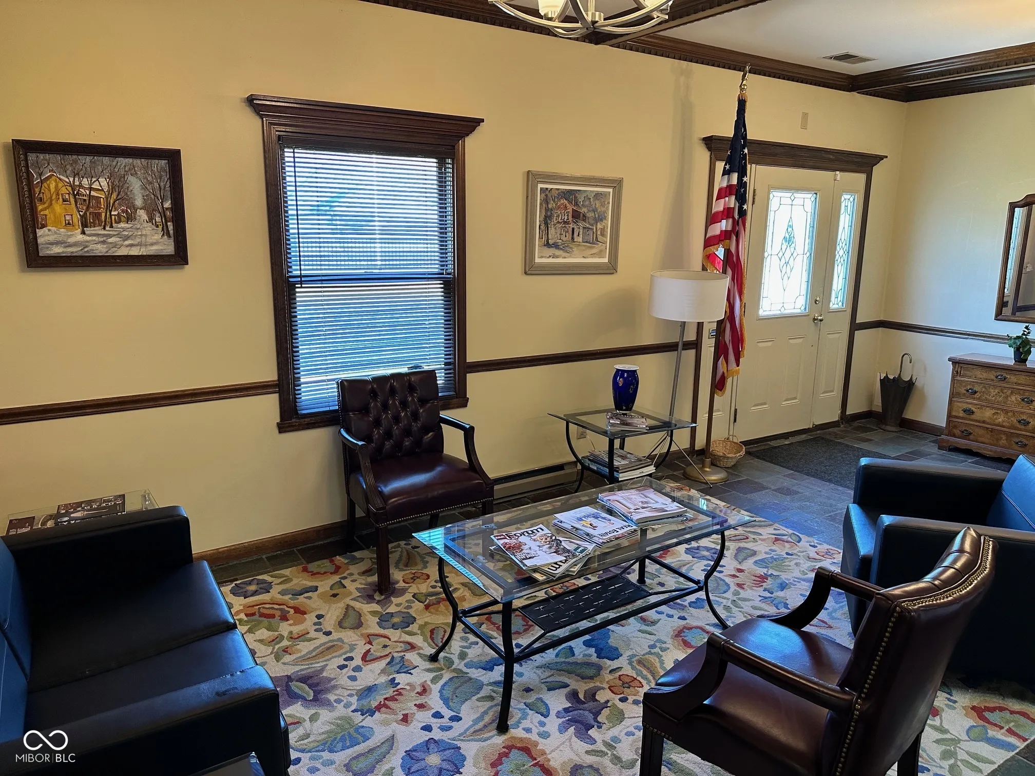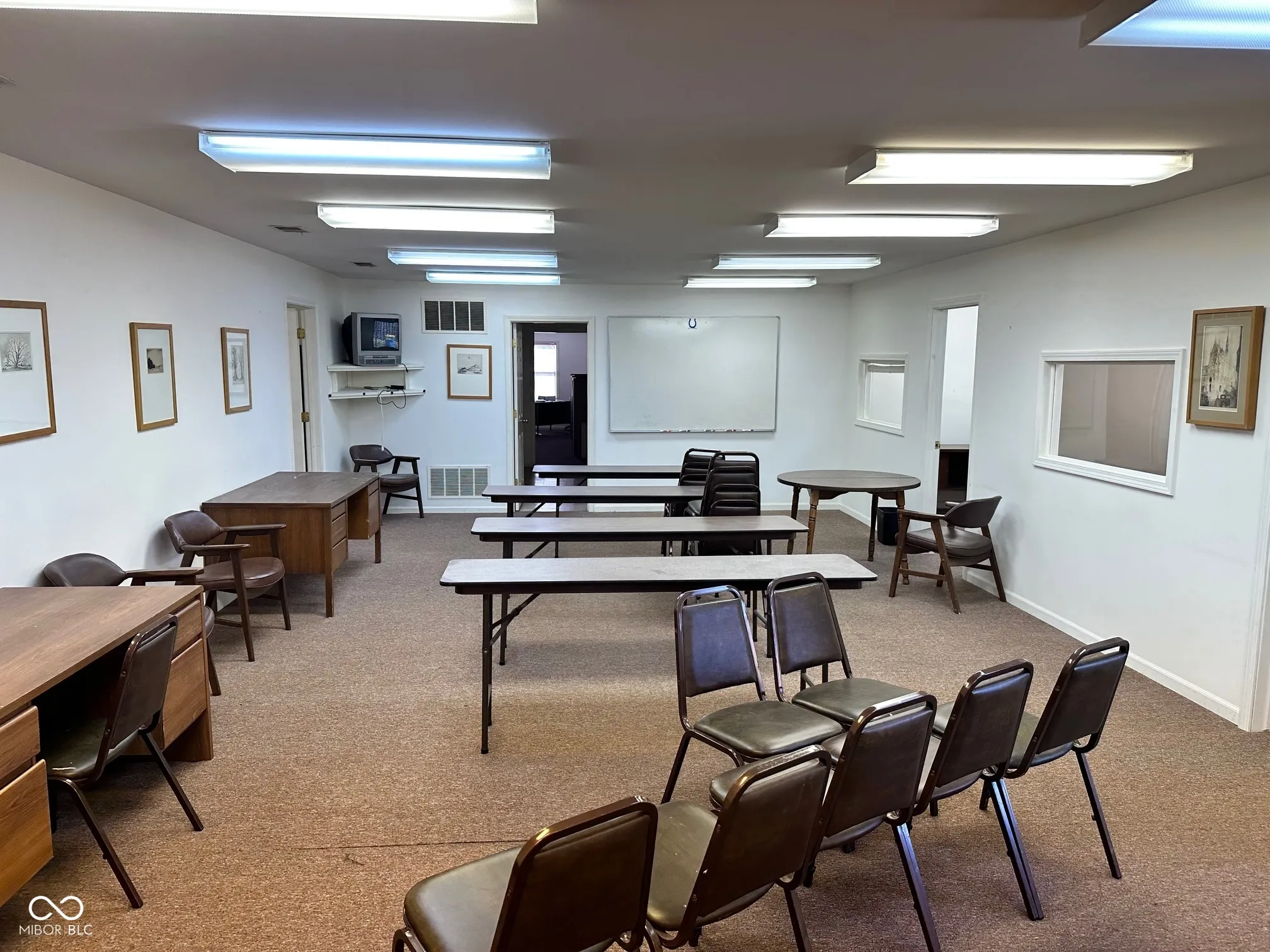 Professional brick office building with high visibility located just north of the hard corner of Mitthoefer Road and 10th Street. Over 5,900 sq. ft. of office space is currently comprised of the following: conference room, waiting area with slate floor, receptionist area, 13 private offices, 3 large open bull pin areas, copy/computer/break room(s), large training room, phone room, supply room and 2 sets of restrooms. Large parking lot has exterior lighting and 37 marked parking spots and 1 designated handicap spot.