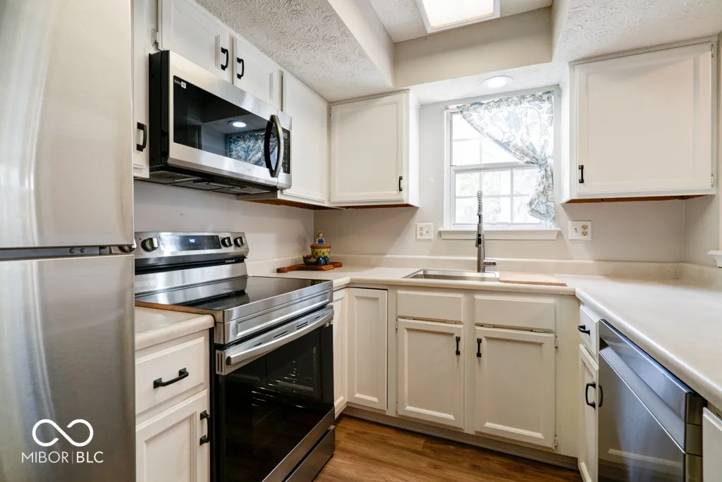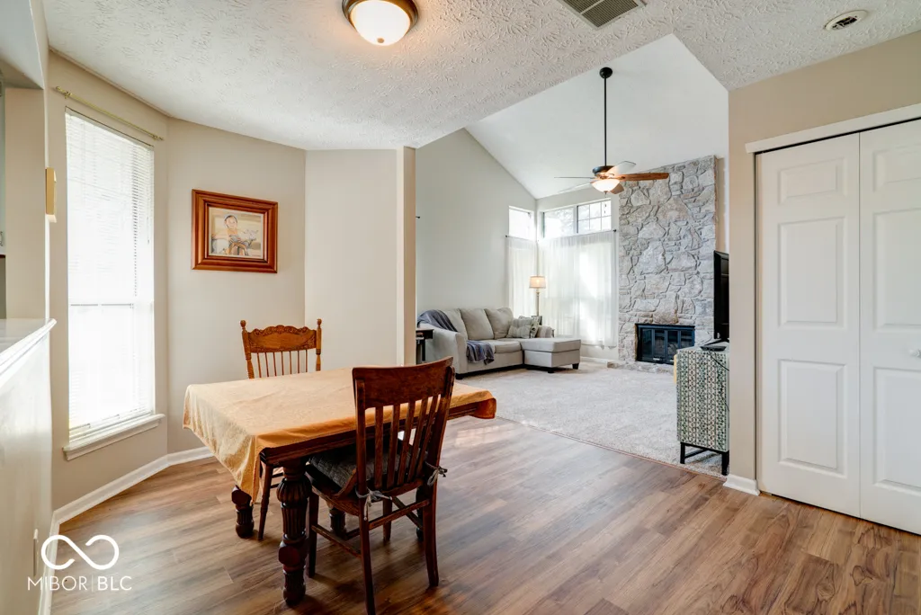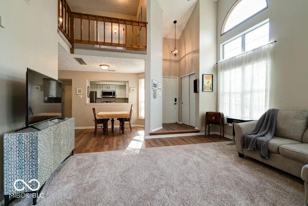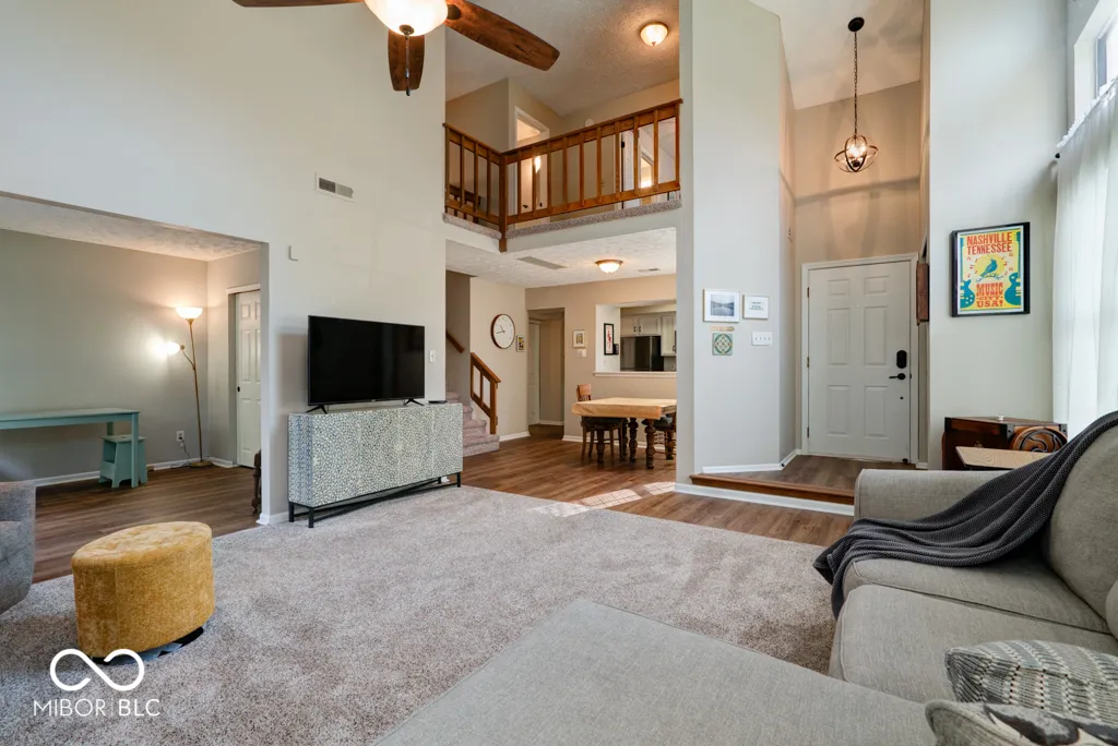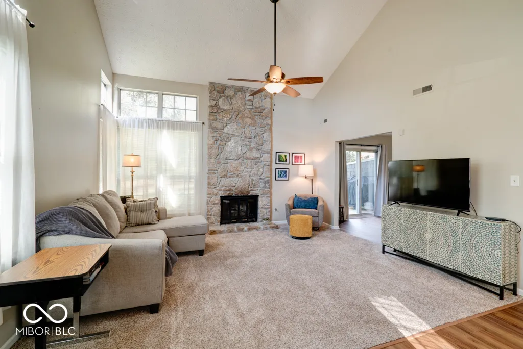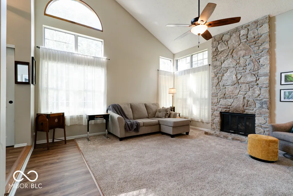 Lovely, updated maintenance free condo in Cobblestone across from Eagle Creek Reservoir! This is a unique find in Cobblestone- a private drive with a 2-car attached garage and an end unit! Interior updates include new luxury vinyl plank flooring downstairs, carpet in the great room, updated kitchen with new appliances and farmhouse sink/disposal/faucet. The bathrooms have also been updated with new flooring, toilets, vanities and shower door. Recent updates also include new doors/hardware, paint, lighting throughout, and hot water heater. Exterior updates include a new deck with bench seating and refreshed landscaping. Beautiful 2-story stone fireplace extends up to the vaulted ceiling and can be enjoyed by both first/second floors. The fireplace has been recently cleaned and checked as well. Upstairs there is a loft area that overlooks the great room that would be a perfect place to use as a home office or a nook for reading, the master suite, guest bedroom, and two full baths. The master suite is spacious and private with ample closet space, window seat, and another sitting area. The attached 2 car garage is conveniently right off of the kitchen. This quaint community boasts a pool, clubhouse and is an easy walk/ride to Eagle Creek Reservoir and State Park. It is also close to shopping, Rick’s Boatyard, and 465.