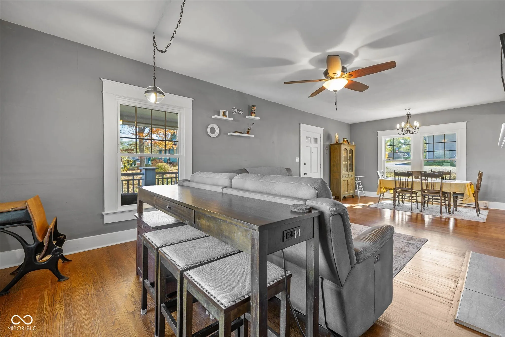 Welcome to this beautifully updated Craftsman-style home that perfectly balances historical charm with modern amenities! Step onto the inviting covered front porch and into the spacious living room, featuring a cozy masonry fireplace-ideal for relaxation. This home offers three bedrooms, two upstairs, and a large bedroom in the basement that can serve as a versatile in-law suite, guest room, or family room. The basement has its own private entrance leading to the backyard for added convenience and privacy, ensuring that every family member’s needs are met. The fully remodeled kitchen (2024) boasts a wall of custom cabinetry and includes a gas cooktop, dishwasher, microwave, ample counter space, and a breakfast bar. Recent updates include new Pella windows (2021), refinished hardwood floors (2017), new plumbing, HVAC systems, and electrical panel (2017), as well as a new concrete driveway and textured back patio (2018). The lower level has been completely renovated, featuring new carpet, a modern bathroom, and knotty pine built-in shelving-providing a warm, inviting feel. These recent updates ensure you can move in with peace of mind, knowing that the property is in excellent condition. This property also comes with an additional 0.19-acre parcel that includes the garage and the land behind it, offering generous outdoor space for recreation and relaxation. With its blend of classic character and contemporary upgrades, this home is truly move-in ready, allowing you to start enjoying your new home from day one.