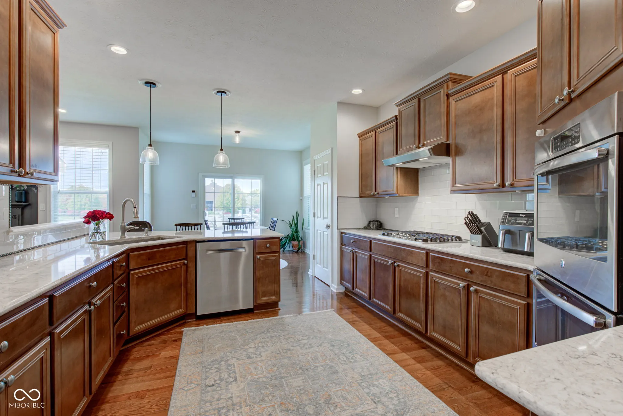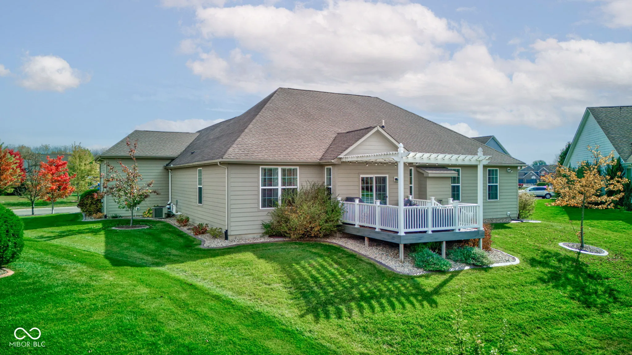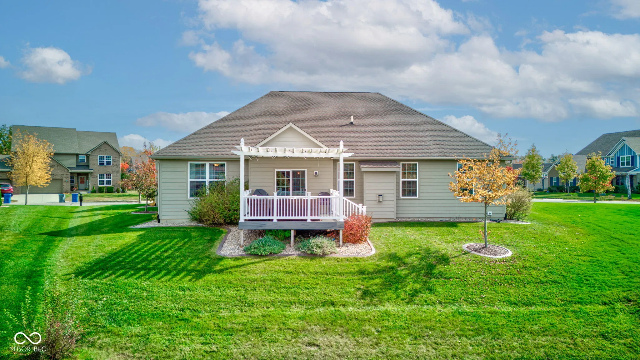 Discover unparalleled charm in this stunning 3-bedroom, 3.5-bath ranch in the highly desirable Essex of Noblesville! With over 3,500 square feet, this home features soaring raised ceilings, hardwood floors, and a gourmet kitchen with stainless steel appliances, quartz countertops, a gas cooktop, and dual ovens. Recent updates include fresh paint, new carpet, stylish light fixtures, a new water heater, and a sump pump with a WiFi alarm for peace of mind. The fully finished basement features 9′ ceilings, a spacious family room, a versatile rec room, full bathroom, and plenty of storage space, making it perfect for entertainment or extra living quarters. Escape outside to your private deck with a pergola, overlooking a tranquil pond-perfect for relaxation. The spacious 3-car garage is fully finished, offering ample storage, and the property comes with a full-yard irrigation system. The Essex community offers fantastic amenities, including a pool, basketball court, playground & social activities – all conveniently located near the Midland Trail and new developments at 32/Hazel Dell.This stunning home seamlessly combines modern elegance with cozy comfort, offering an exceptional place for you to call home!